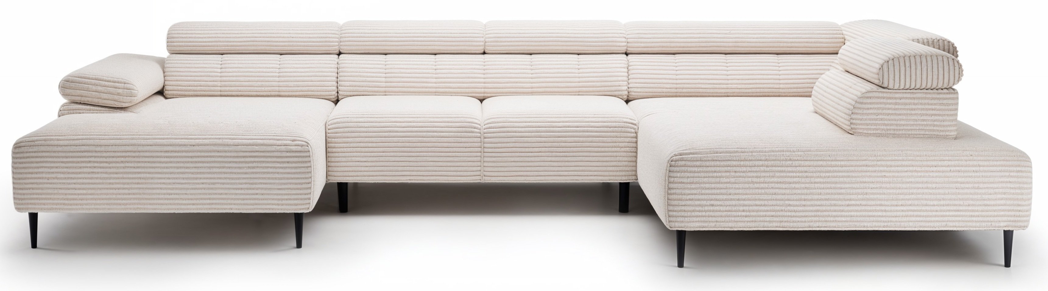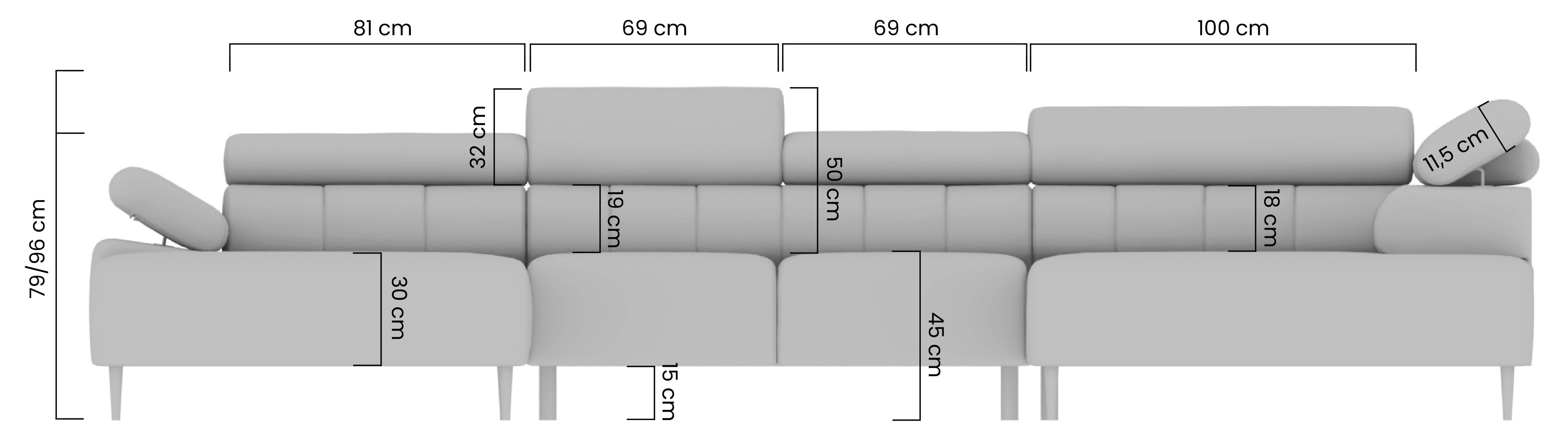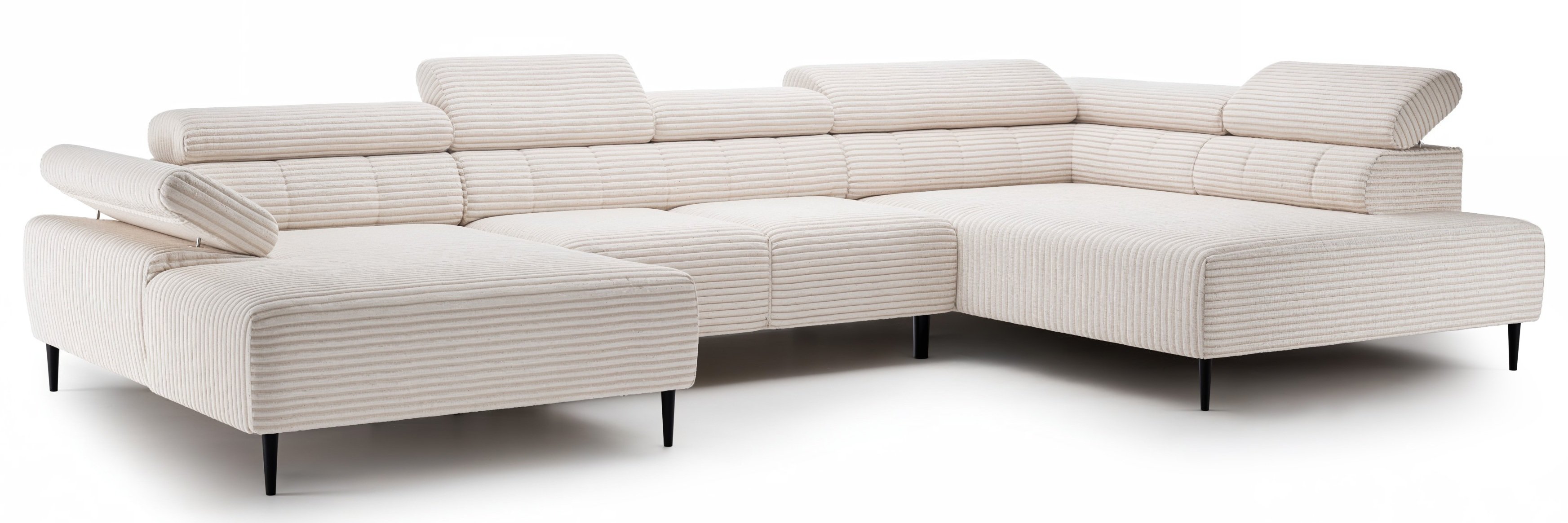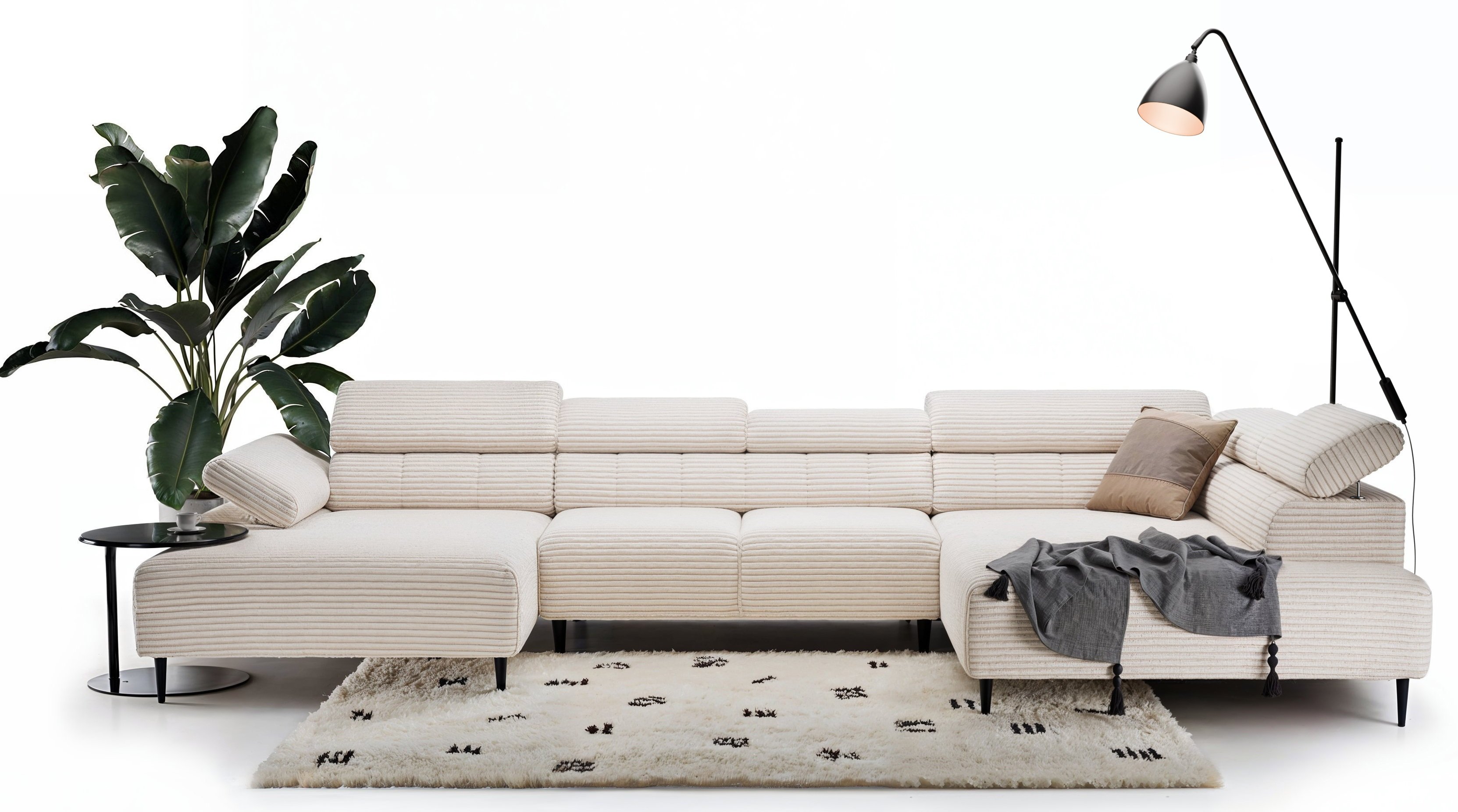 Kutna garnitura opremljena je podesivim naslonima za glavu i rukonaslonima, što omogućuje prilagodbu prema vašim željama. Električno rastezljivo sjedalo i podesivi naslon sjedala osiguravaju da će svaki trenutak na njoj biti nezaboravno udoban.