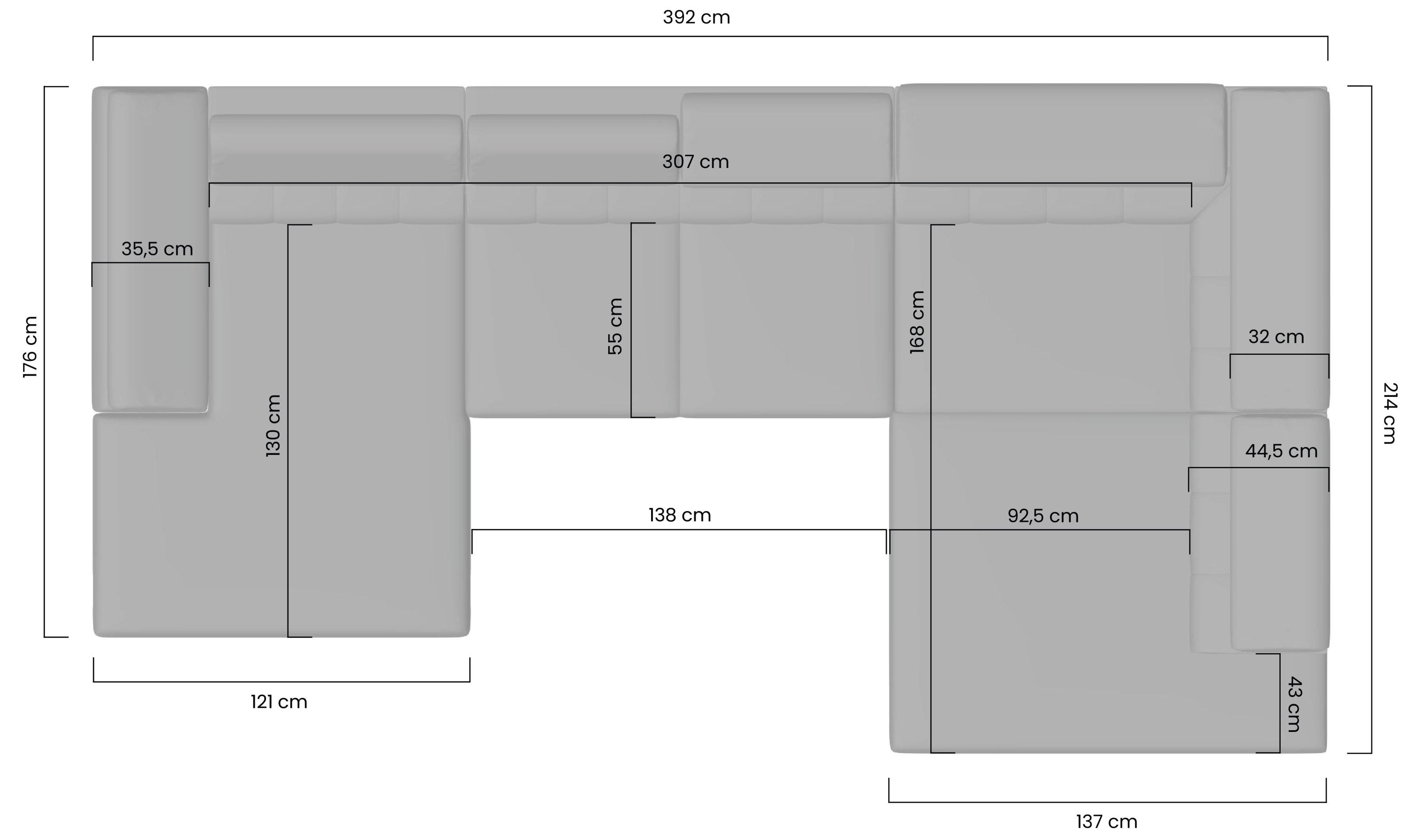 Predstavljamo vam kutnu garnituru Taloria U II, koja je dizajnirana tako da preoblikuje vaš dnevni prostor u oazu udobja i elegancije. Svojim impresivnim dimenzijama 392x214x96 cm, ona je više od komada namještaja – ona je središte vašeg doma, gdje se spajaju opuštanje, stil i funkcionalnost.