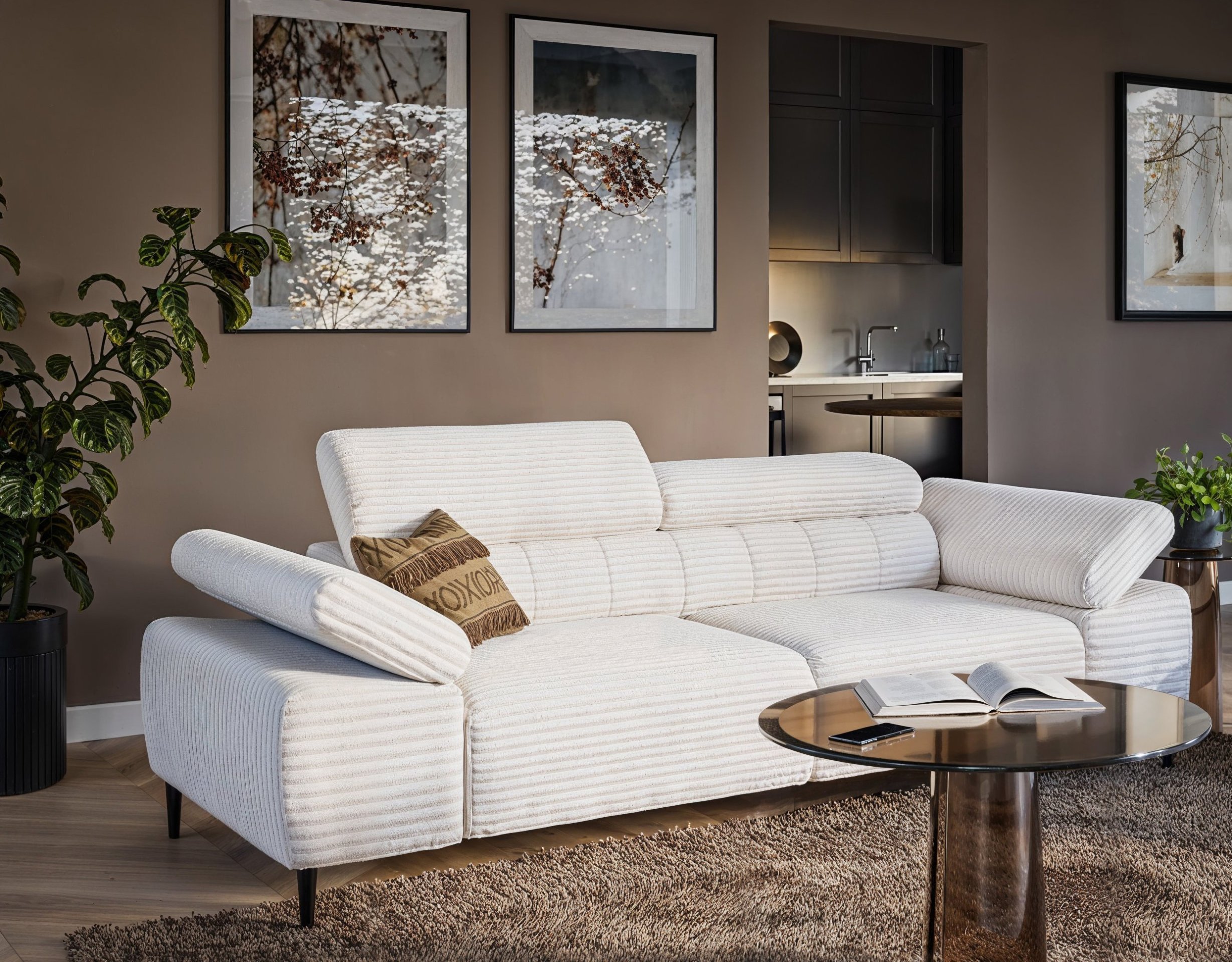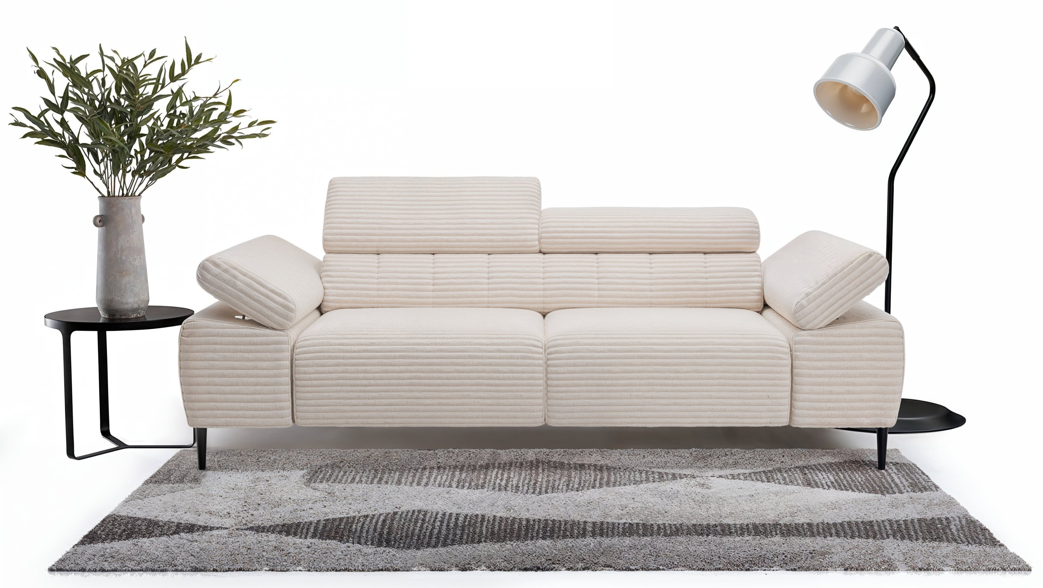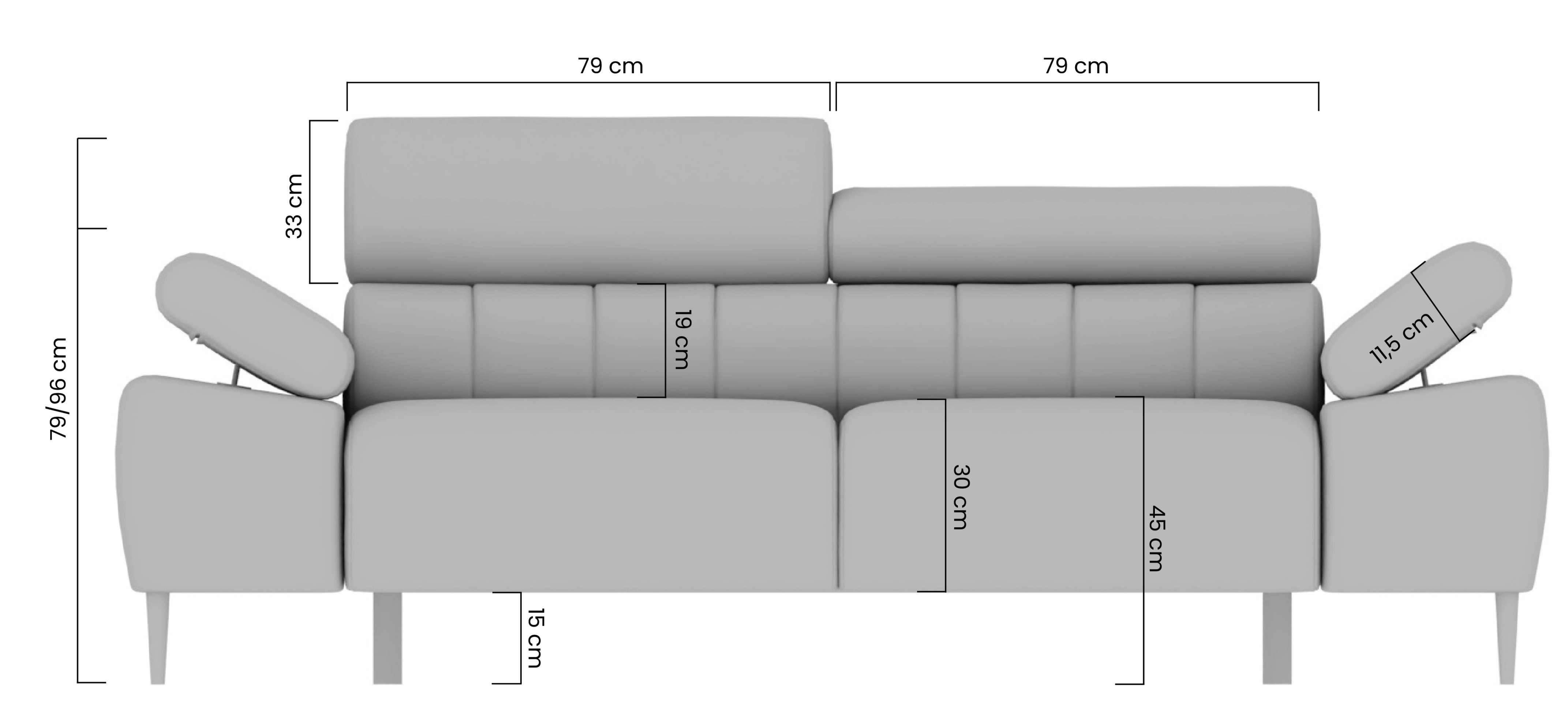Prilagodljivost i udobnost: trosjed Taloria III može se pohvaliti podesivim naslonima za glavu i rukama, što znači da možete prilagoditi prostor za sjedenje prema svojim potrebama. Električno podesivo sjedalo omogućuje dodatnu udobnost i opuštanje nakon napornog dana.