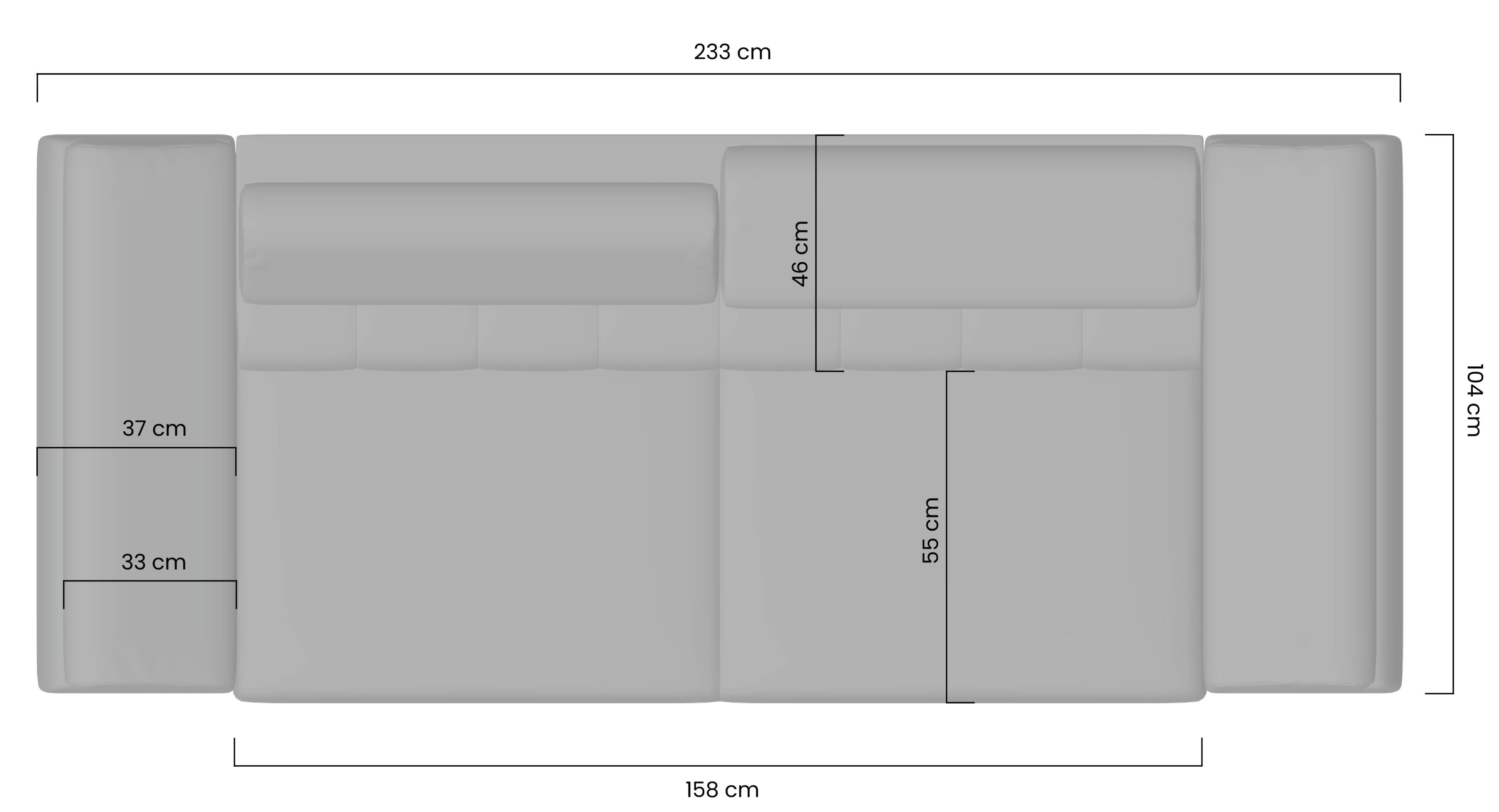 Dimenzije i nosivost: sa svojim dimenzijama 233x104x96 cm ovaj trosjed idealan je za veće dnevne sobe, gdje ćete vi i vaši gosti moći uživati u udobnosti. Maksimalno opterećenje od 150 kg osigurava sigurnost i stabilnost tijekom korištenja.