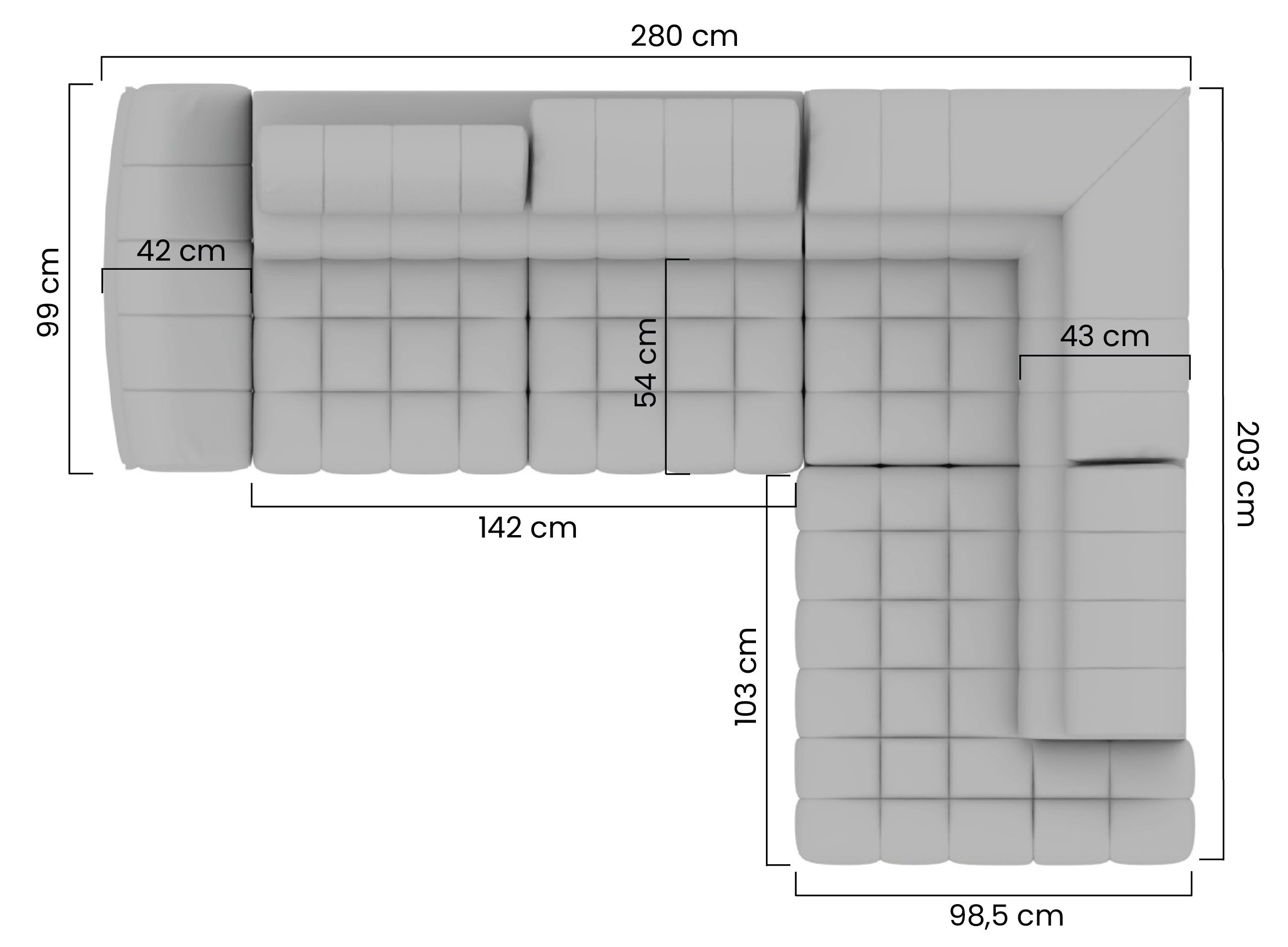Ako tražite elegantan i funkcionalan komad namještaja koji će postati središnja točka vašeg dnevnog prostora, kutna garnitura Valoris L pravi je izbor za vas. S dimenzijama 280x203x97 cm i iznimnim dizajnom, ova garnitura ispunit će sve vaše potrebe za udobnošću i stilom.