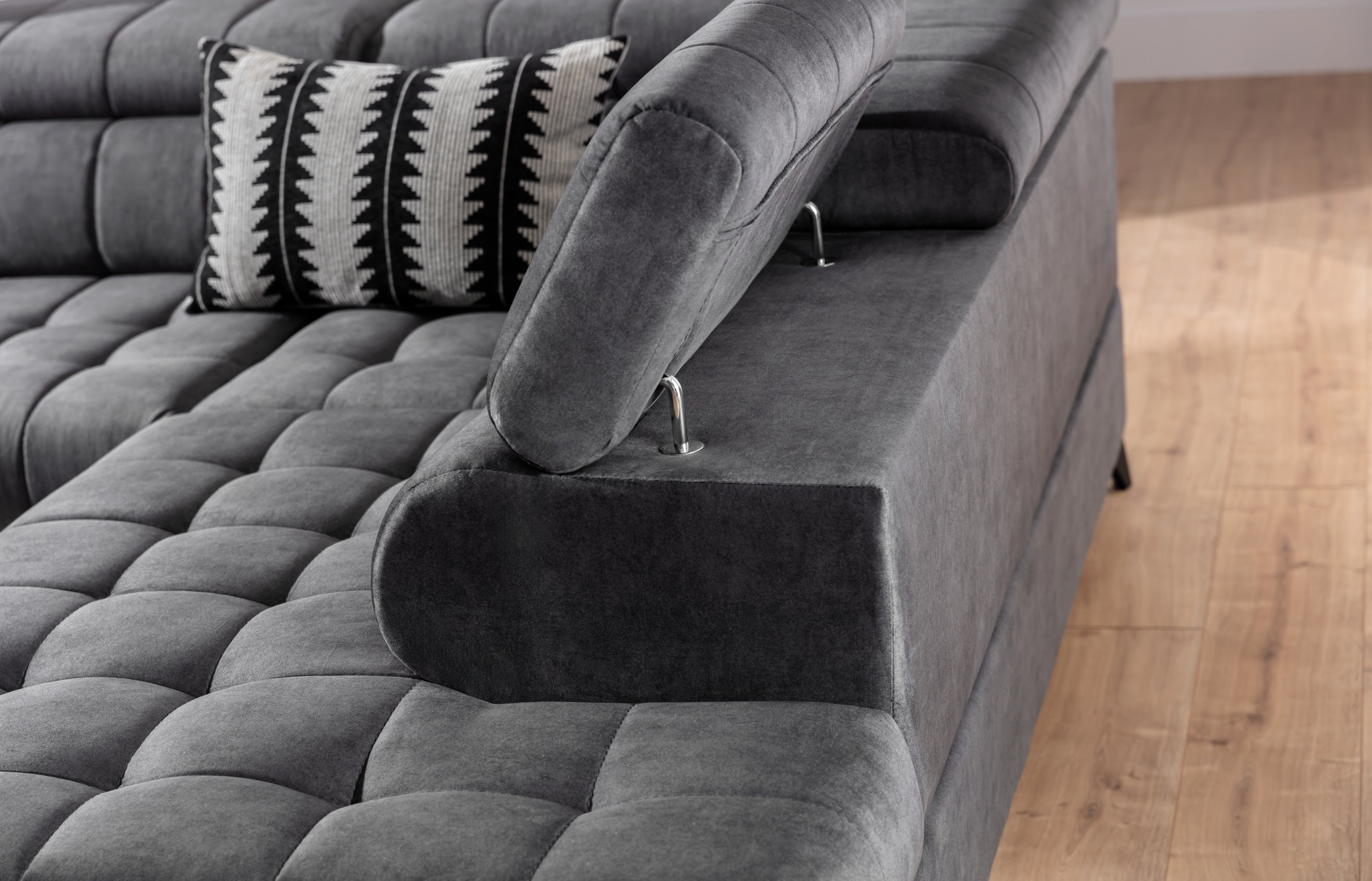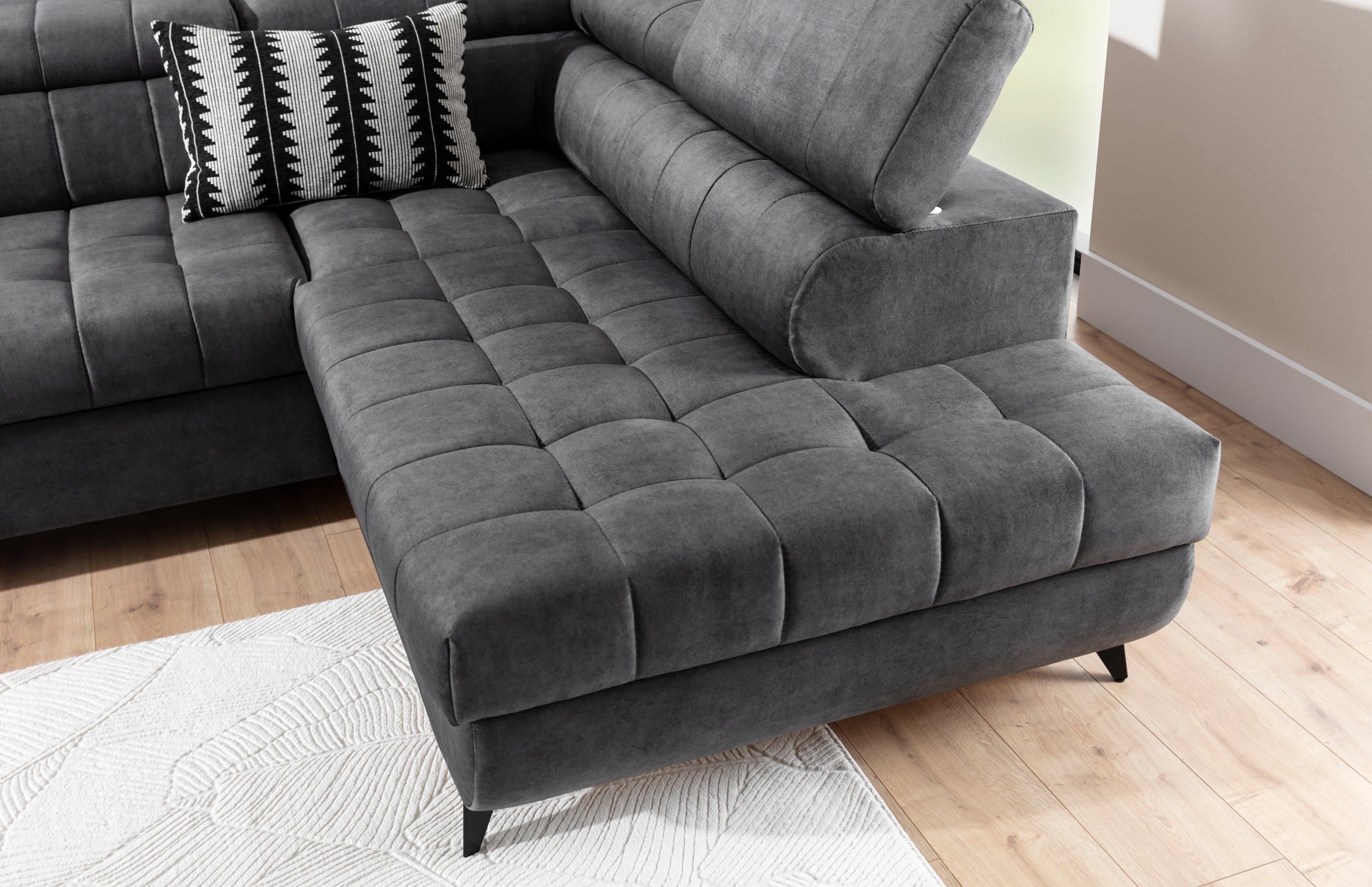 Osim estetskog izgleda, kutna garnitura Valoris L nudi i praktična rješenja. S ladicom za posteljinu uvijek ćete imati dodatni prostor za pohranu, što doprinosi urednom i organiziranom domu.