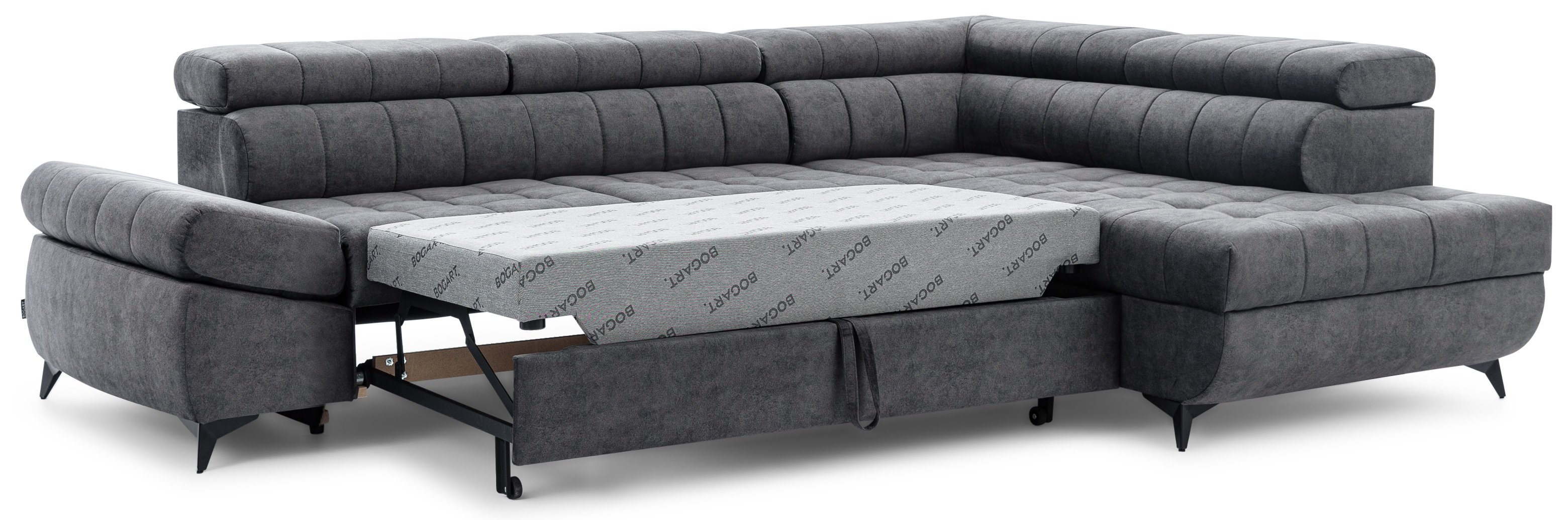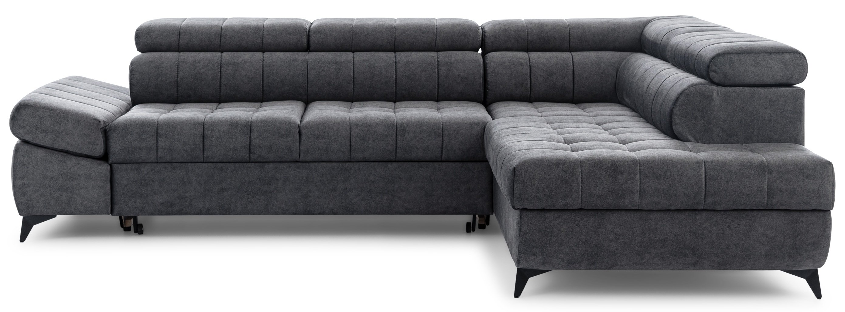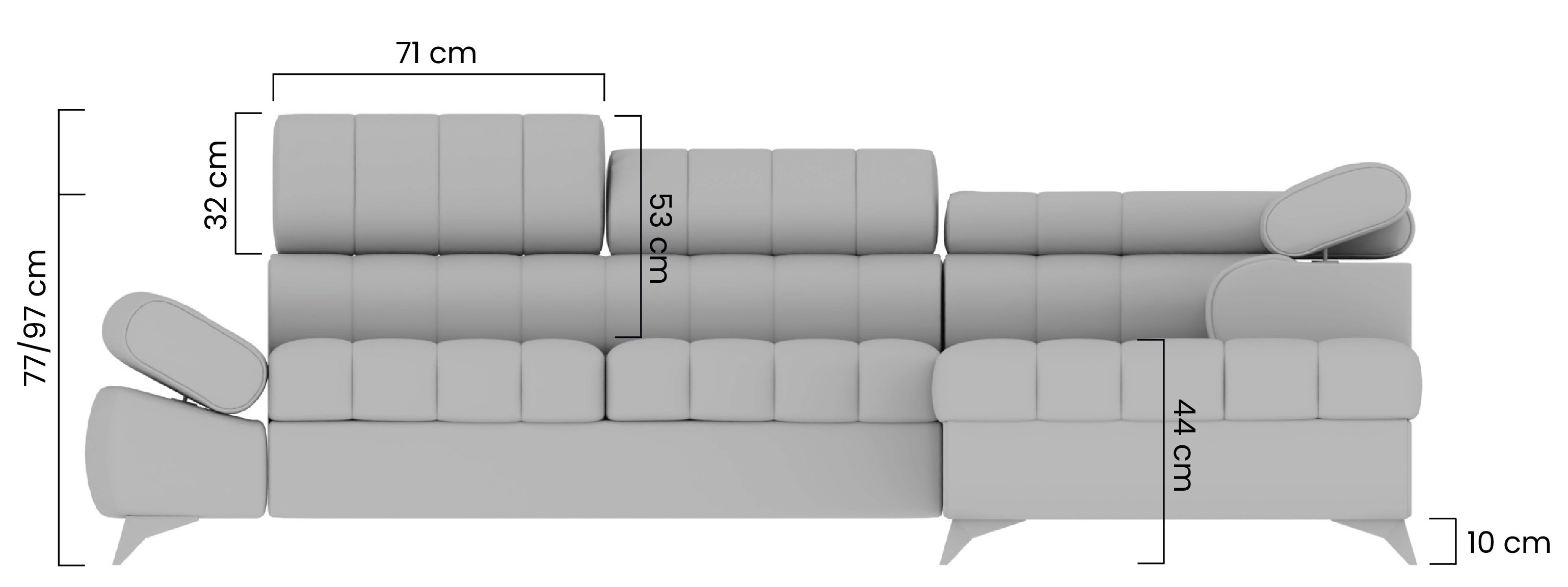 Ova garnitura opremljena je podesivim naslonima za glavu i ruke, što omogućuje osobno prilagođavanje udobnosti prema vašim željama. Mehanizam Dolphin omogućuje jednostavno i brzo pretvaranje garniture u udoban ležaj, dimenzija 211x124 cm, što je idealno za neočekivane goste ili opuštajuće vikende.