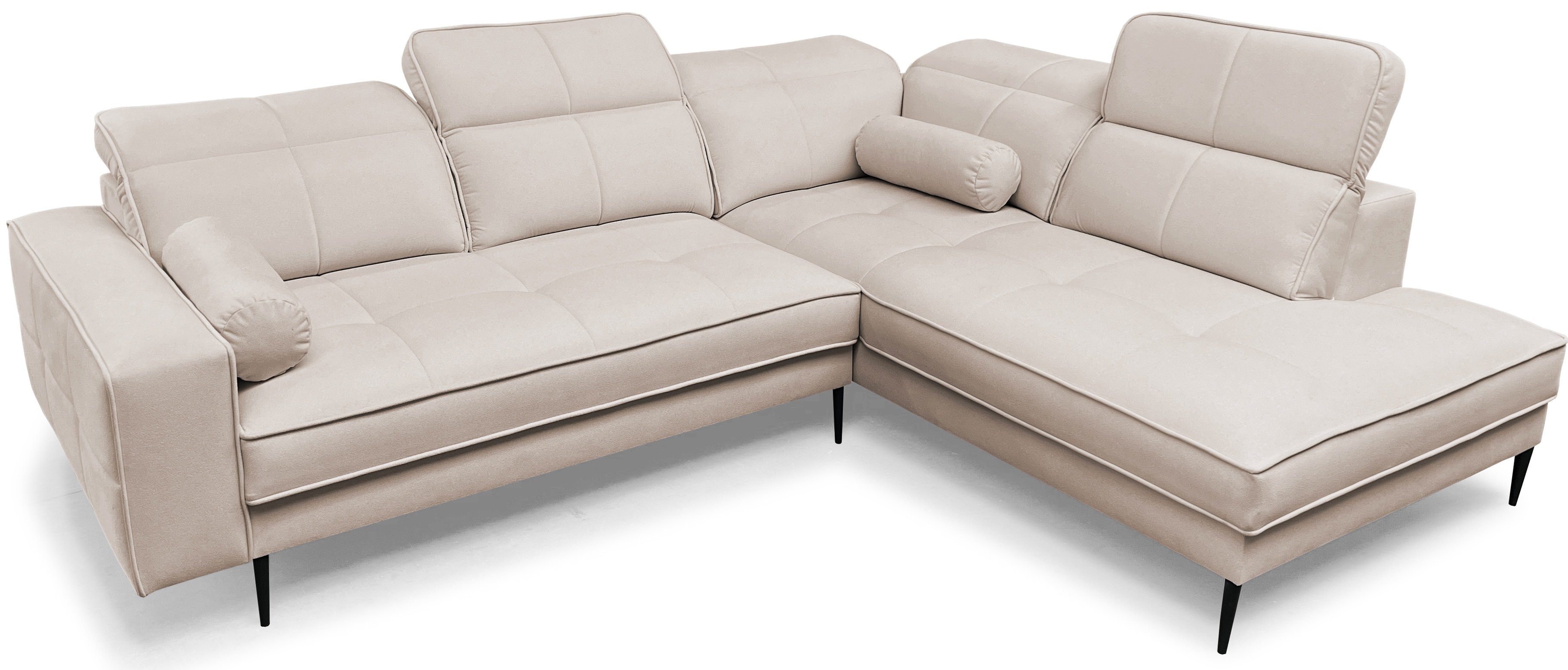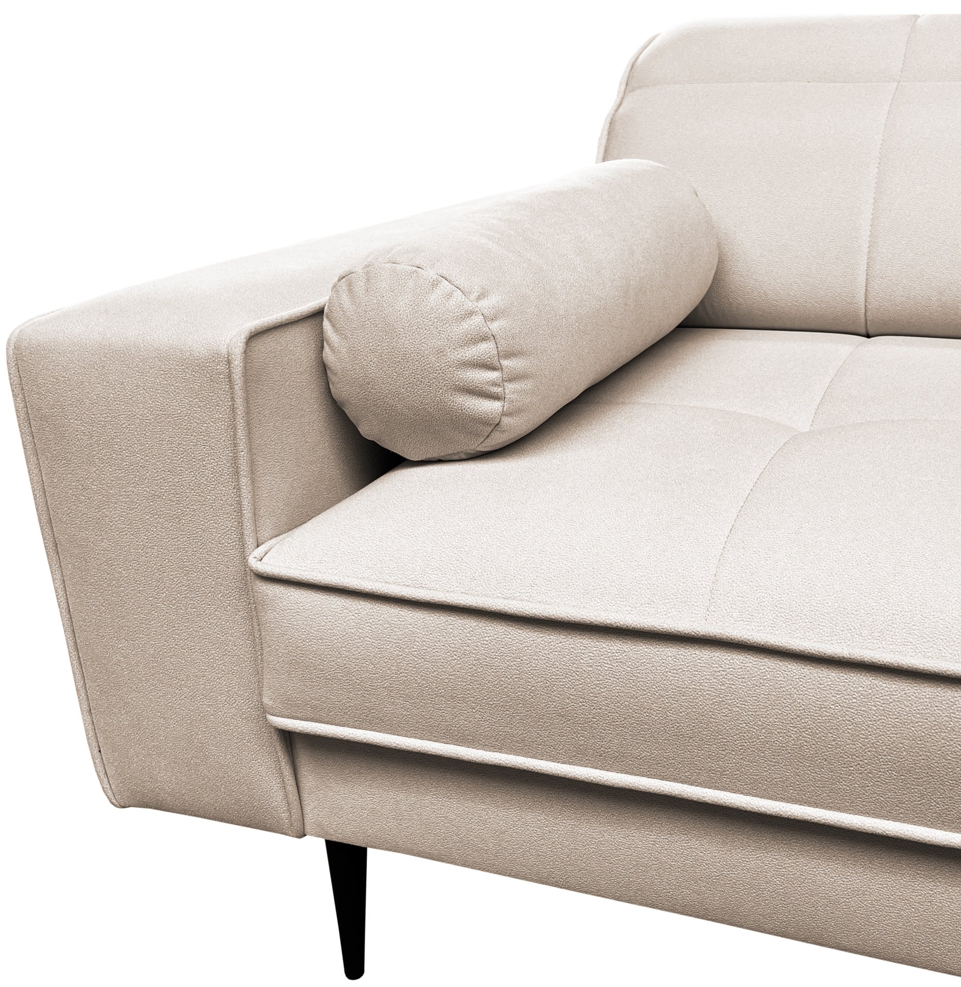 Svojim oblikom i čistim linijama garnitura se savršeno uklapa u suvremene interijere. Minimalistički stil nadopunjuju visoke metalne noge (15 cm), koje garnituri osim vizualne lakoće dodaju i praktičnost pri čišćenju. Garnitura je samostojeća, što znači da je možete postaviti bilo gdje u prostoru i uvijek će se isticati kao elegantan i prestižan komad namještaja. Dostupna je u širokoj paleti boja, pa je možete jednostavno prilagoditi svom ukusu i postojećem namještaju.