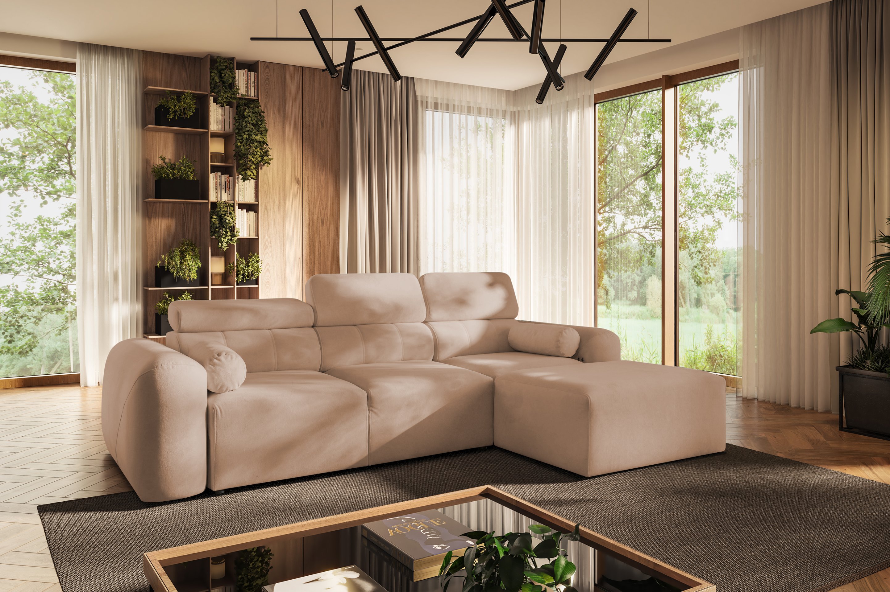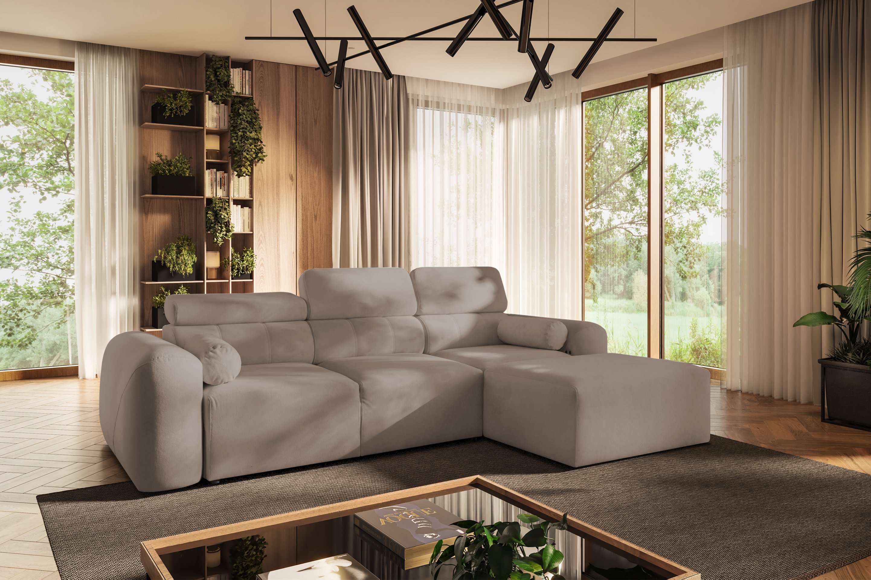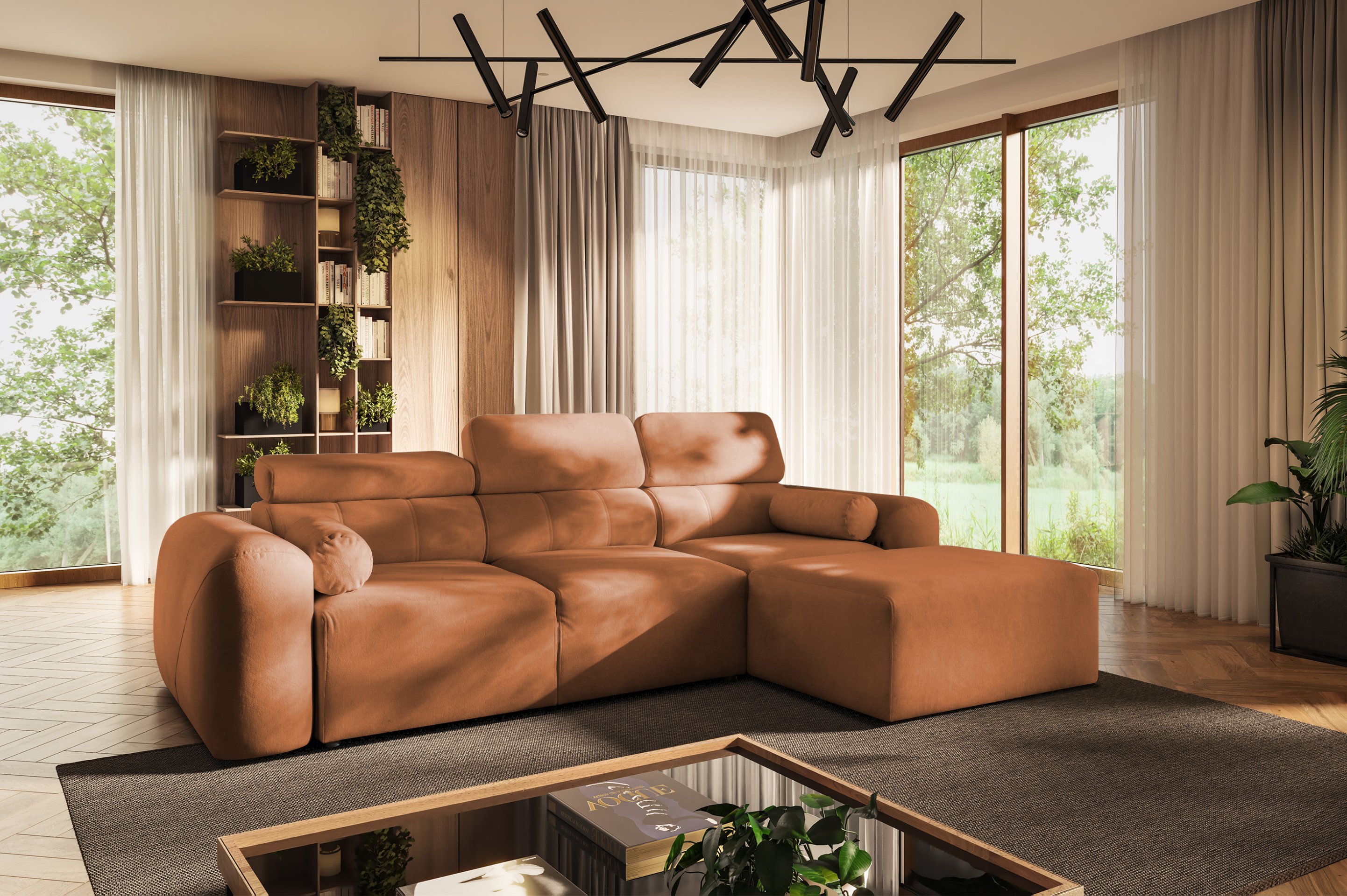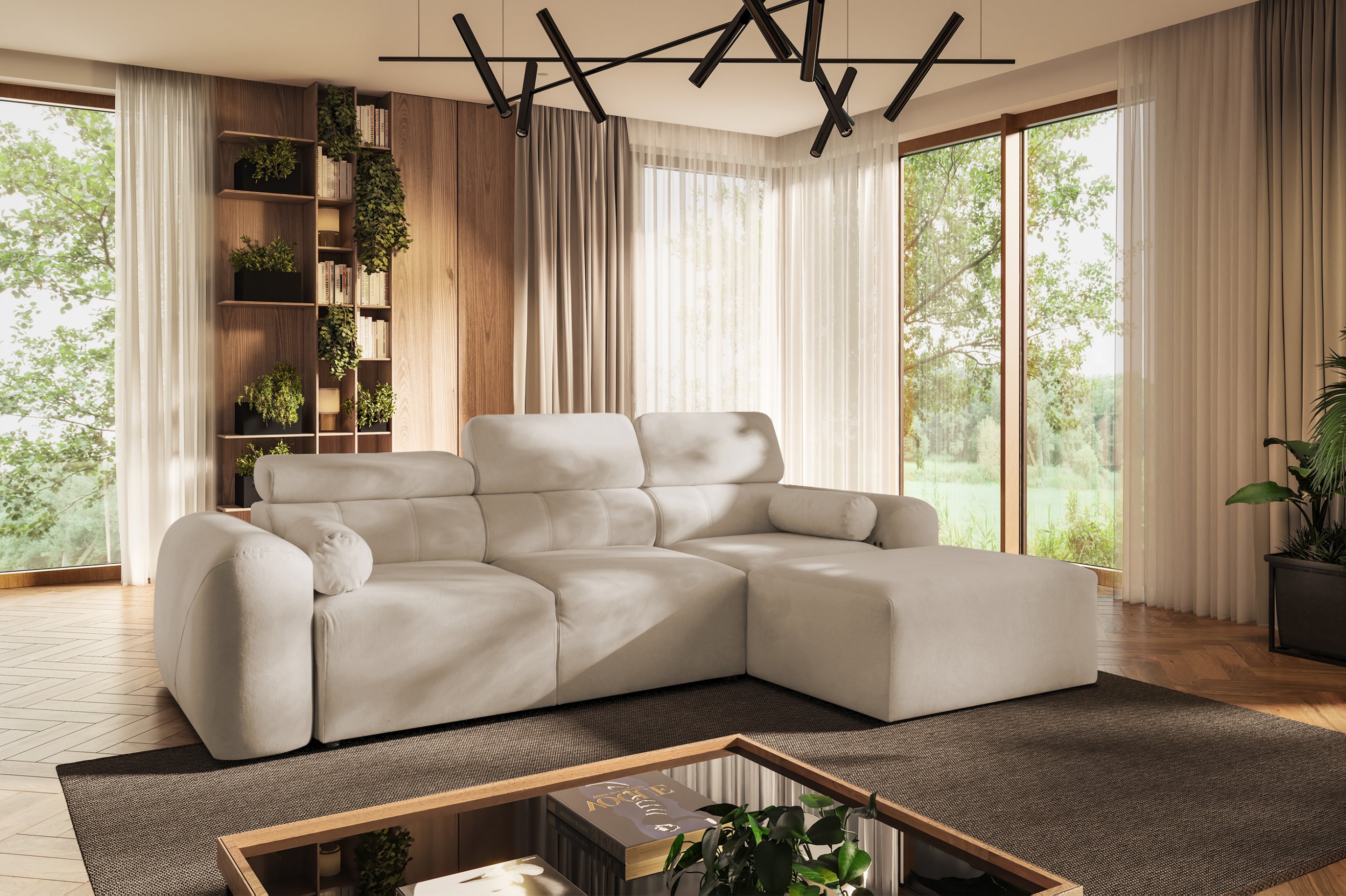 Kutna garnitura Volare I idealno je rješenje za suvremene domove u kojima je važno ravnotežje između estetike i funkcionalnosti. Njezin izgled dopunjuju podesivi nasloni za glavu koji omogućuju dodatnu udobnost pri gledanju televizije ili čitanju. Zbog promišljene konstrukcije i kvalitetnih materijala, ovo je komad namještaja koji će služiti dugi niz godina.