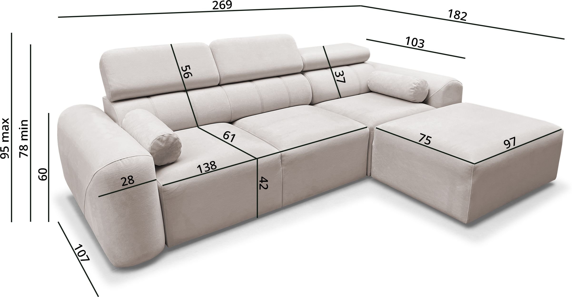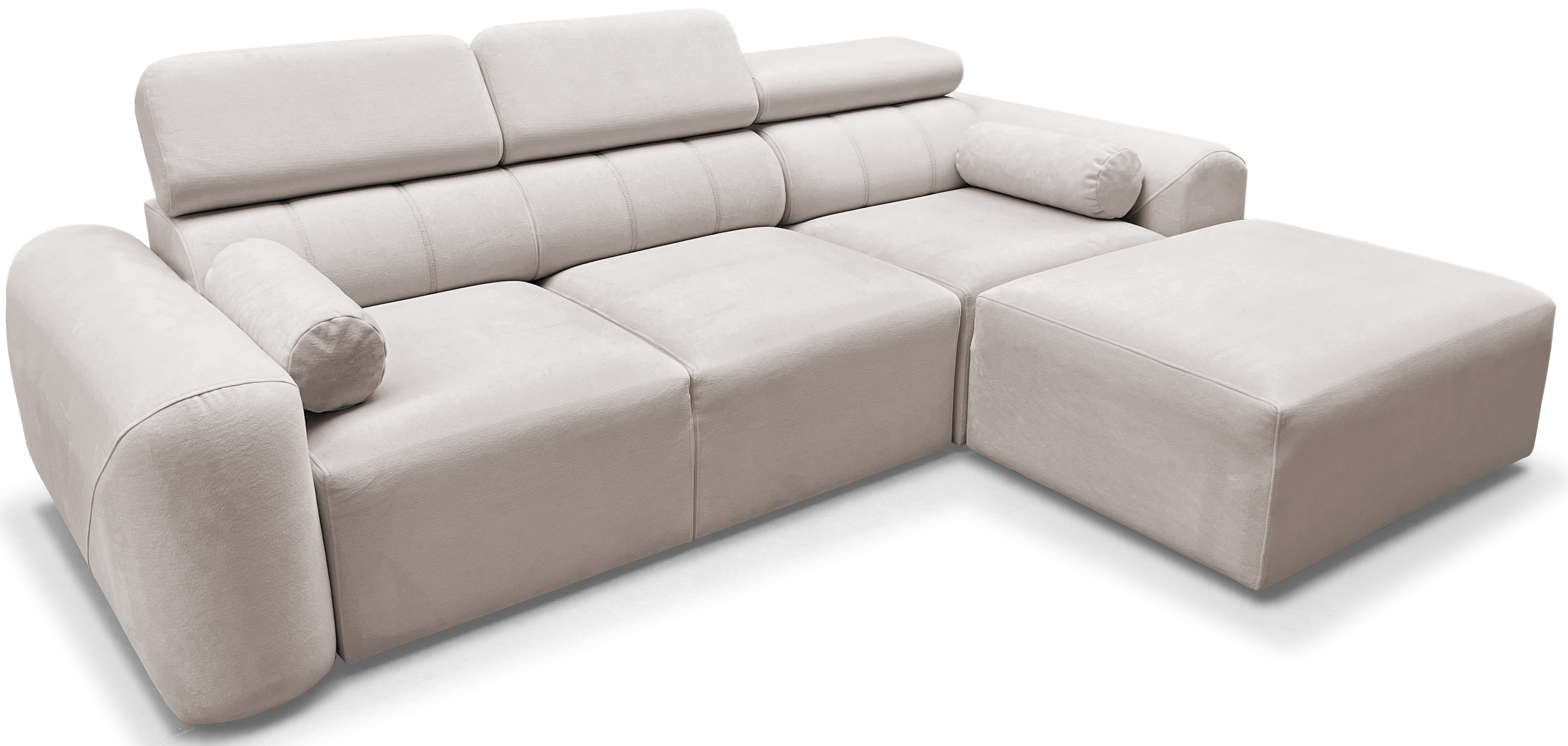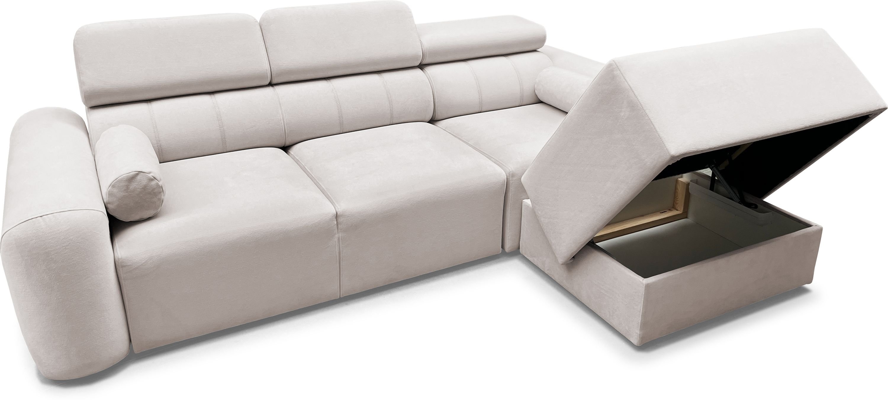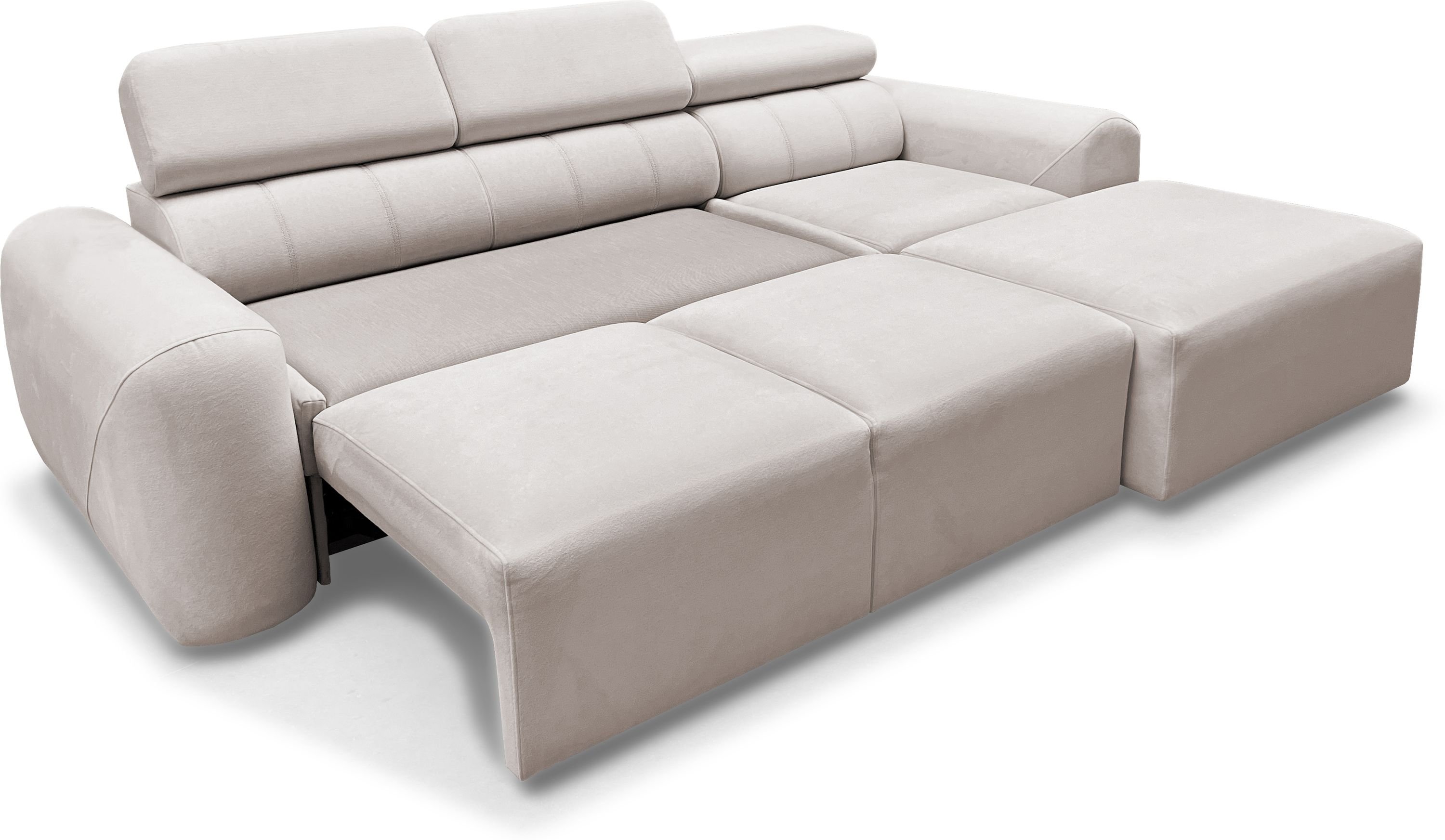 Kutna garnitura Volare I idealno je rješenje za suvremene domove u kojima je važno ravnotežje između estetike i funkcionalnosti. Njezin izgled dopunjuju podesivi nasloni za glavu koji omogućuju dodatnu udobnost pri gledanju televizije ili čitanju. Zbog promišljene konstrukcije i kvalitetnih materijala, ovo je komad namještaja koji će služiti dugi niz godina.