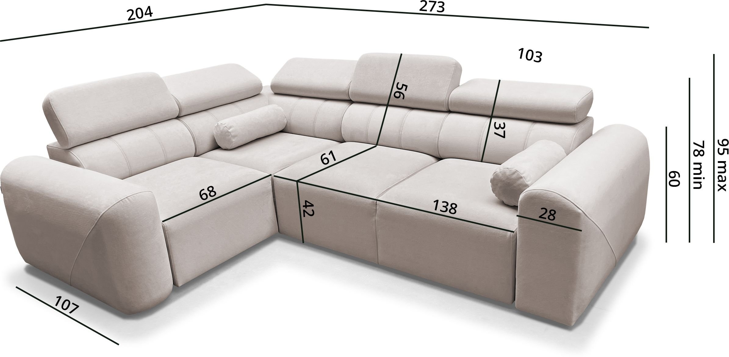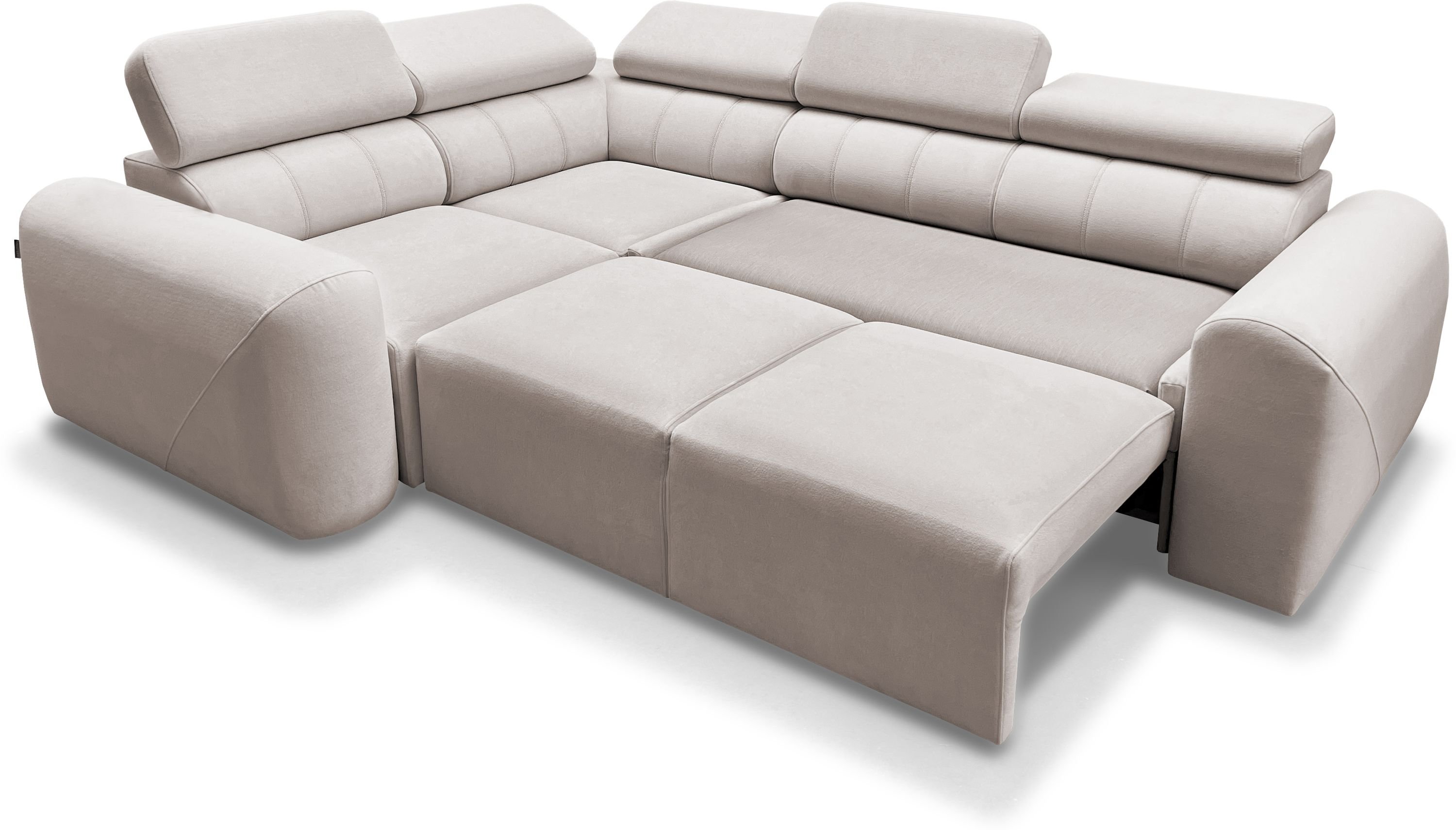 Kutna sjedeća garnitura Volare II idealno je rješenje za suvremene domove u kojima je važno postići ravnotežu između estetike i funkcionalnosti. Njezin izgled upotpunjuju podesivi nasloni za glavu, koji pružaju dodatnu udobnost pri gledanju televizije ili čitanju. Zahvaljujući promišljenoj konstrukciji i kvalitetnim materijalima, ovo je komad namještaja koji će trajati dugi niz godina.