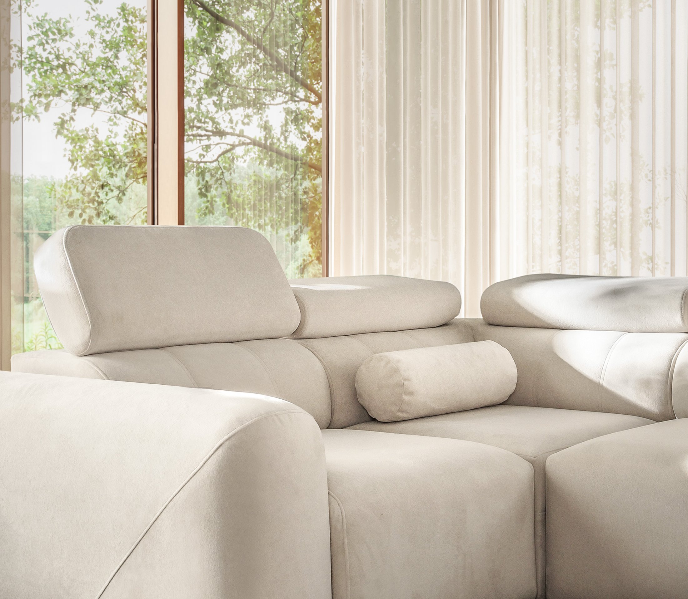 Volare IV nudi šest podesivih naslona za glavu, koji omogućuju individualno podešavanje visine i nagiba za optimalnu potporu vratu. Garnitura je samostojeća, stoga ju je moguće postaviti i u sredinu prostora, gdje će djelovati kao središnji element dnevne sobe. Presvučena je tkaninom Torra 41063, koja pripada četvrtoj skupini kvalitetnih materijala. Tkanina je ugodna na dodir, otporna na habanje i jednostavna za održavanje.