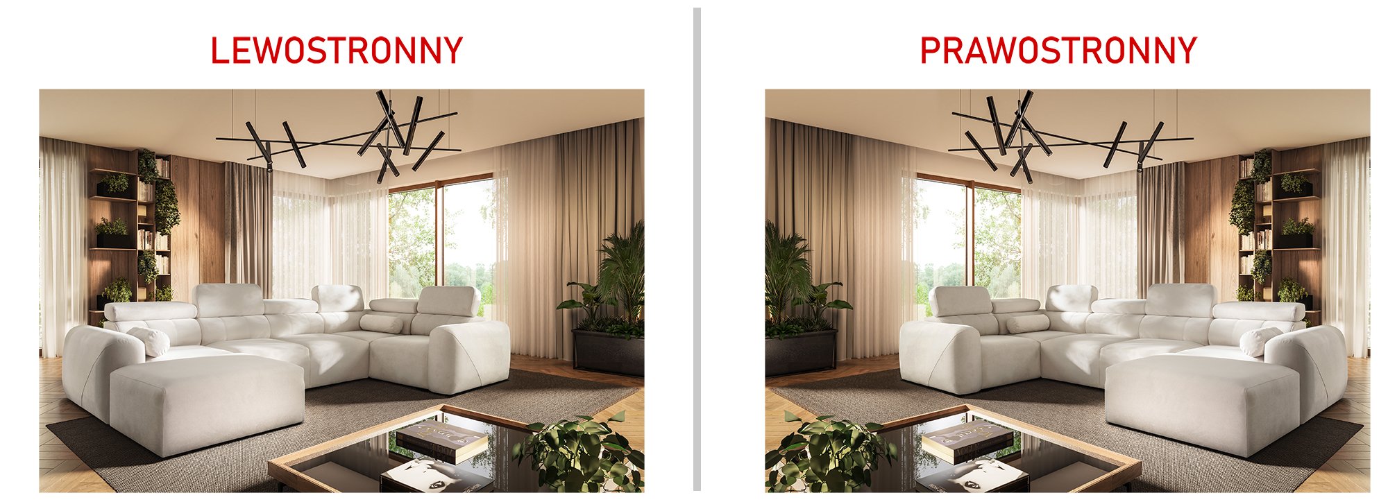 Model je moguće naručiti u lijevoj ili desnoj izvedbi, ovisno o rasporedu prostora. Strana naručitelja određuje se gledajući garnituru sprijeda, što omogućuje potpunu prilagodbu unutarnjem uređenju.
