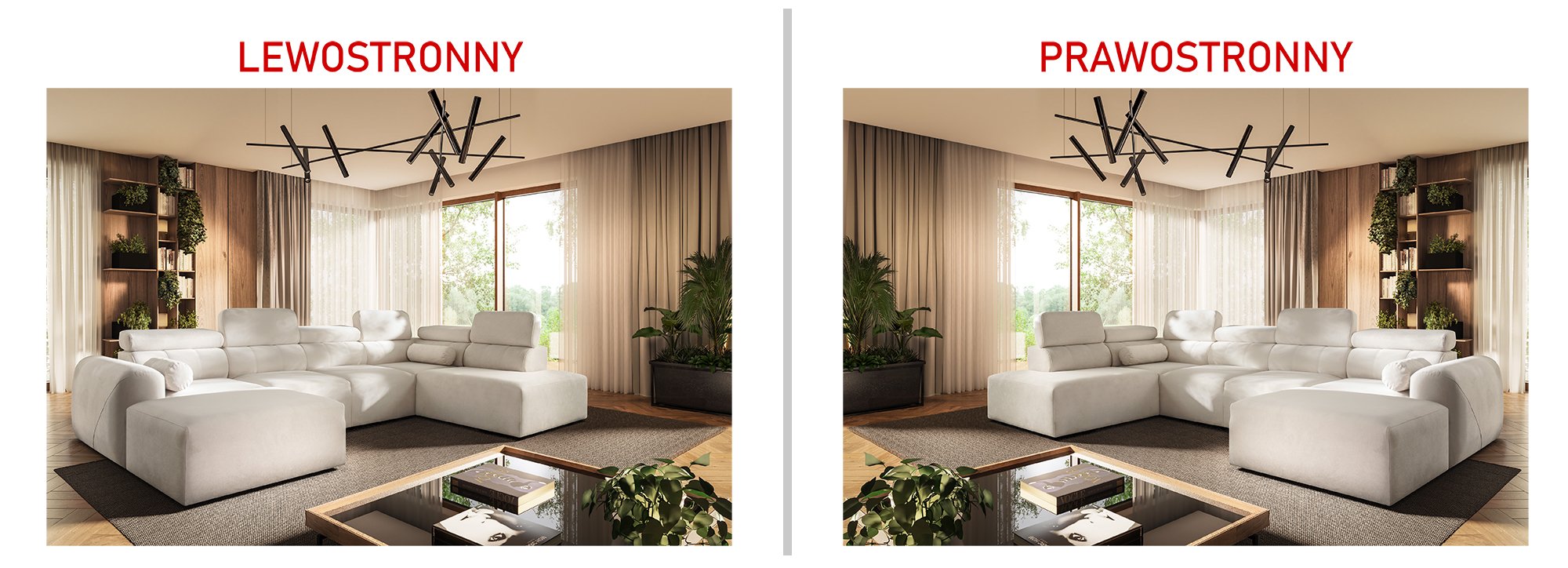 Model je moguće naručiti u lijevoj ili desnoj izvedbi, ovisno o rasporedu prostora. Strana naručitelja određuje se gledanjem na garnituru sprijeda, što omogućuje potpunu prilagodbu unutarnjem uređenju.
