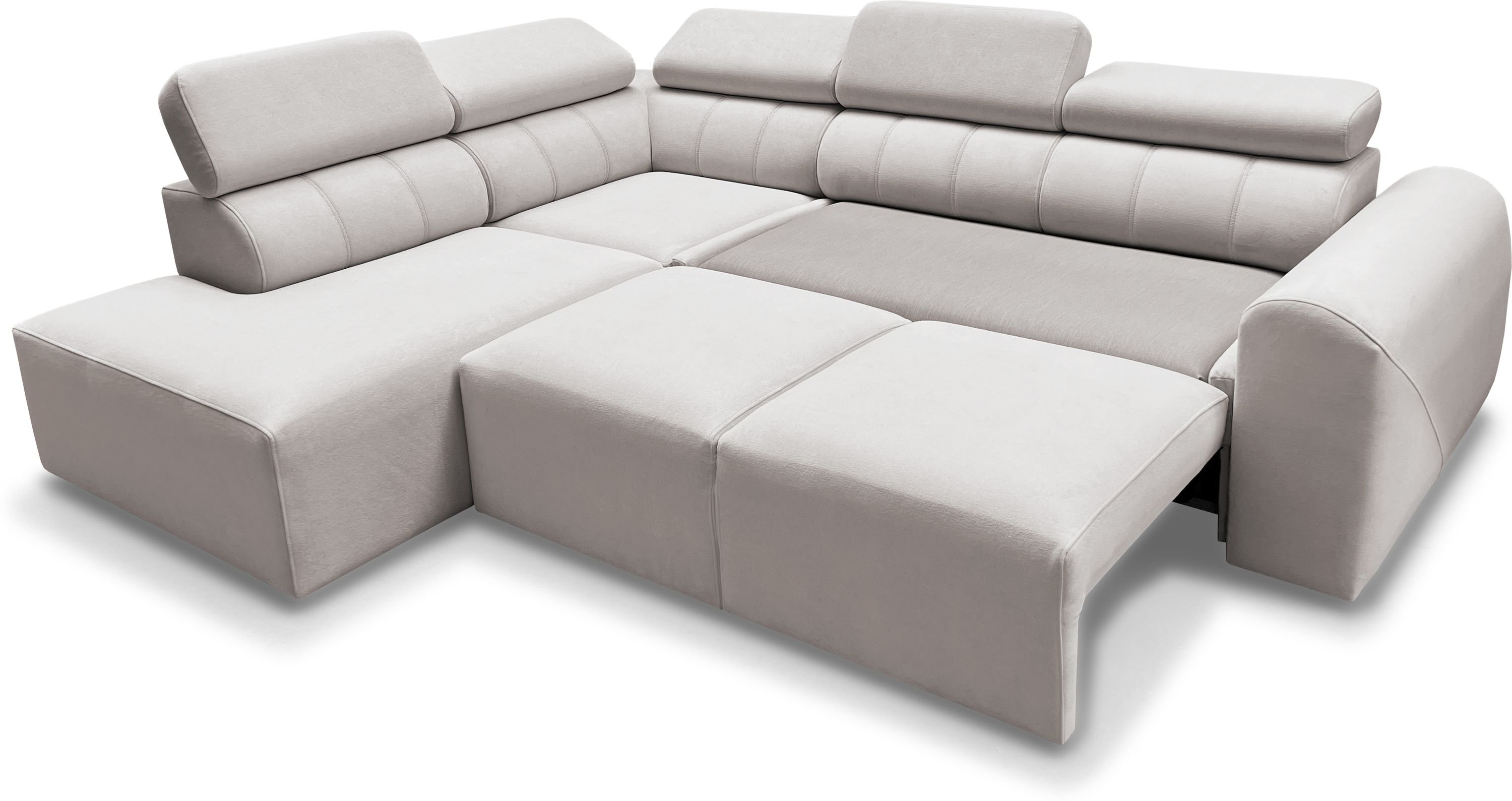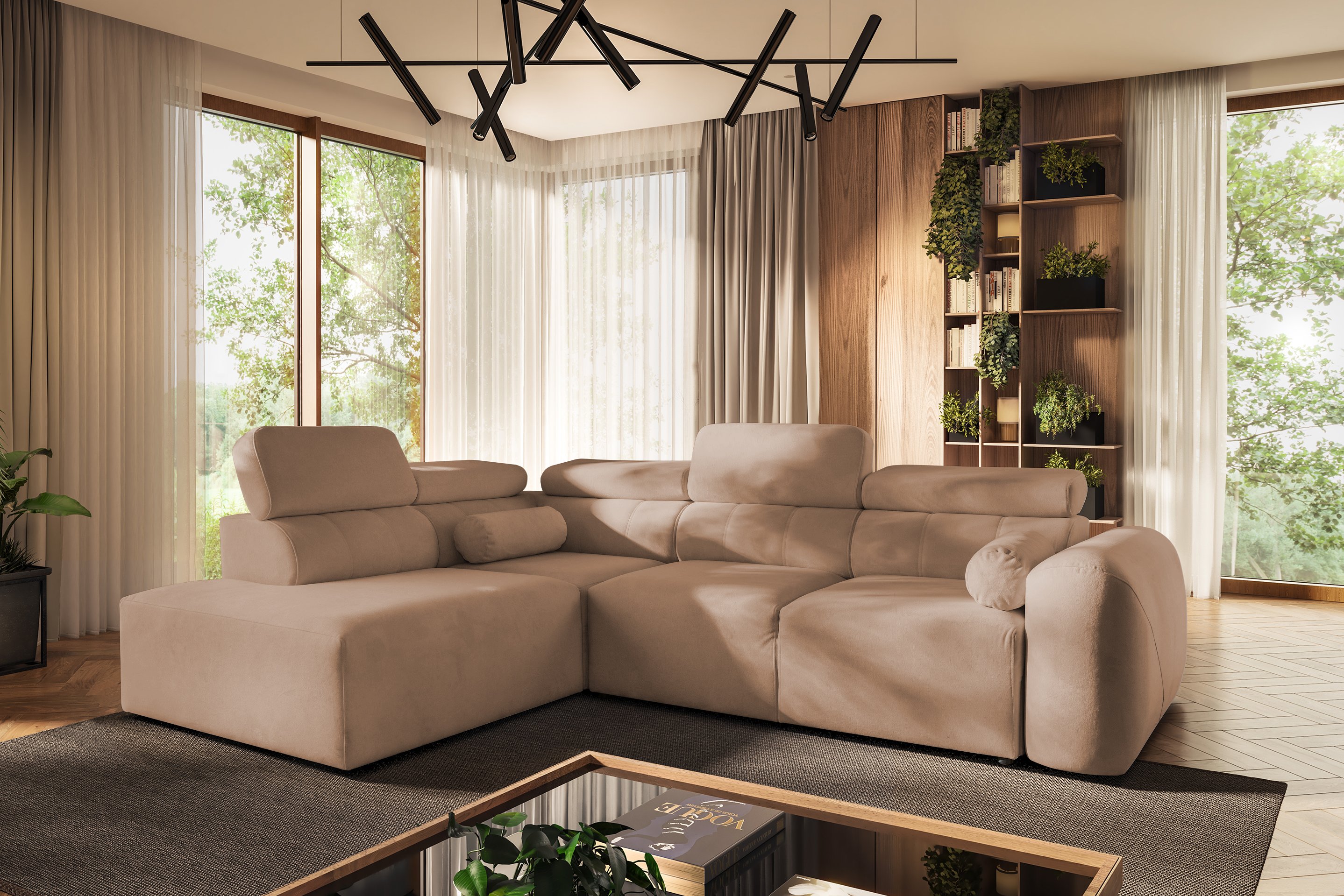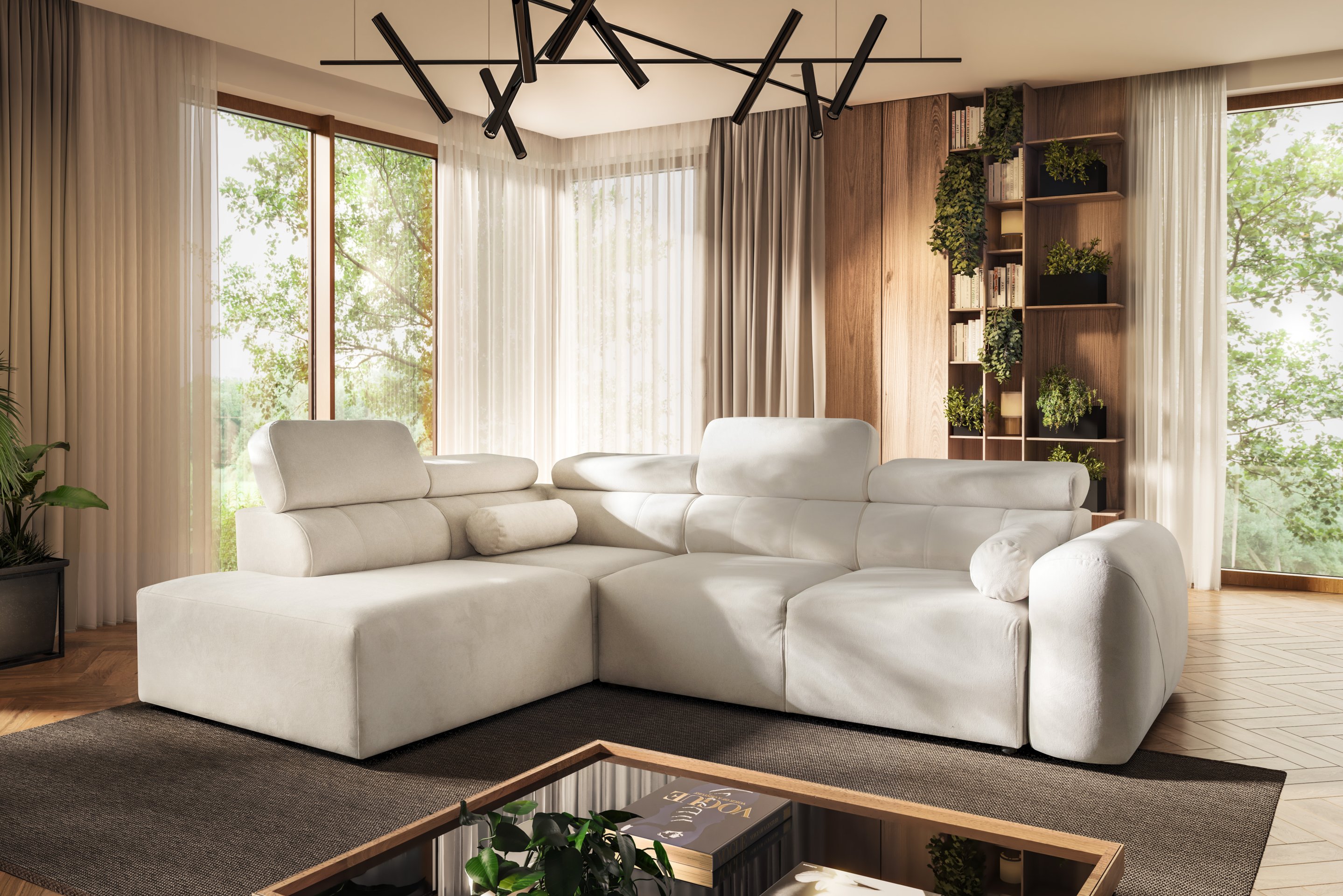 Kutna garnitura Volare VII idealno je rješenje za moderne domove, gdje je važno ravnotežje između estetike i funkcionalnosti. Njezin izgled upotpunjuju podesivi nasloni za glavu koji omogućuju dodatnu udobnost pri gledanju televizije ili čitanju. Zbog promišljene konstrukcije i kvalitetnih materijala, ovo je komad namještaja koji će služiti dugi niz godina.