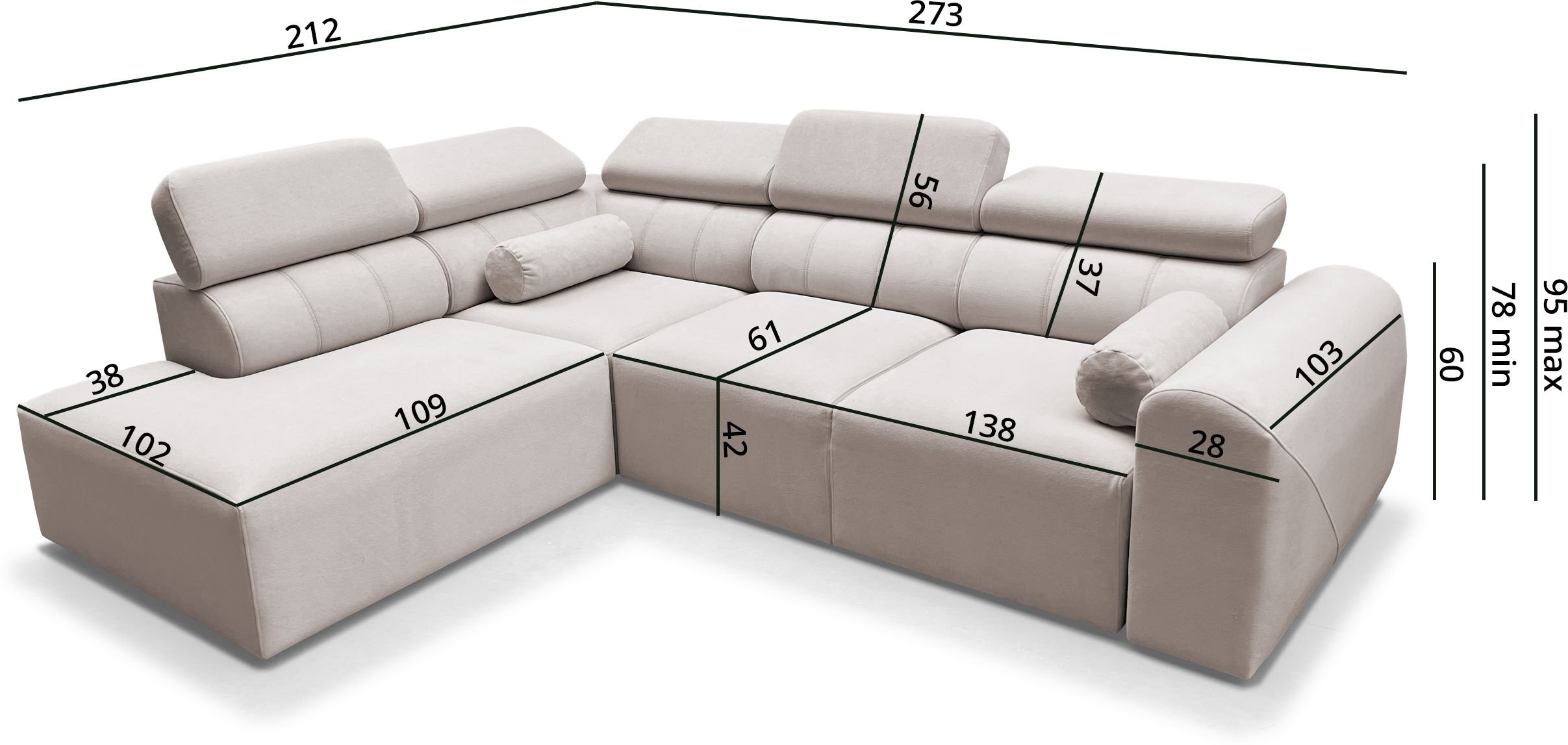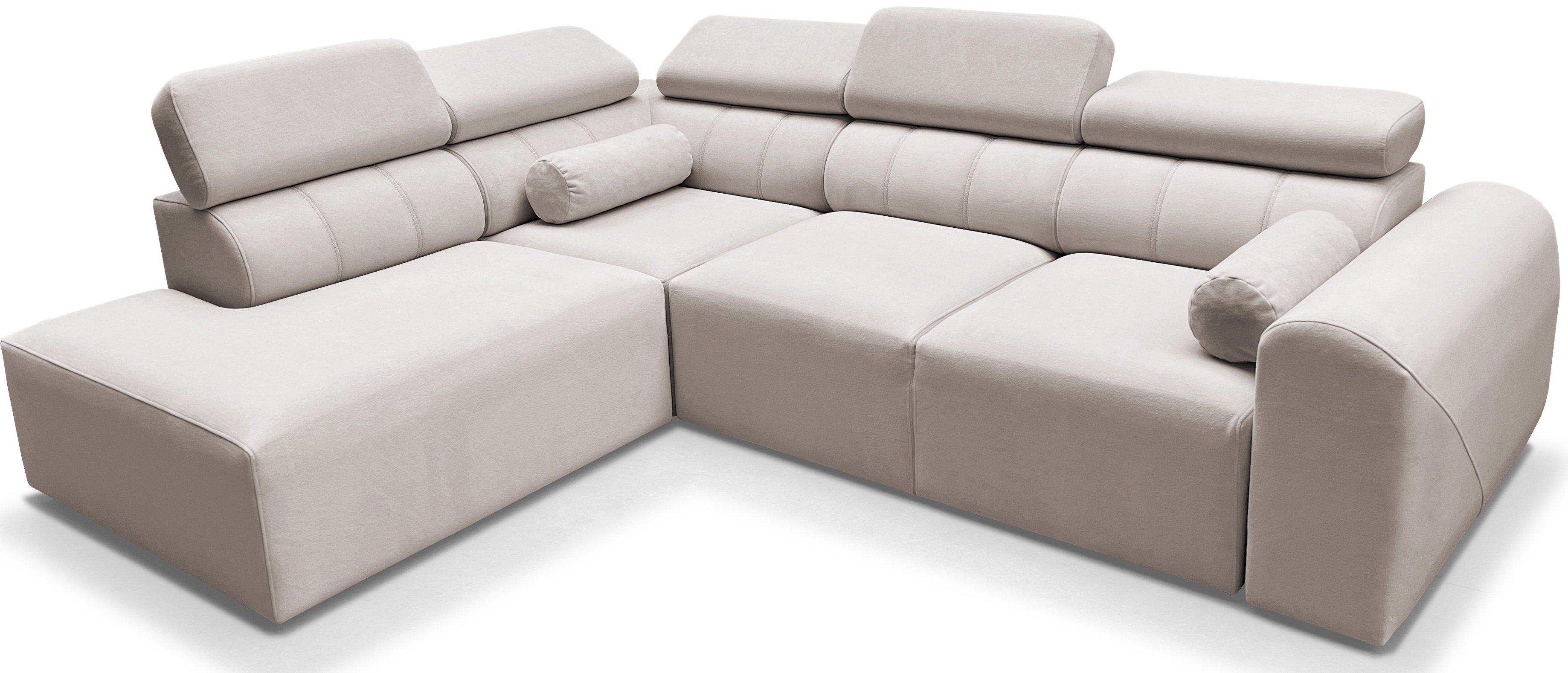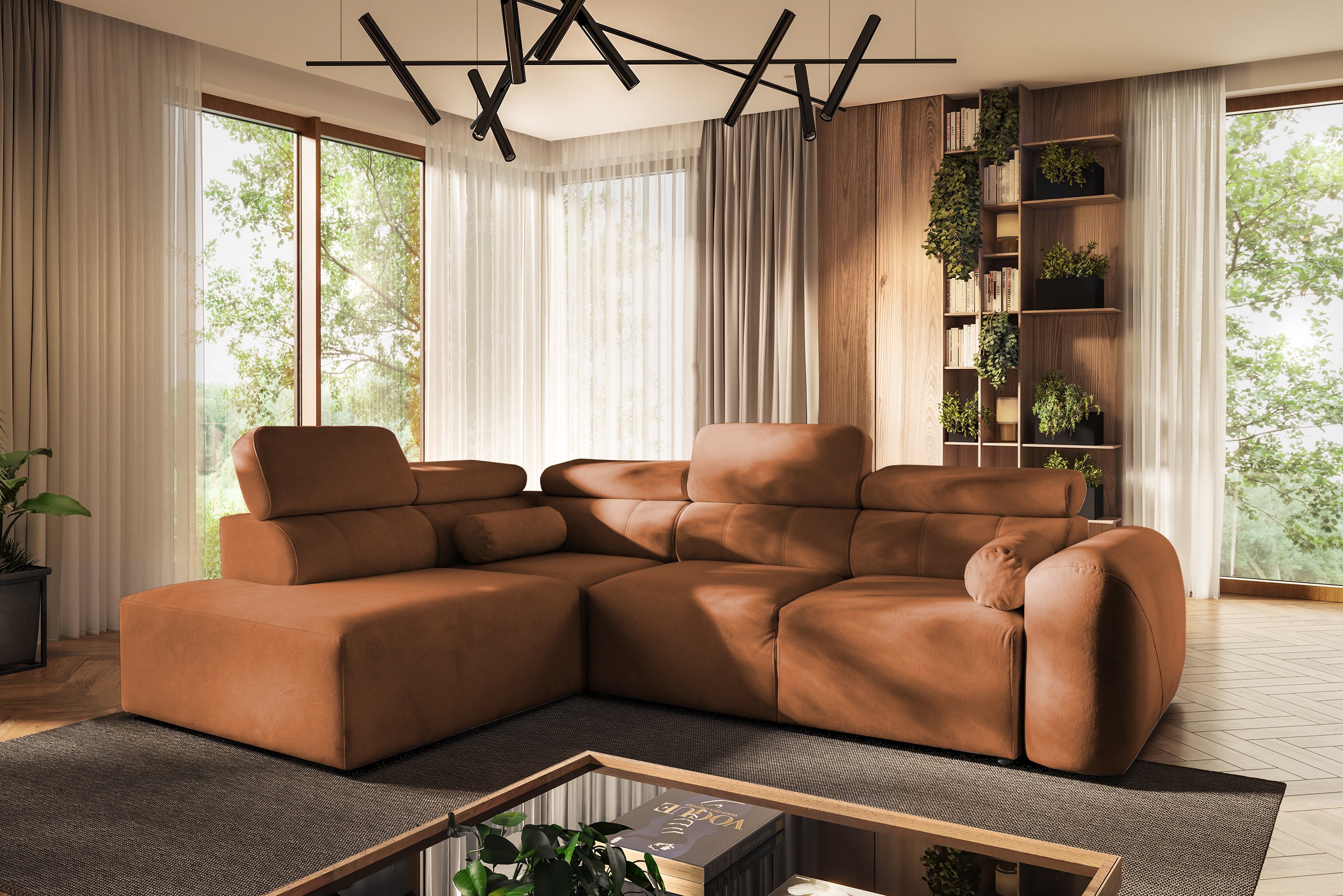 Kutna garnitura Volare VII idealno je rješenje za moderne domove, gdje je važno ravnotežje između estetike i funkcionalnosti. Njezin izgled upotpunjuju podesivi nasloni za glavu koji omogućuju dodatnu udobnost pri gledanju televizije ili čitanju. Zbog promišljene konstrukcije i kvalitetnih materijala, ovo je komad namještaja koji će služiti dugi niz godina.