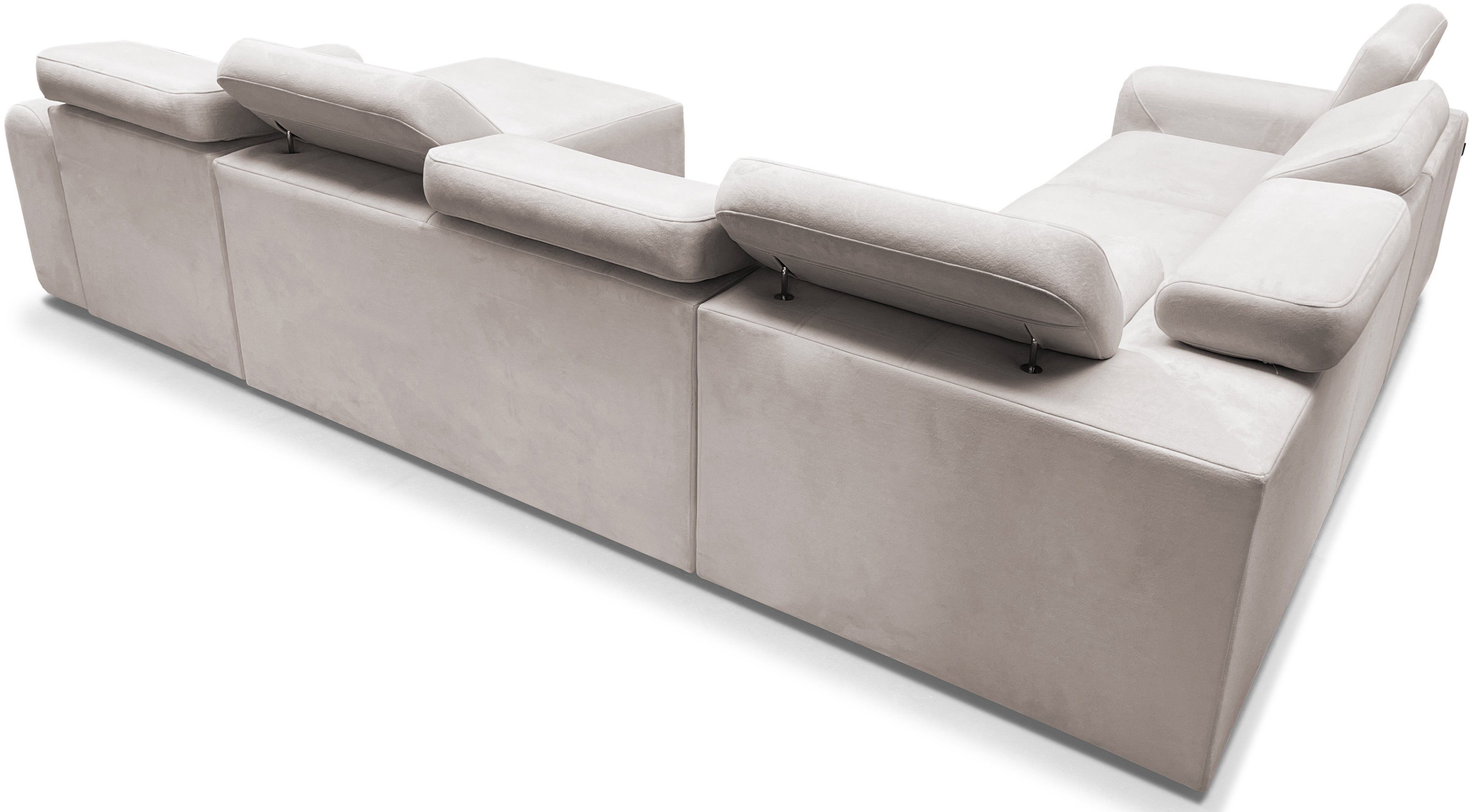 Volare VIII nudi šest podesivih naslona za glavu, koji omogućuju individualno podešavanje visine i nagiba za optimalnu potporu vratu. Garnitura je samostojeća, pa ju je moguće postaviti i u središte prostora, gdje će djelovati kao središnji element dnevne sobe. Presvučena je tkaninom Torra 41063, koja pripada četvrtoj skupini kvalitetnih materijala. Tkanina je ugodna na dodir, otporna na habanje i jednostavna za održavanje.