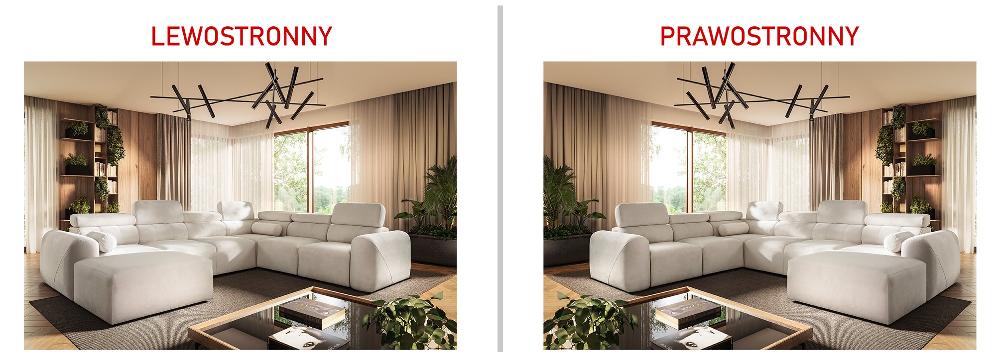 Model je moguće naručiti u lijevoj ili desnoj izvedbi, ovisno o rasporedu prostora. Strana naručitelja određuje se gledajući garnituru sprijeda, što omogućuje potpunu prilagodbu unutarnjem uređenju.