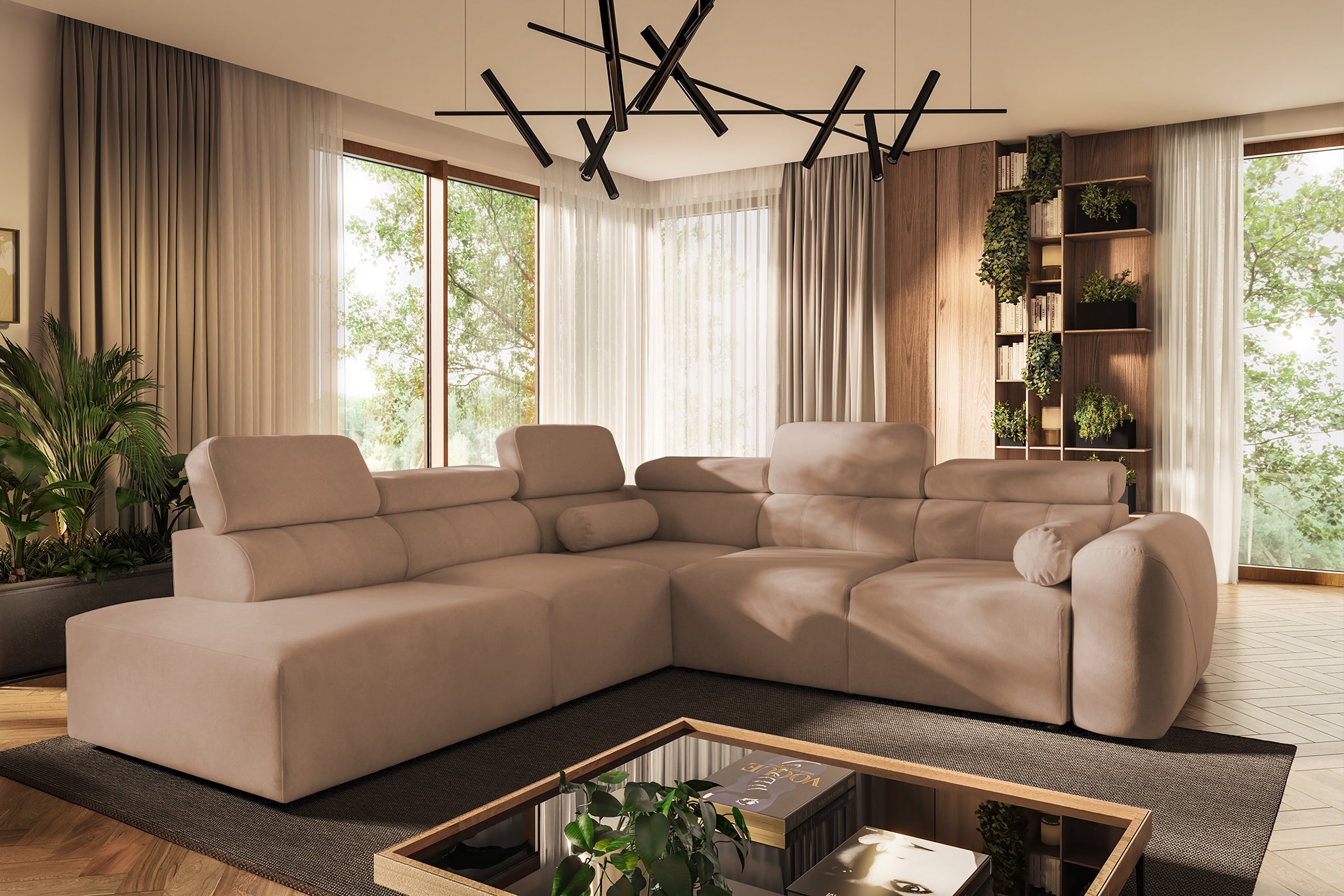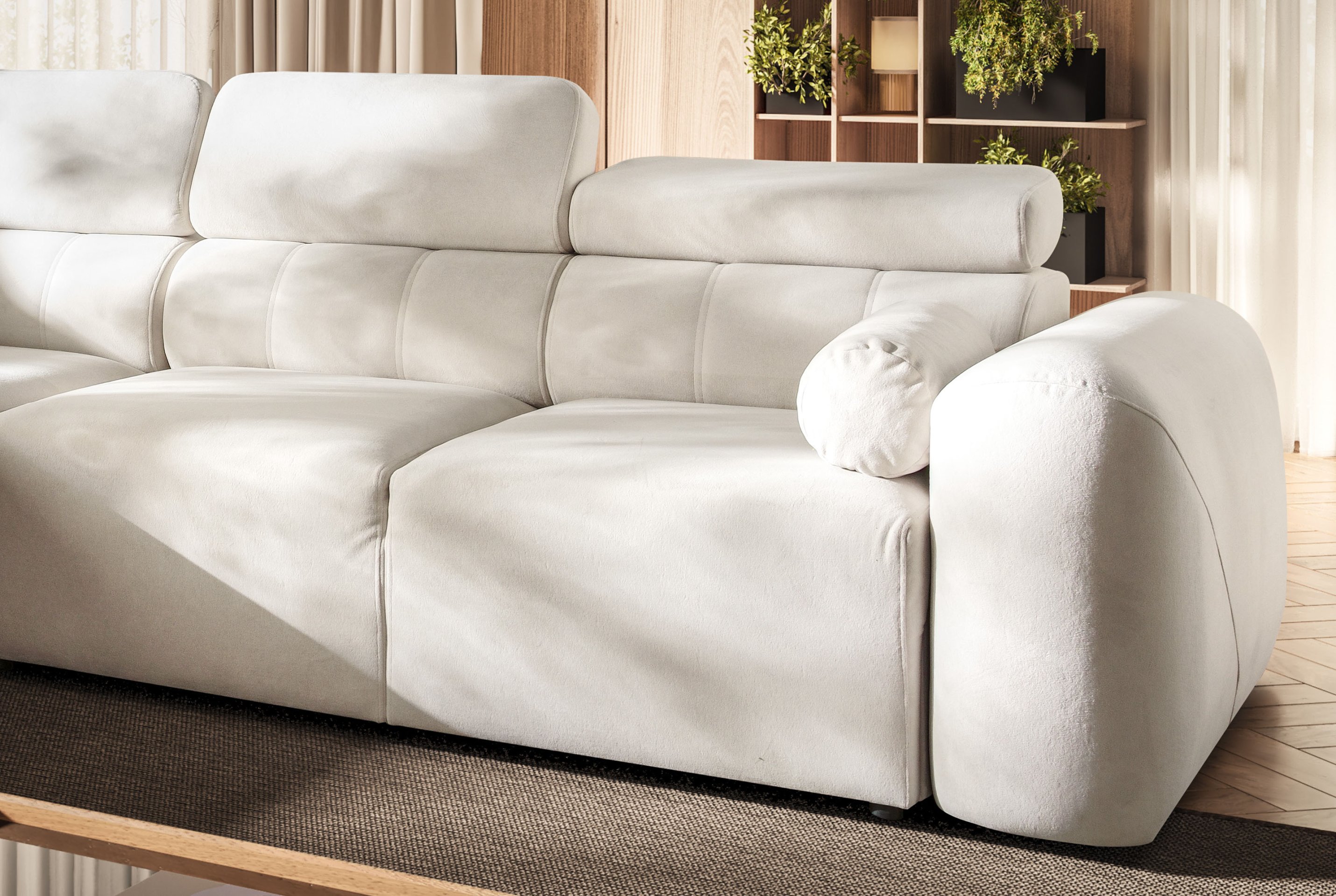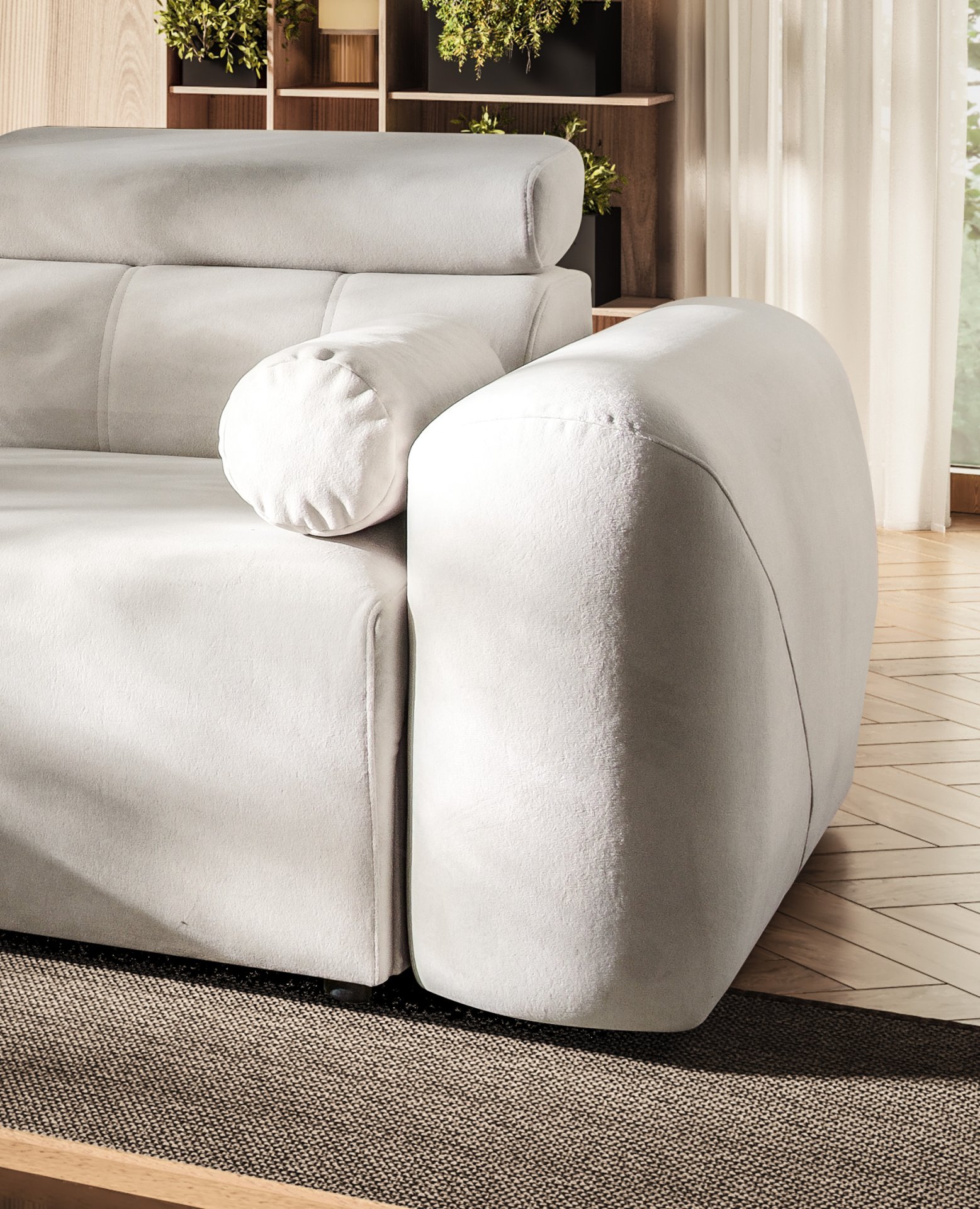 Kutna garnitura Volare IX idealno je rješenje za suvremene domove, gdje je važno ravnoteža između estetike i funkcionalnosti. Njezin izgled upotpunjuju podesivi nasloni za glavu, koji omogućuju dodatnu udobnost pri gledanju televizije ili čitanju. Zbog promišljene konstrukcije i kvalitetnih materijala, ovo je komad namještaja koji će služiti dugi niz godina.