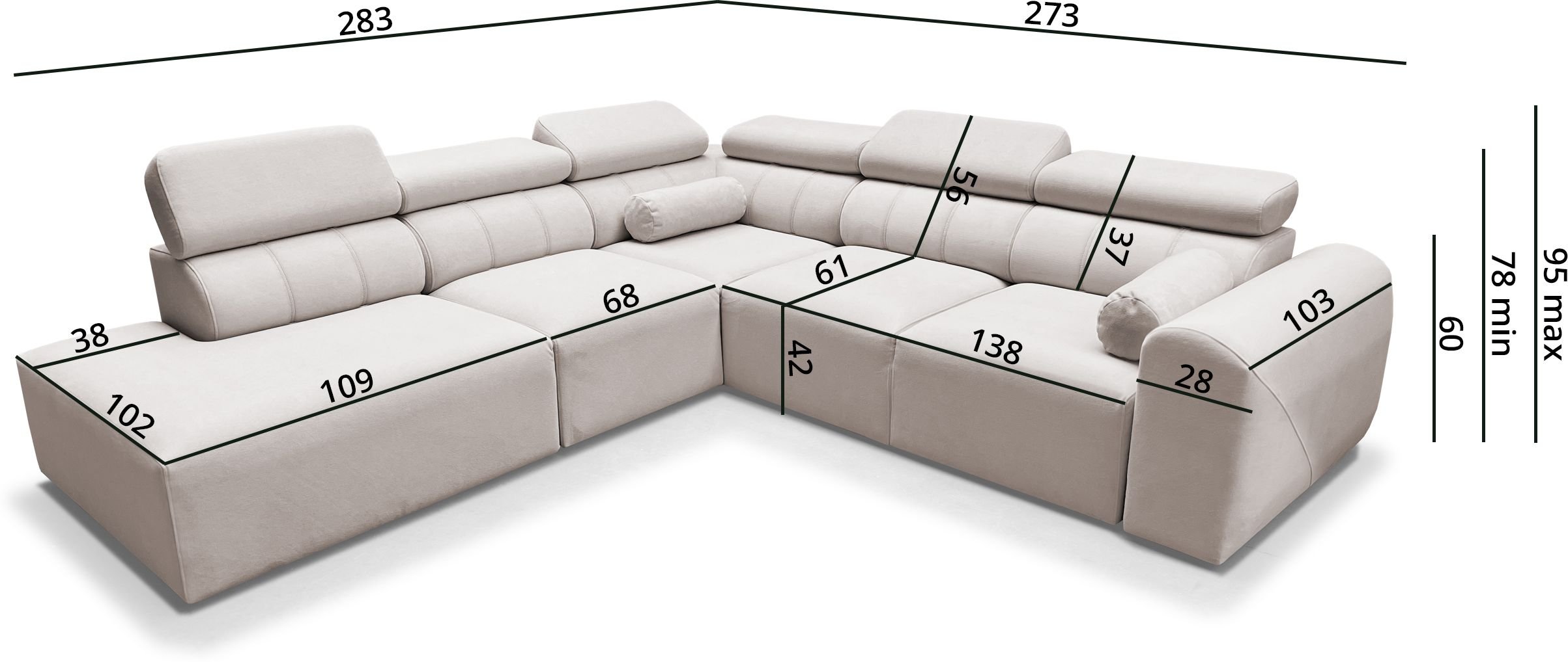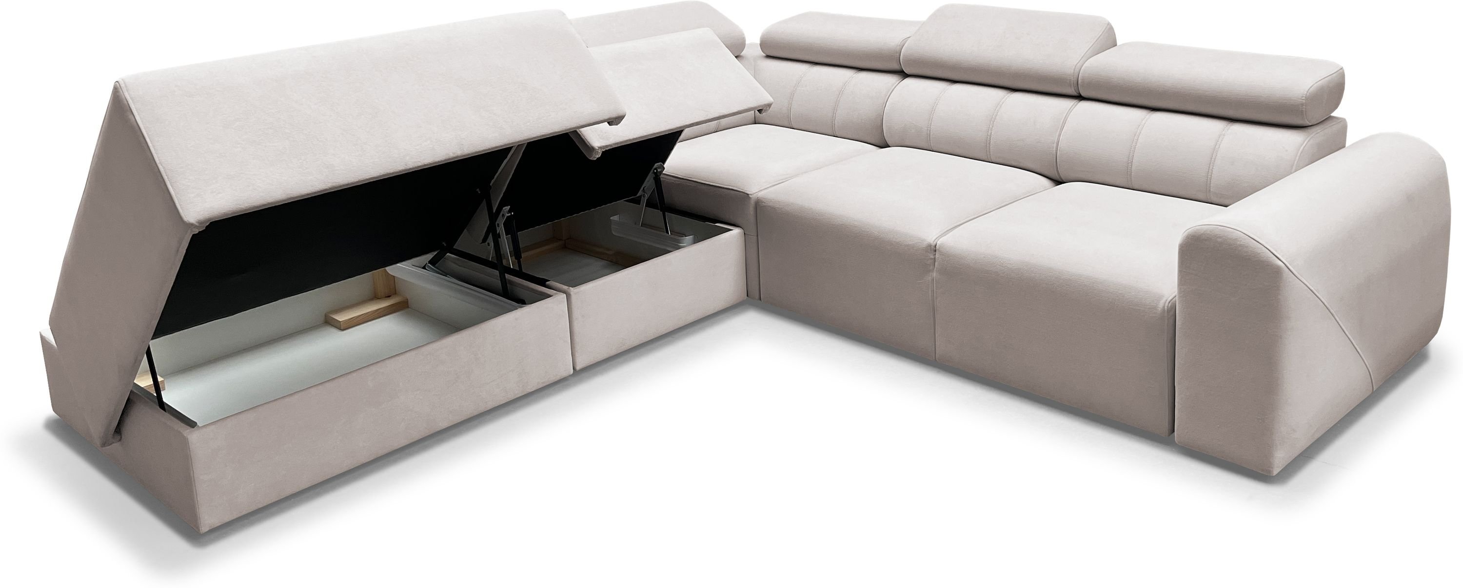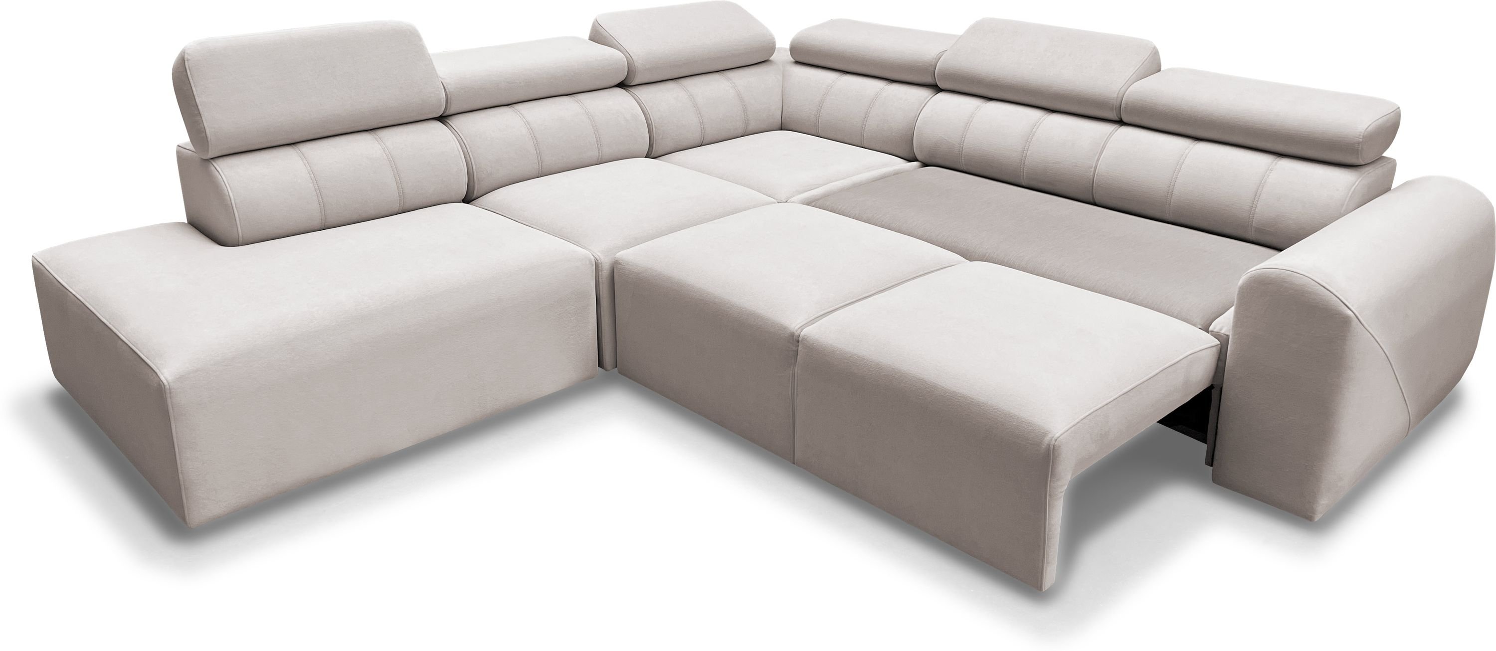 Kutna garnitura Volare IX idealno je rješenje za suvremene domove, gdje je važno ravnoteža između estetike i funkcionalnosti. Njezin izgled upotpunjuju podesivi nasloni za glavu, koji omogućuju dodatnu udobnost pri gledanju televizije ili čitanju. Zbog promišljene konstrukcije i kvalitetnih materijala, ovo je komad namještaja koji će služiti dugi niz godina.