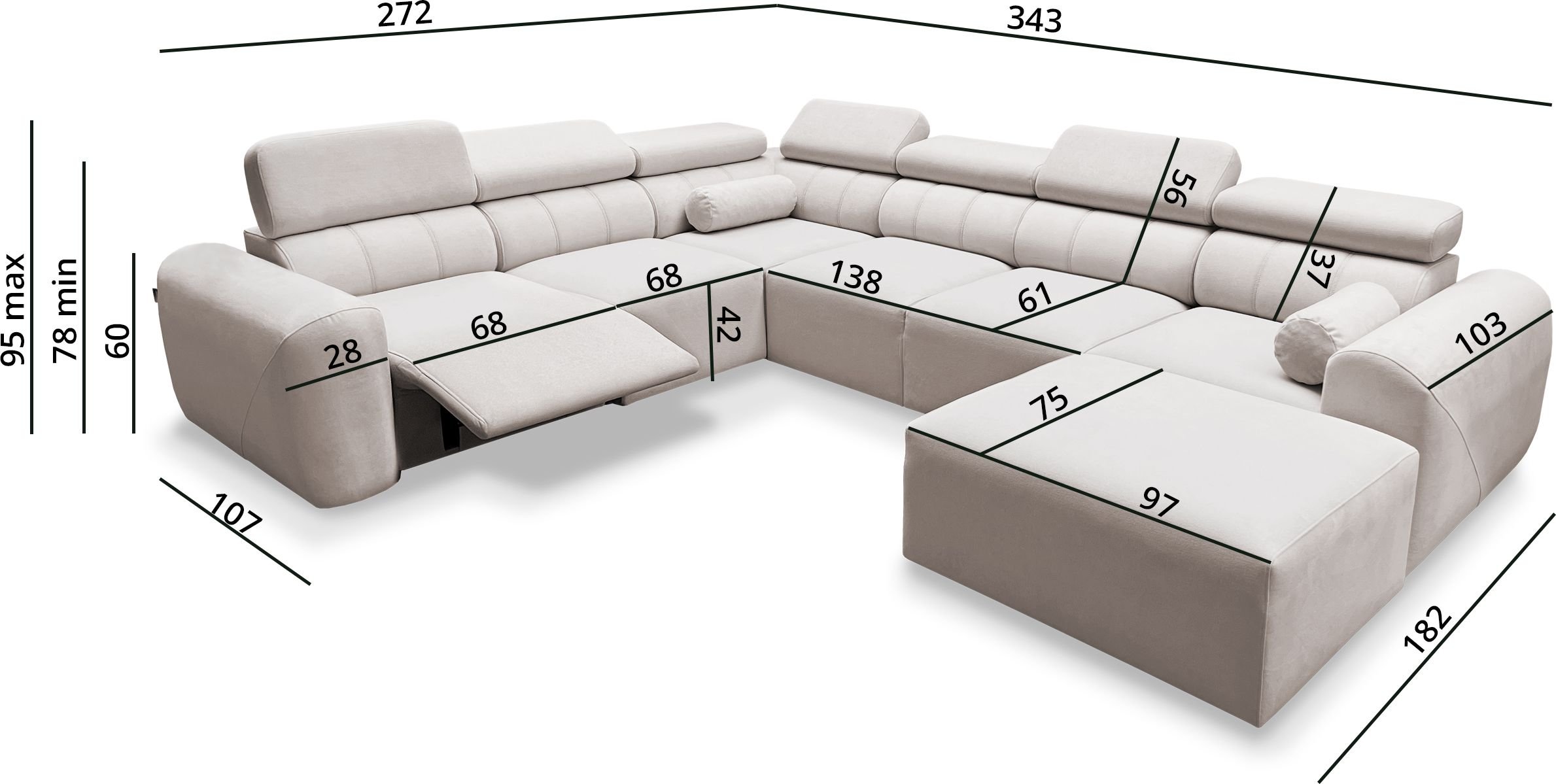 Za udobnost pri sjedenju brine opružna jezgra od pjene T-30 debljine 10 cm, potpomognuta valovitim oprugama, koje osiguravaju ravnomjernu raspodjelu težine i dugotrajnu elastičnost. Model je standardno opremljen s automatom tipa PUMA za razvlačenje površine za spavanje. Garnitura uključuje i šest podesivih naslona za glavu, koji omogućuju prilagodbu nagiba prema željama korisnika.