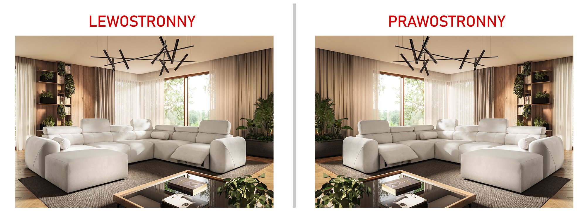 Važno je napomenuti da nije moguća izvedba u umjetnoj koži. Model je dostupan u lijevoj ili desnoj izvedbi, što je potrebno odrediti prilikom narudžbe – strana se određuje kada stojite okrenuti prema garnituri.