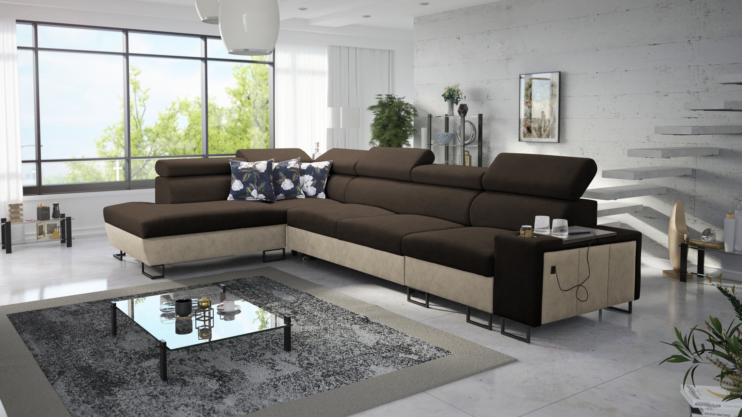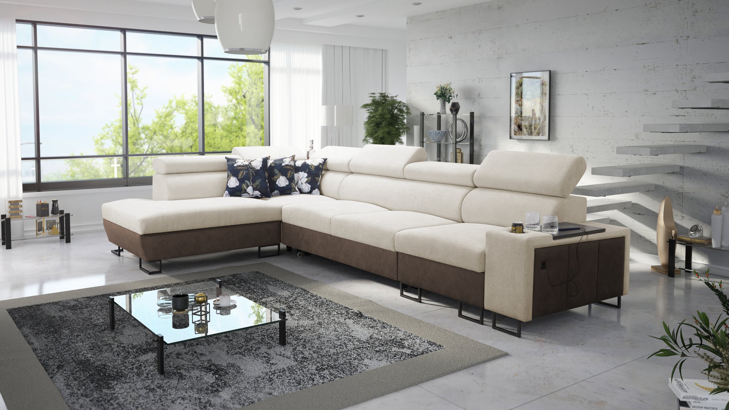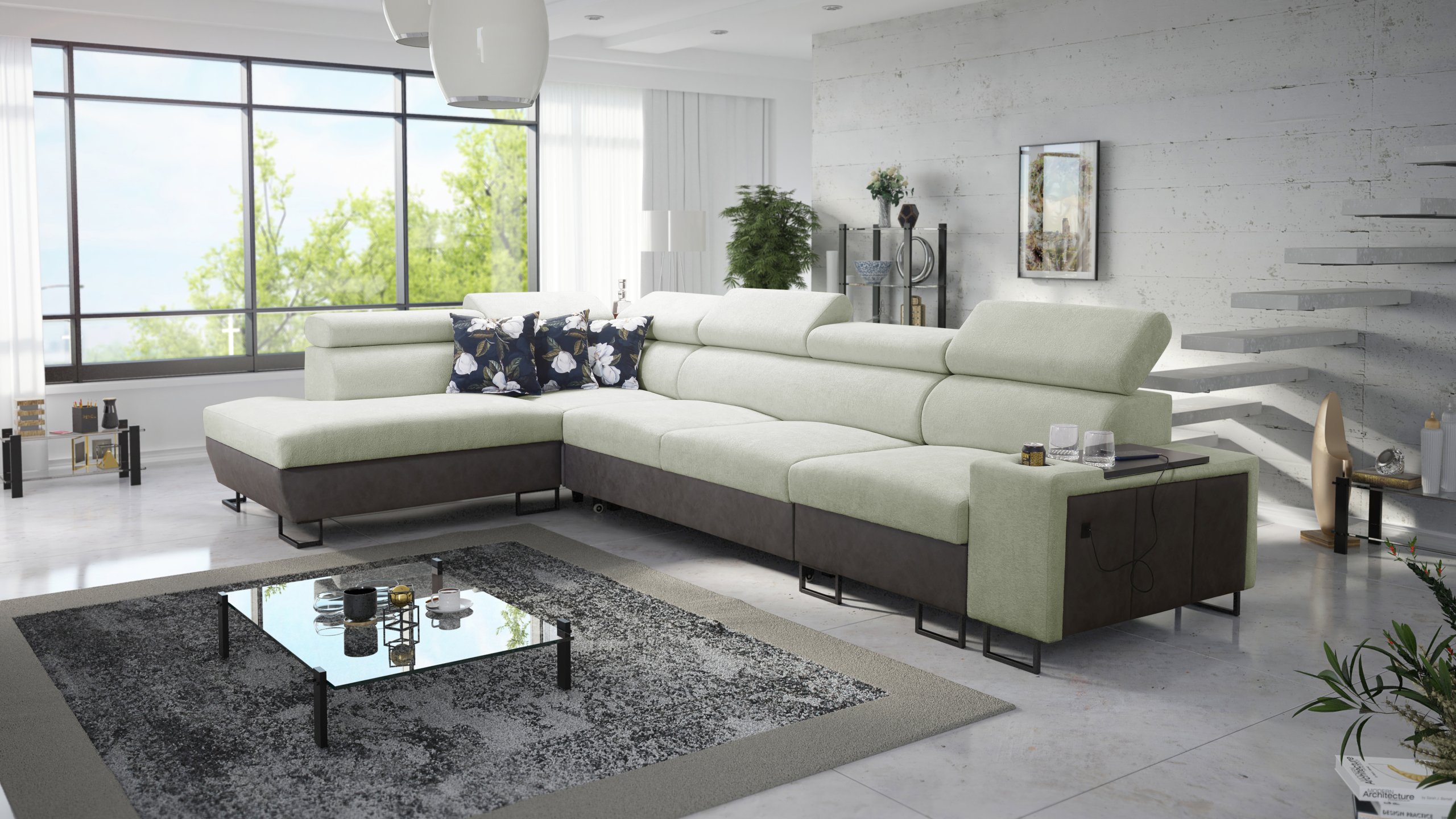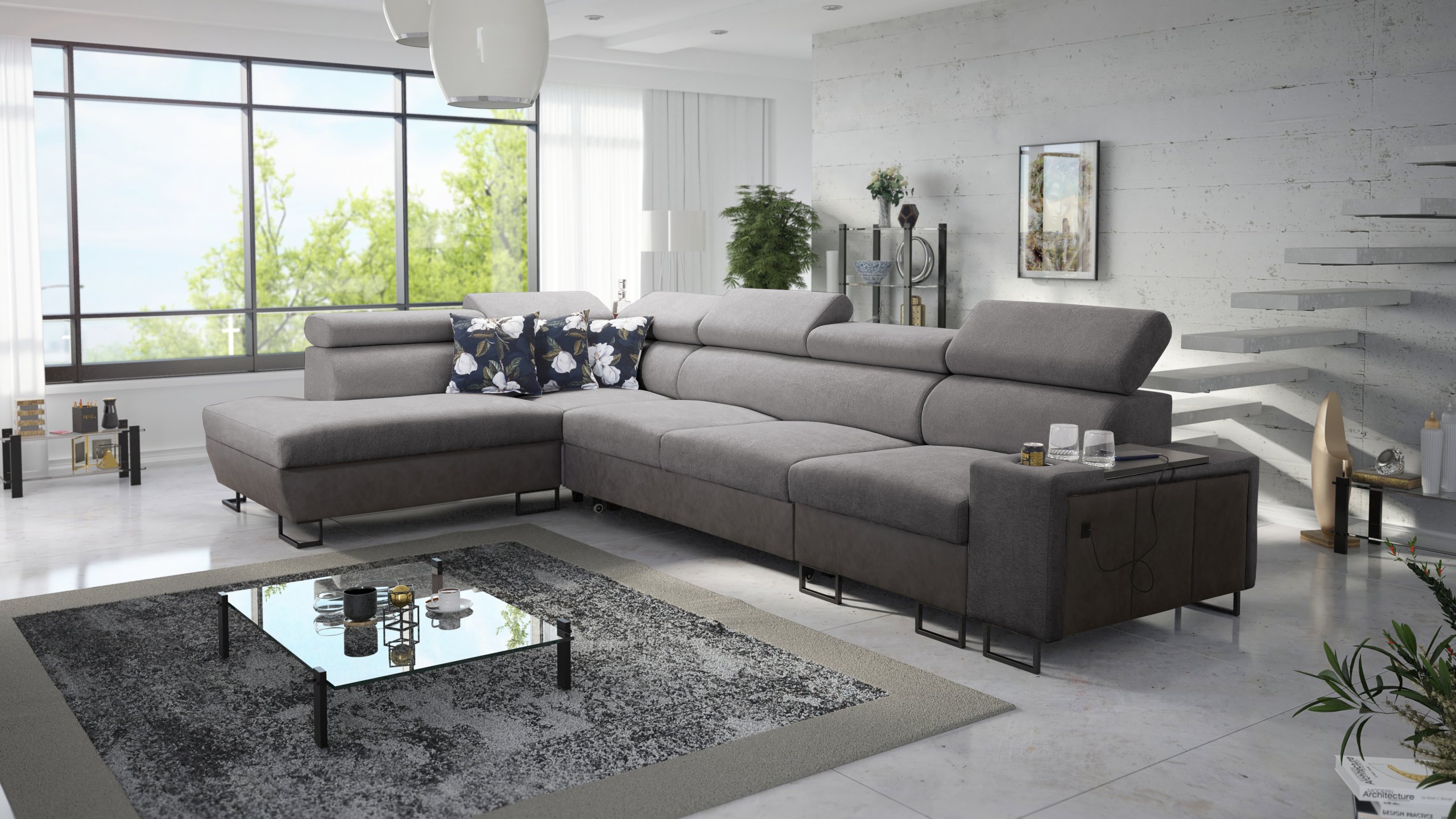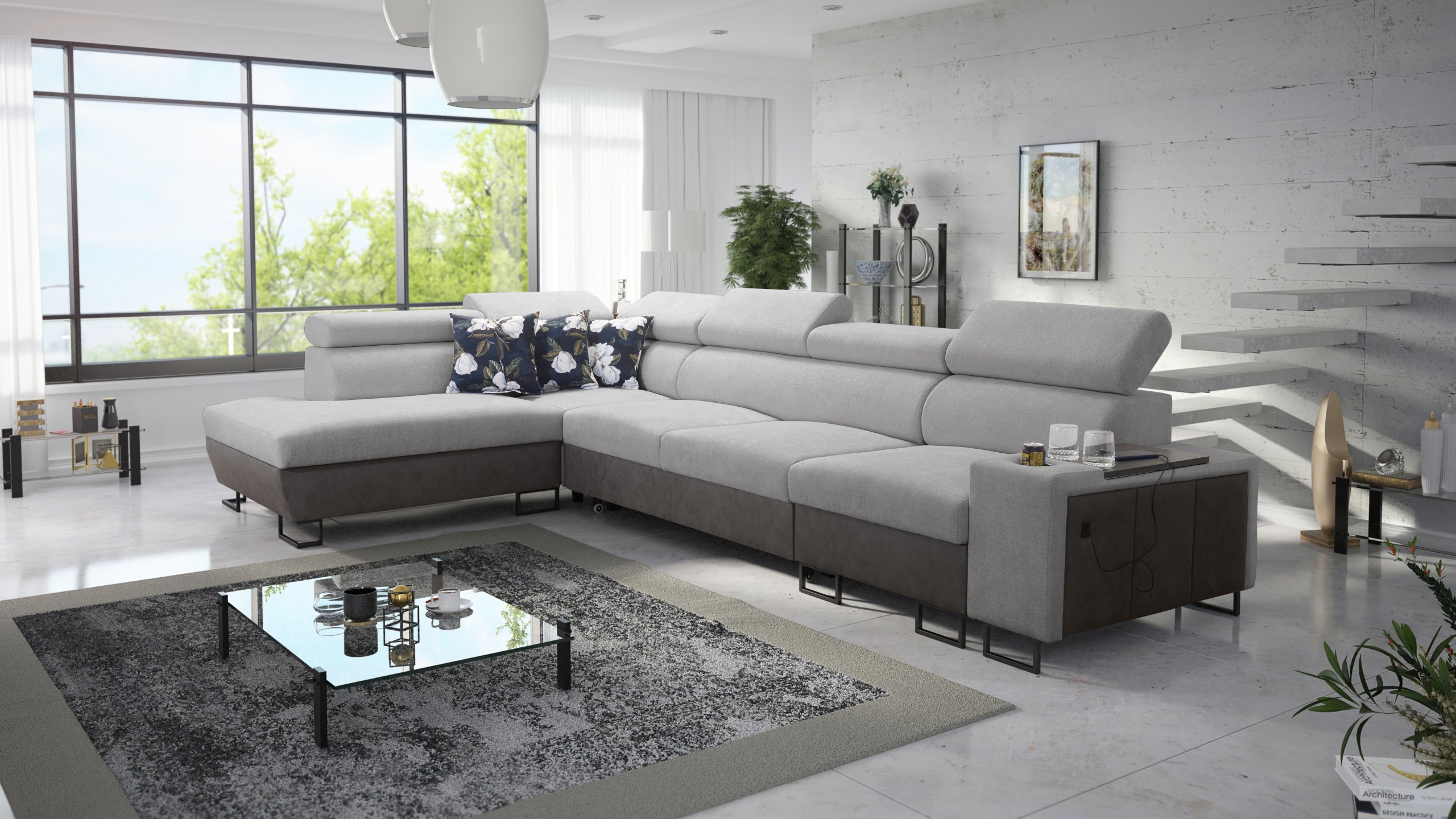 Kutna sjedeća garnitura Melody XI Mini marke Brattex kvalitetno je izrađen komad namještaja koji spaja moderan dizajn, promišljene funkcionalnosti i mogućnost individualne prilagodbe. Zahvaljujući upotrebi izdržljivih materijala, udobnih pjena i pouzdanog mehanizma Delfin, prikladna je i za svakodnevnu upotrebu i za povremeno spavanje. S dodacima poput bara, USB priključka, podesivih naslona za glavu i prostranih ladica, nudi sve što vam je potrebno za savršenu udobnost u vašem domu.