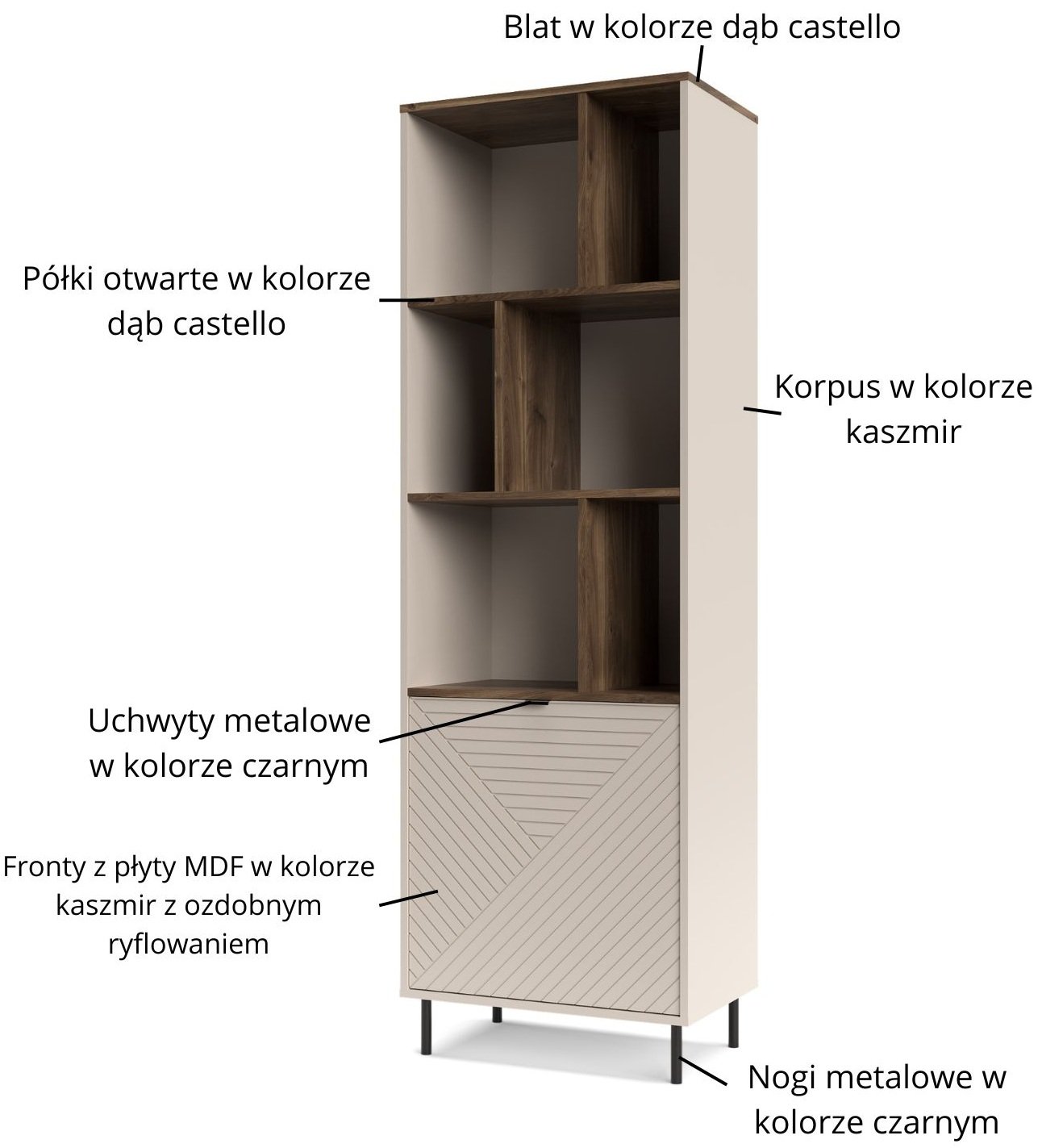 Regal Evo je više od običnog komada namještaja; to je pravo remek-djelo dizajna koje spaja funkcionalnost, eleganciju i trajnost u jednom proizvodu. Svojim dimenzijama 63,4x40x194 cm predstavlja idealno rješenje za svaki dom koji cijeni urednost i estetiku. Ovaj jedinstveni regal, izrađen od kvalitetne iverice, nudi elegantnu kombinaciju boja kašmira i castello hrasta, koja se savršeno uklapa u različite stilove unutarnjeg uređenja.