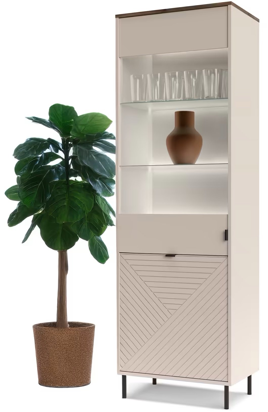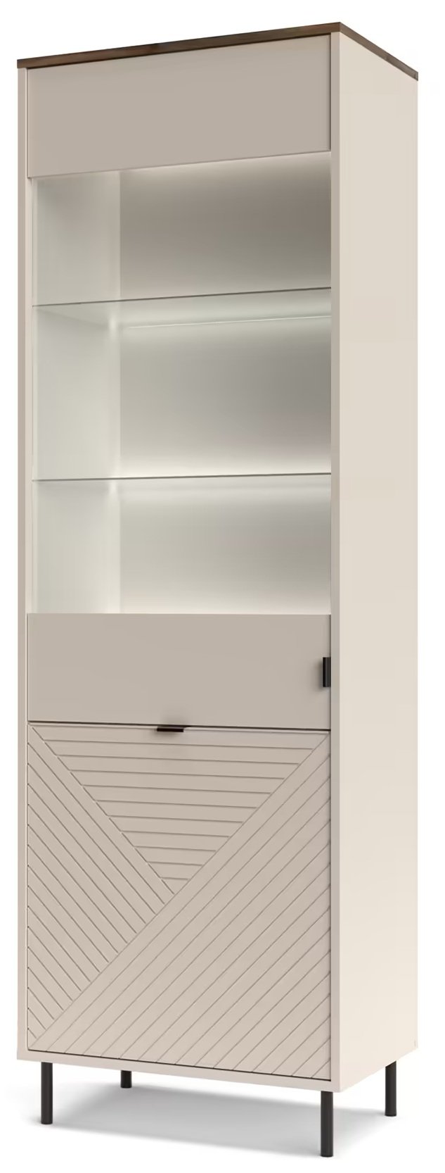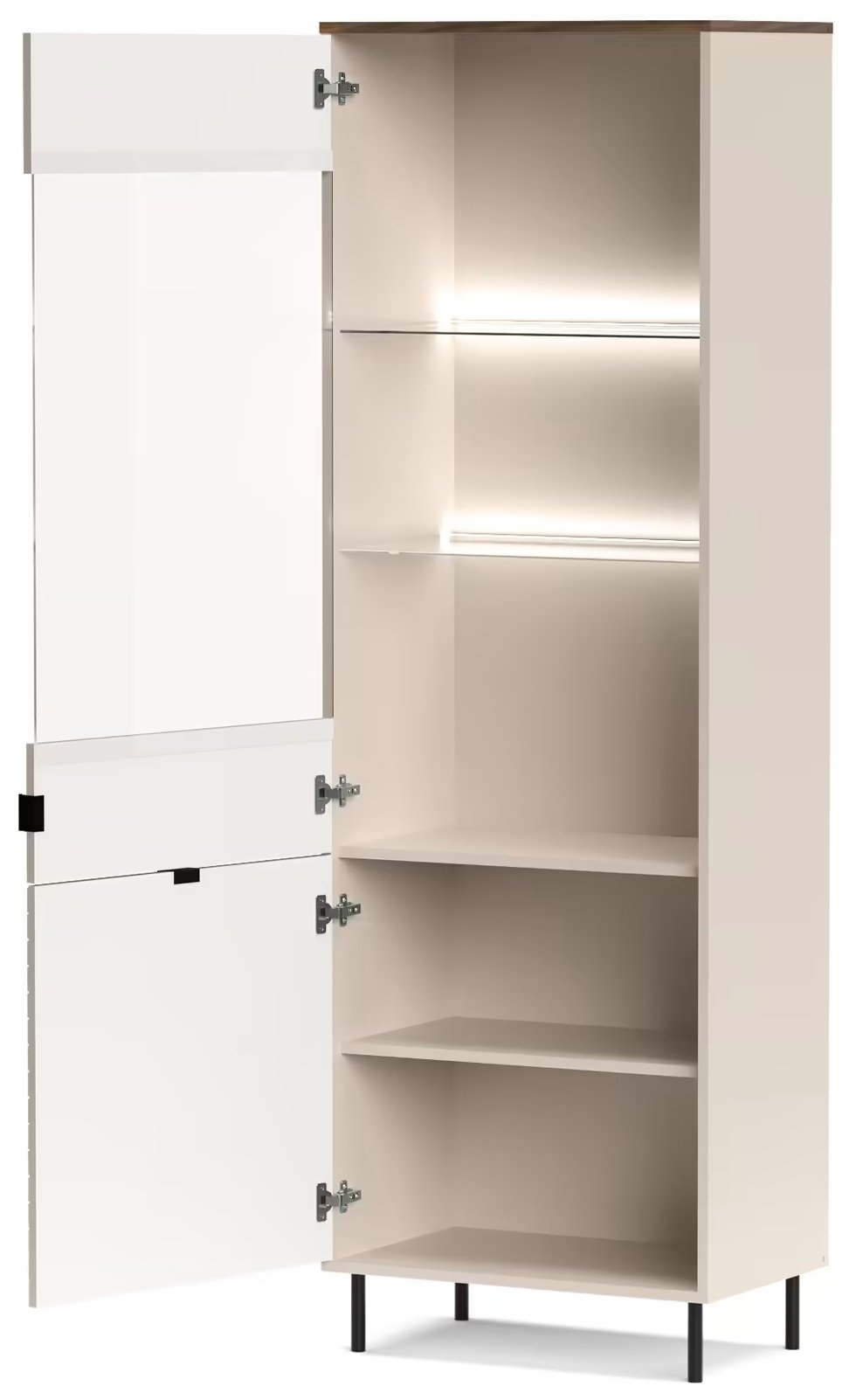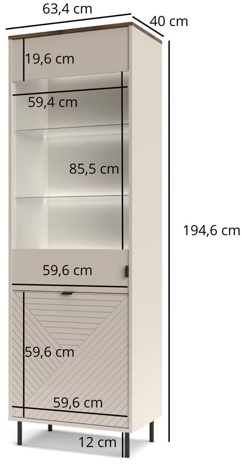 Visoka vitrina Evo nije samo komad namještaja, već i izraz vašeg osobnog stila. S njom ćete svom domu dodati dašak prestiža i istovremeno osigurati organiziranost koja vam je potrebna u svakodnevnom životu. Ne propustite priliku unaprijediti svoj životni prostor ovim iznimnim komadom namještaja koji spaja suvremene trendove s bezvremenskom elegancijom.