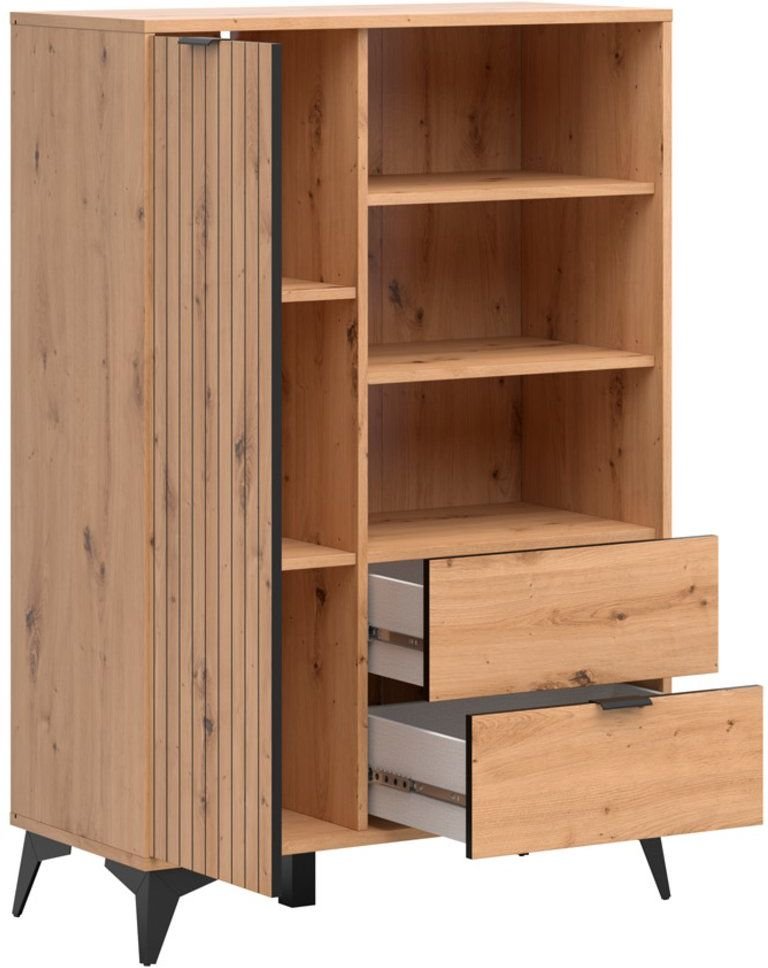 Ako tražite komad namještaja koji spaja praktičnost, izdržljivost i elegantan izgled, ovaj regal savršen je izbor za vas. Njegov ton boje u nijansi artisan hrasta divno se uklapa s različitim paletama boja i materijalima – od svijetlih zidova do tamnih podnih obloga. Istodobno, zahvaljujući svojoj kompaktnoj veličini, ne zauzima mnogo prostora, što ga čini idealnim i za manja stanovanja.