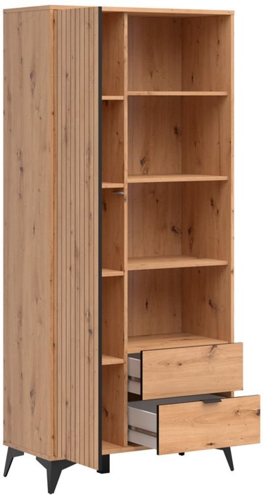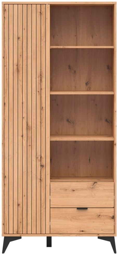 U suvremenom domu prostor je uvijek dragocjen, zato je važno odabrati namještaj koji spaja funkcionalnost, estetiku i kvalitetu. Visoki regal dimenzija 90x41x197 cm iz poznate tvornice Black Red White savršen je izbor za sve koji cijene promišljen dizajn i bezvremensku eleganciju. Izrađen je od izdržljive iverice i obložen toplom, prirodnom bojom artisan hrasta, koja prostoru unosi osjećaj doma i udobnosti. Ovaj regal nije samo praktičan komad namještaja, već i estetski dodatak koji se harmonično uklapa u različite stilove interijera – od modernog do klasičnog.