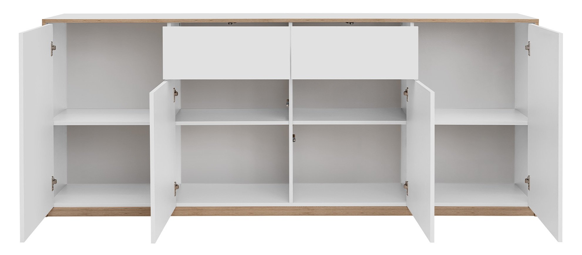 Komoda 4d2s Complex savršeno se uklapa u različite prostore. U dnevnom boravku može služiti kao niska komoda za televizor, dekorativne predmete ili knjige. U spavaćoj sobi pretvara se u prostranu površinu za pohranu odjeće, posteljine ili dodataka. Zahvaljujući neutralnoj bijeloj boji i drvenom detalju, lijepo se slaže s različitim paletama boja zidova, podnih obloga i tekstila.