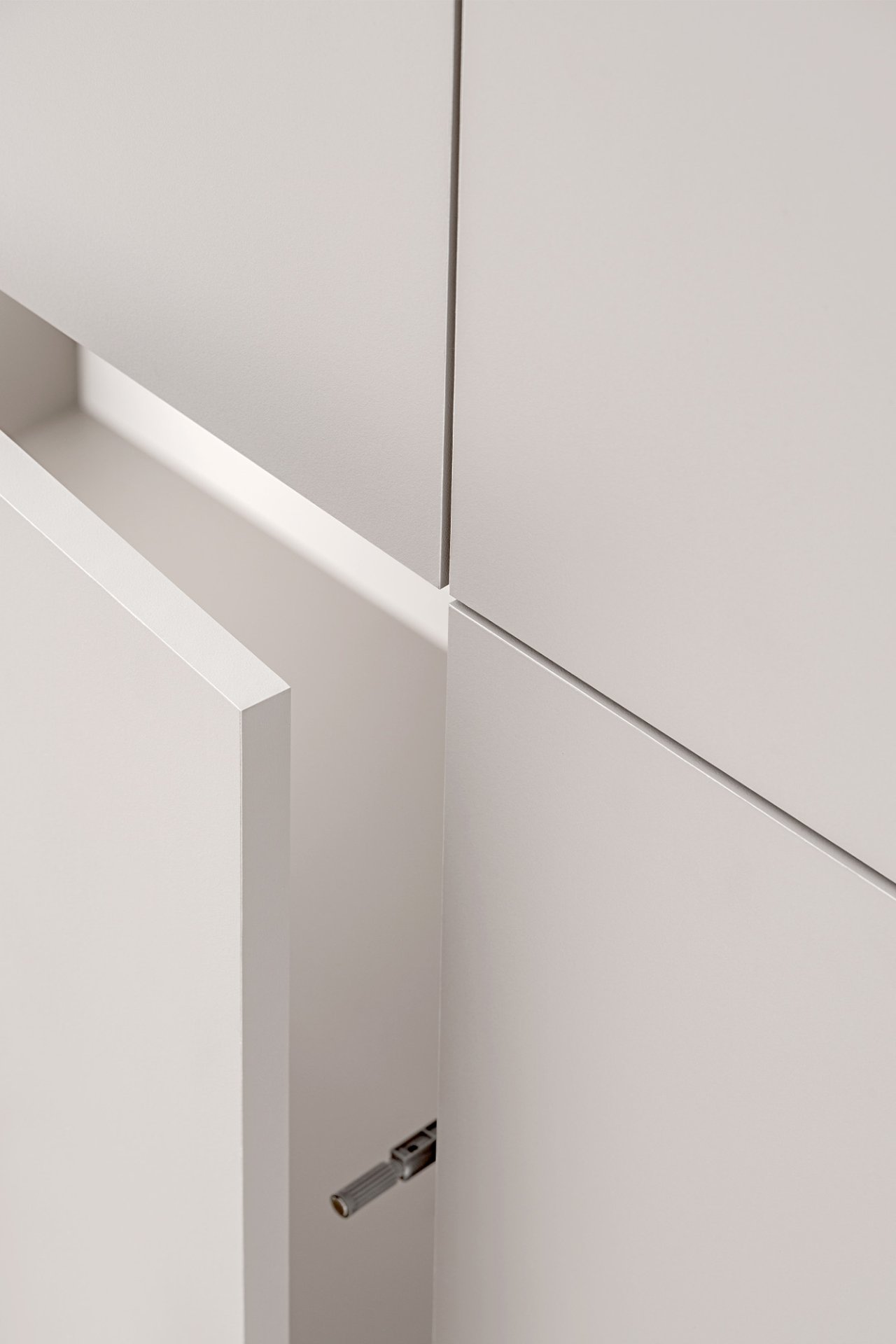 U središtu dizajna komode 4d2s Complex nalazi se minimalistički pristup. Površine su glatke i bez klasičnih ručki, jer se vrata i ladice otvaraju suvremenim sustavom na dodir. Takav mehanizam omogućuje jednostavnu upotrebu, a istodobno zadržava čist i elegantan izgled fronte. Bijela boja naglašava osjećaj prostranosti i svjetlosti, dok dekorativna letvica u izgledu drva dodaje toplinu i suptilnu prirodnu notu.