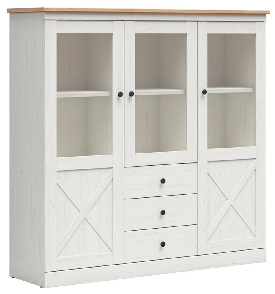 Trokrilna vitrina Frija je dovršena kombinacija funkcionalnosti i estetike, osmišljena za suvremene interijere, gdje su red i elegancija jednako važni. Korpus od iverice i staklene fronte tvore harmoničnu cjelinu u kombinaciji boja bijelog andersenovog bora i artisan hrasta. Precizno izrađena u tvornici Black Red White u Poljskoj, vitrina nudi pouzdanu kvalitetu i promišljene detalje koji nadopunjuju svaki prostor – od dnevnog boravka do blagovaonice.
