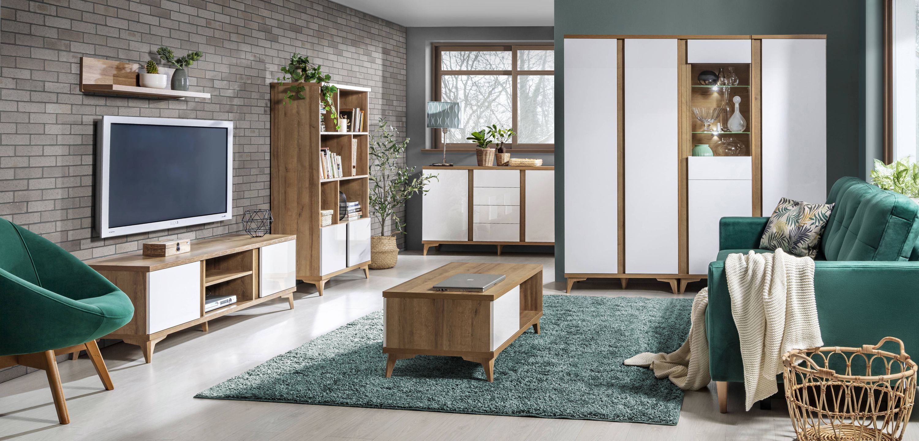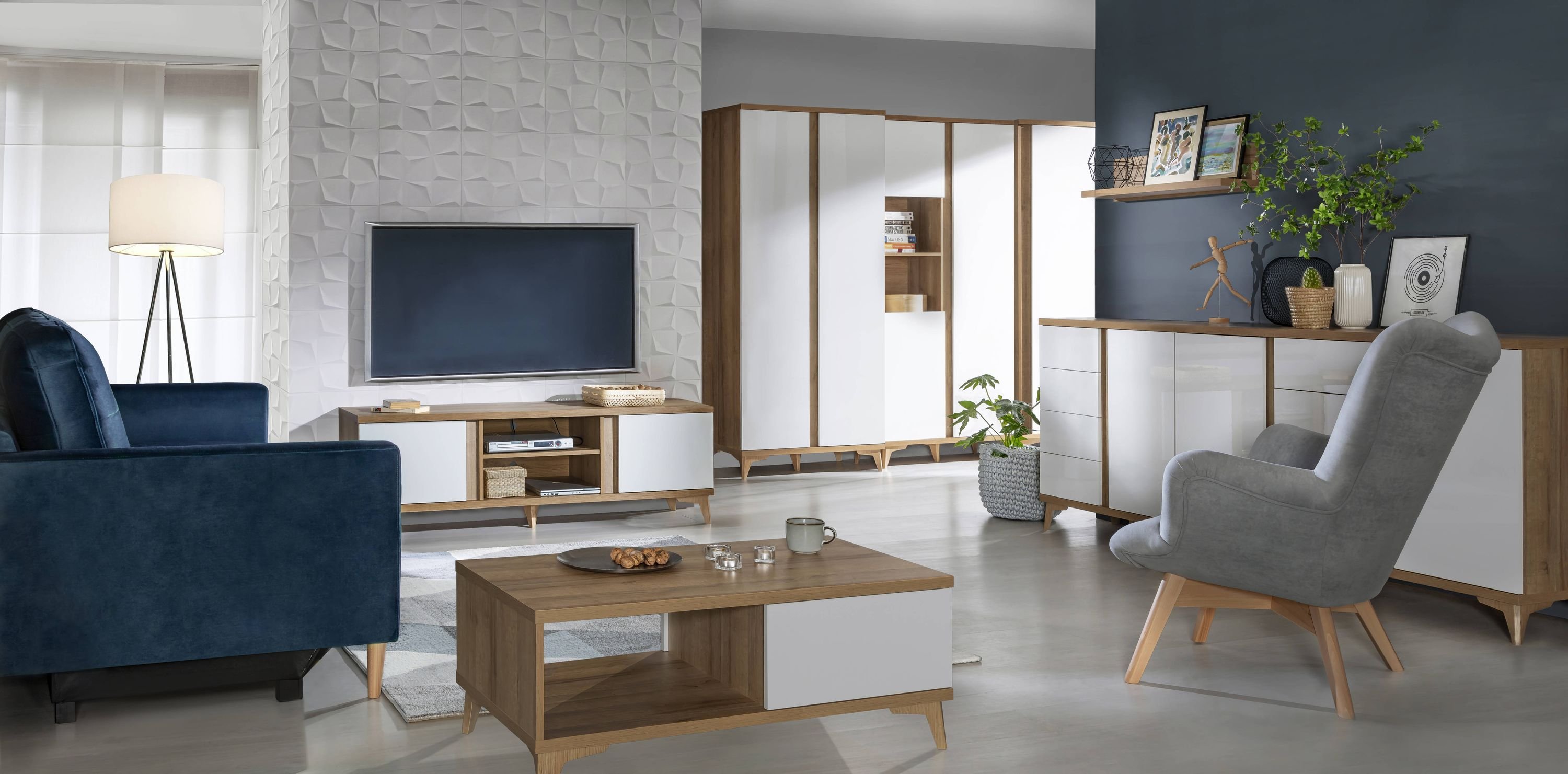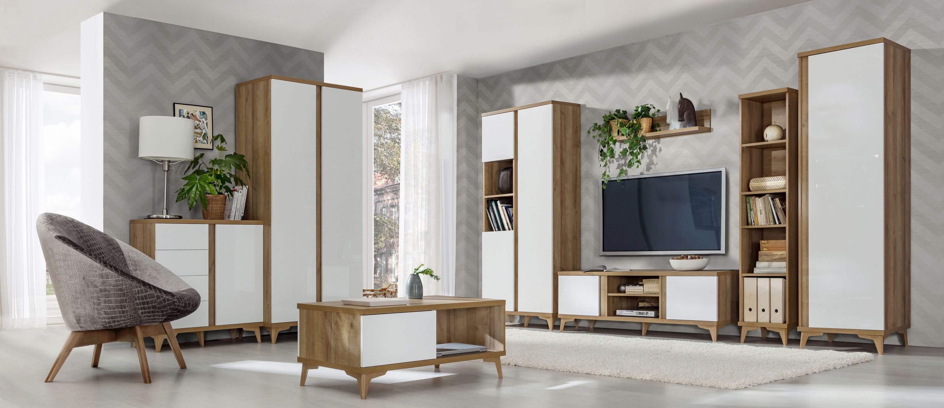 Pri opremanju dnevnog boravka često si postavljamo jedno od osnovnih pitanja, a to je želimo li svijetle ili tamne nijanse ili možda kombinaciju? Ako ste ljubitelj svijetlih i prirodnih nijansi, tada je dnevni boravak Oslo, poljskog proizvođača Dolmar, odličan odabir. Zahvaljujući prirodnoj boji hrasta rivabo dnevni boravak postaje ugodno okruženje u kojem ćete rado provoditi svoje vrijeme. Svijetle nijanse povećavaju prostor pa će dnevni boravak Oslo biti dobar izbor za manje dnevne prostore.