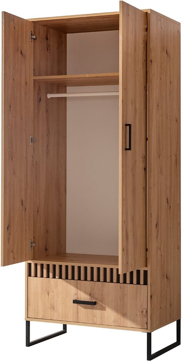 Garderobni ormar Lamelix 01 Domel odličan je izbor za sve koji traže kvalitetno, praktično i estetski dovršeno rješenje za pohranu. Pouzdana konstrukcija od iverice laminirane ploče, prirodna boja artisan hrasta i promišljene dimenzije osiguravaju da se ormar bez poteškoća uklopi u svaki dom. Izrađen u Poljskoj, s naglaskom na kvaliteti i funkcionalnosti, predstavlja harmoničnu ravnotežu između suvremenog dizajna i uporabne vrijednosti.