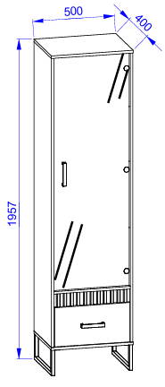 Zbog visine gotovo dva metra vitrina omogućuje optimalno iskorištavanje prostora po visini, a da pritom ne zauzima mnogo poda. Uska širina čini je prikladnom i za manje prostore ili za postavljanje uz druge elemente iz iste kolekcije. Unutarnji raspored polica omogućuje pregledno pohranjivanje dekorativnih predmeta, knjiga ili staklenine, ovisno o dizajnu pojedine sobe.