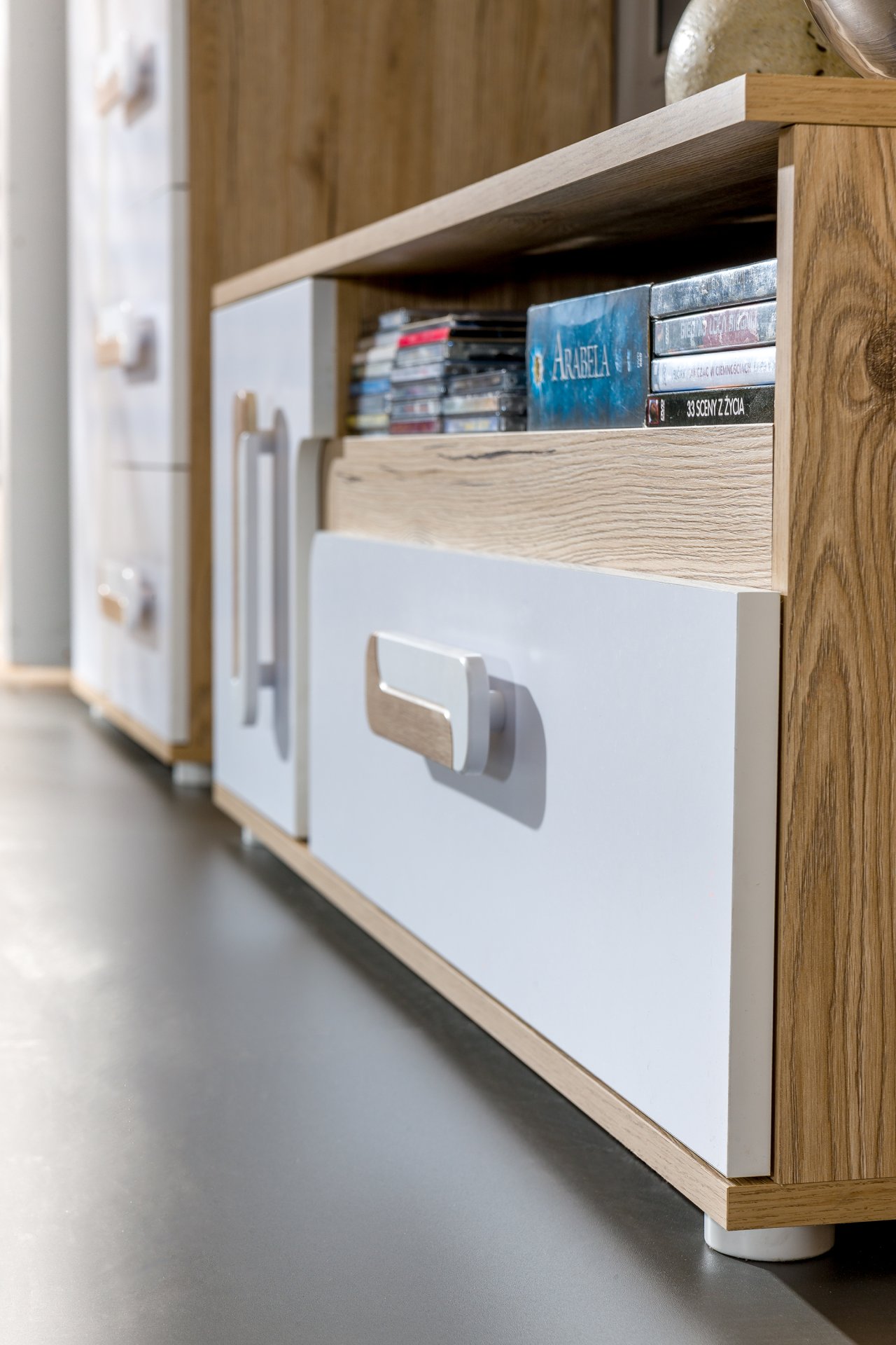 TV komoda Apetito 17 u svijetlom hrastu spaja jednostavnost, funkcionalnost i moderan dizajn, koji se bez poteškoća prilagođava različitim stilovima dnevnih soba. Izrađena je od kvalitetne laminirane iverice debljine 16 mm, koja osigurava čvrstoću i otpornost na svakodnevnu upotrebu. Kombinacija svijetlog hrasta i bijele boje stvara ugodan kontrast koji prostoru dodaje toplinu i osjećaj urednosti. Komoda je rezultat precizne izrade u tvornici Domel u Poljskoj, gdje se pažnja posvećuje i estetici i trajnosti materijala.