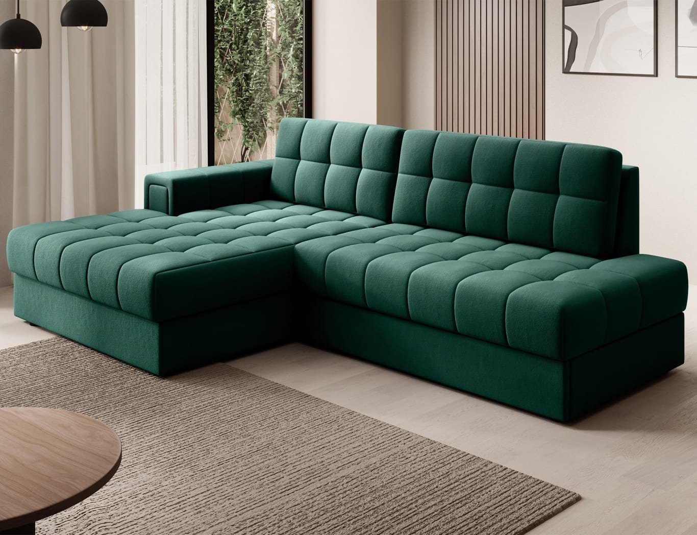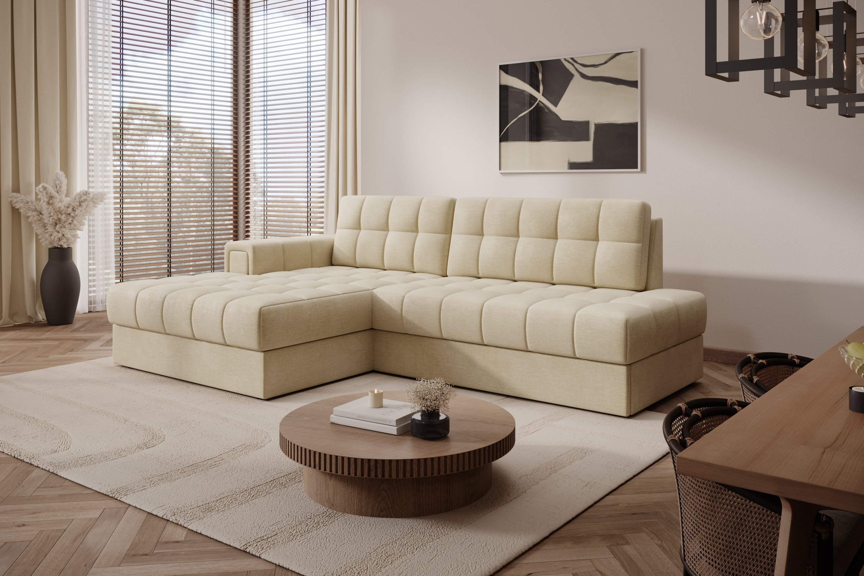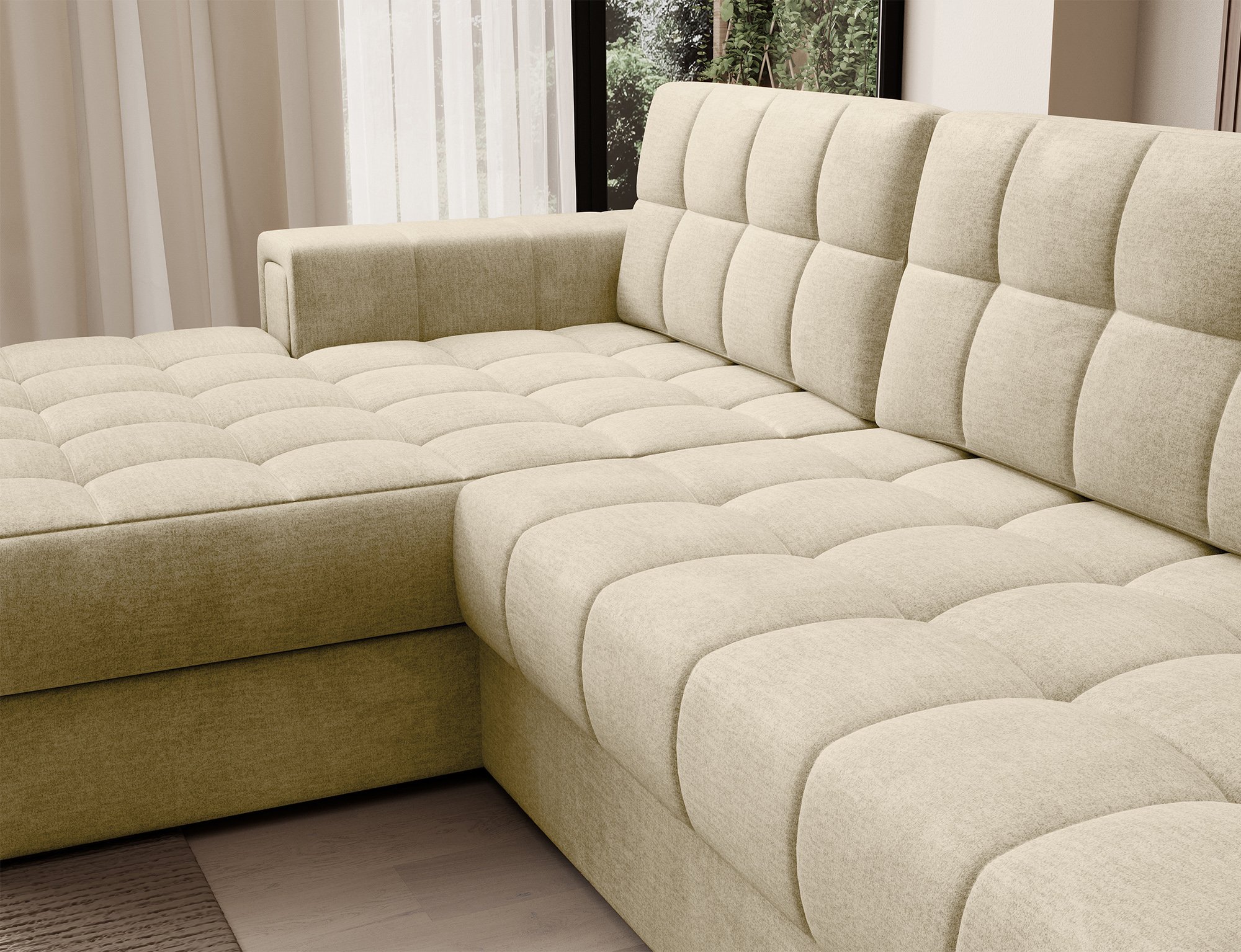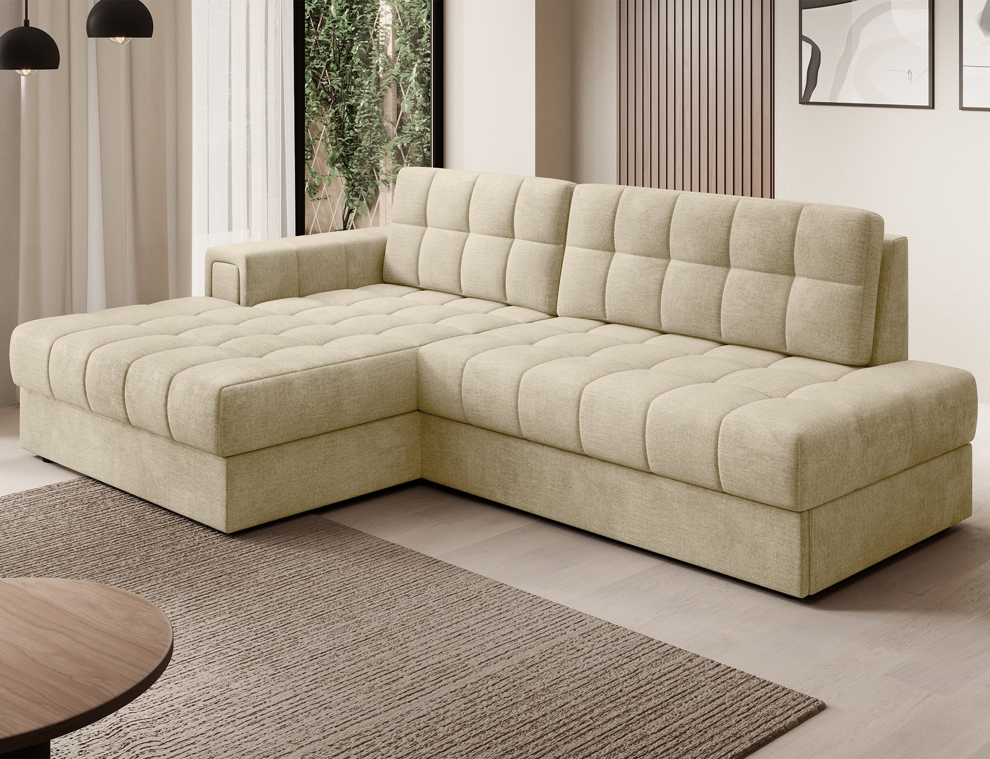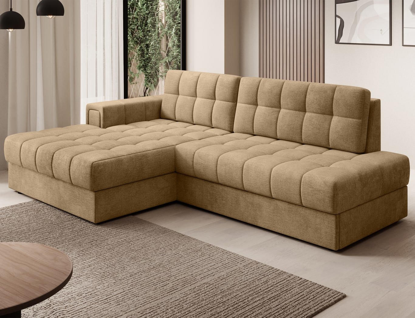 Ova moderna kutna garnitura savršen je izbor za sve koji žele spojiti estetiku i praktičnost. Njezine promišljene dimenzije omogućuju postavljanje i u manje dnevne boravke, a istodobno nudi dovoljno prostora za ugodno druženje. Proizvedena je u renomiranoj tvornici Eltap u Poljskoj, što dodatno potvrđuje kvalitetu i pouzdanost proizvoda.
