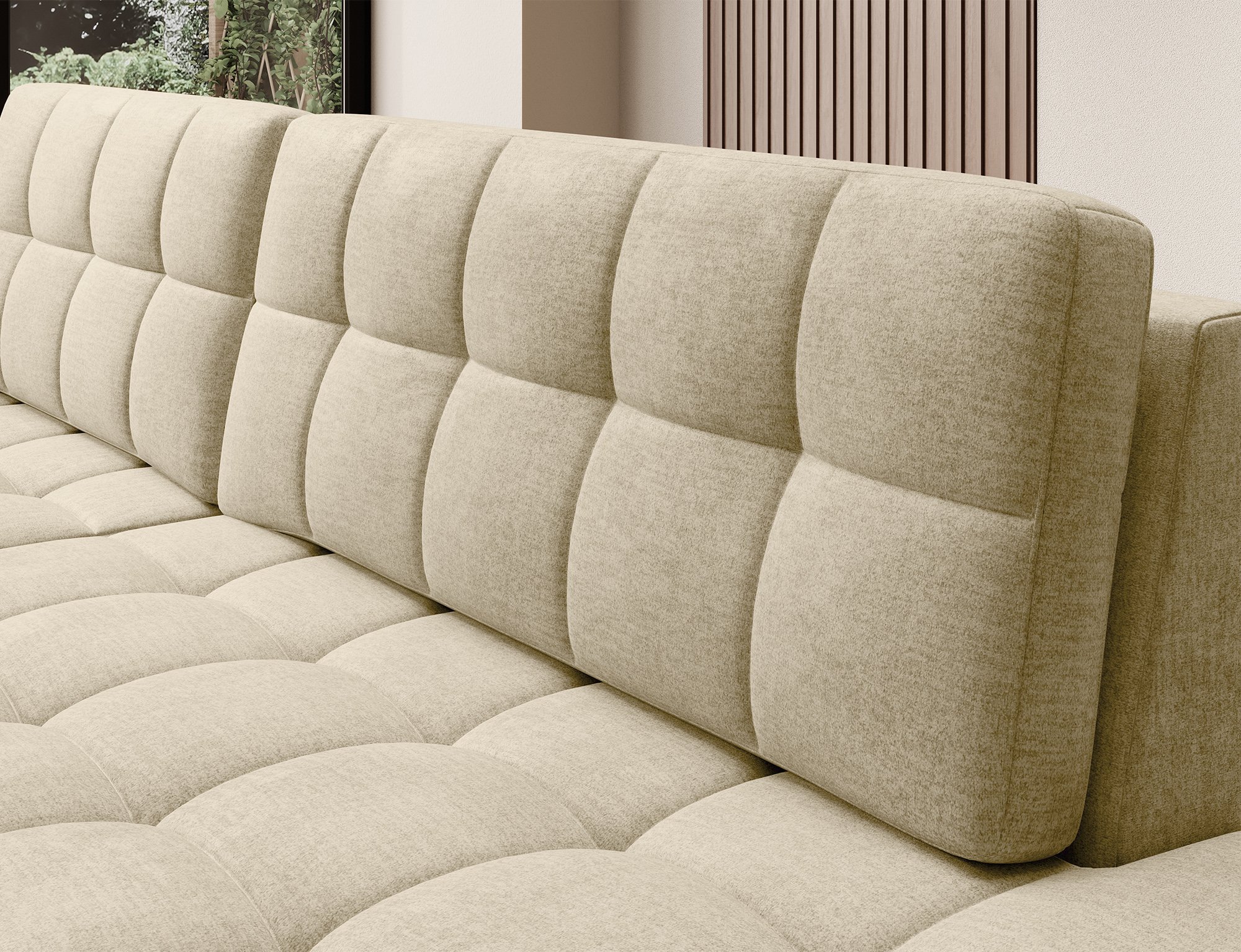 Bez obzira na to preuređujete li dnevni boravak ili opremate novi stan, ova će garnitura osigurati savršenu ravnotežu između udobnosti i estetike. Njezina tapecirana stražnja strana omogućuje postavljanje i u sredinu prostora, jer izgleda privlačno iz svih kutova. To znači da je možete koristiti kao središnji element u prostoru i stvoriti ugodno, funkcionalno i moderno životno okruženje.