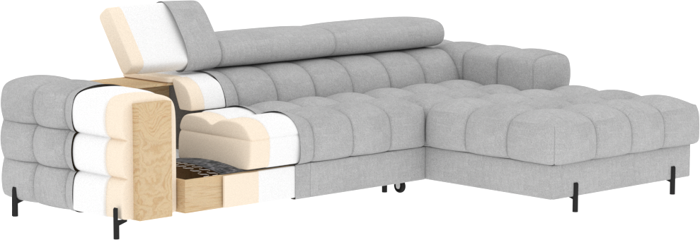 Za dodatnu funkcionalnost tu je i prostrana ladica za posteljinu, u koju možete spremiti deke, jastuke ili druge dodatke. Tako će vaš dnevni prostor uvijek biti uredan, bez nepotrebnog nereda.