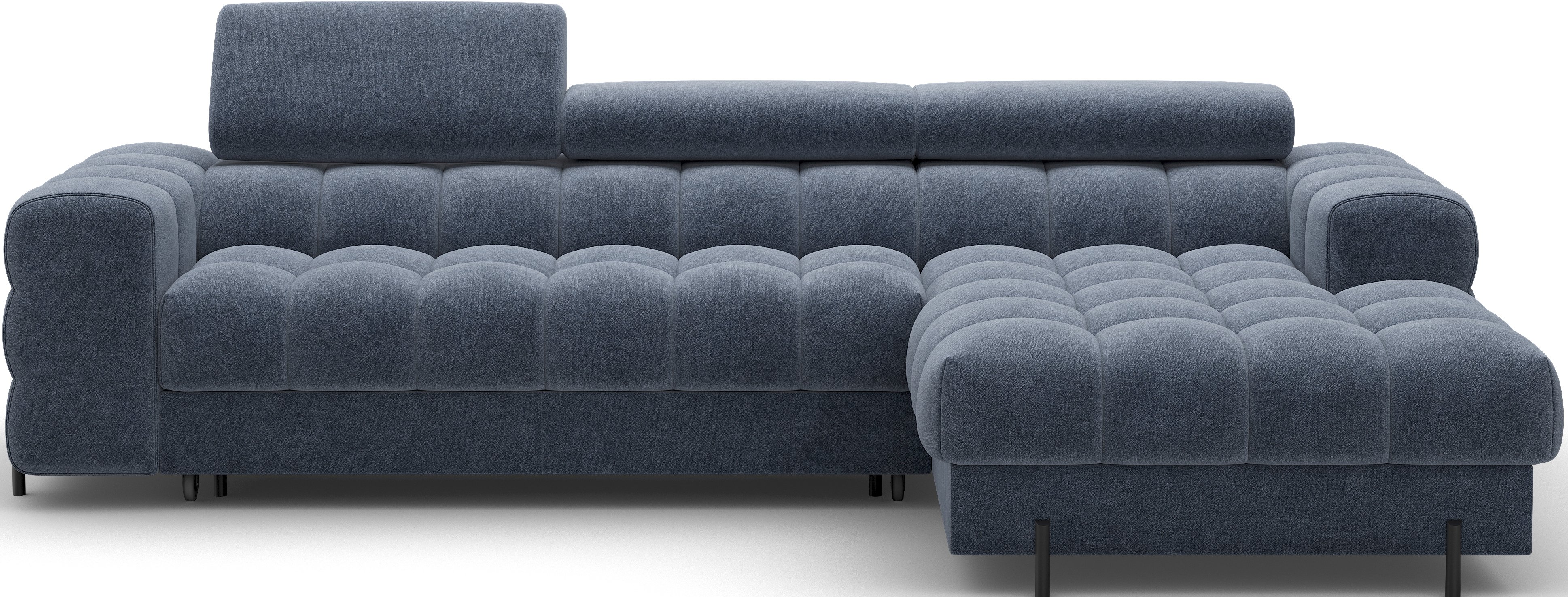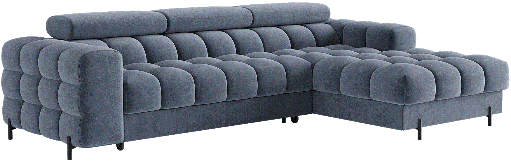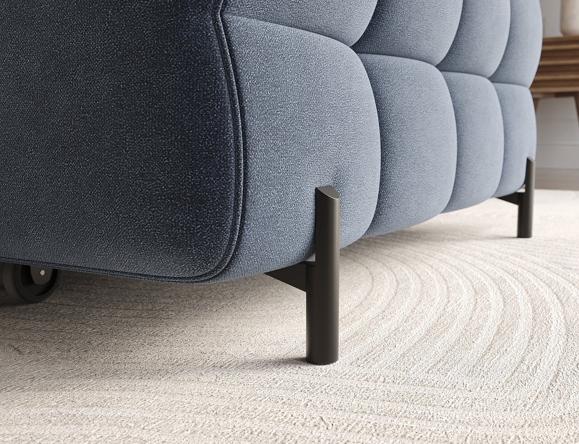 Suvremeni dizajn garniture Felro odražava se u čistim linijama i minimalističkom izgledu, koji se lako prilagođava različitim stilovima unutarnjeg uređenja. Metalne noge, obojene u elegantnu crnu boju, dodaju dašak moderne estetike, a istovremeno osiguravaju stabilnost i izdržljivost. Tapecirana stražnja strana omogućuje da garnituru postavite ne samo uz zid, već i u središte prostora, gdje će postati središnji element vaše dnevne sobe.