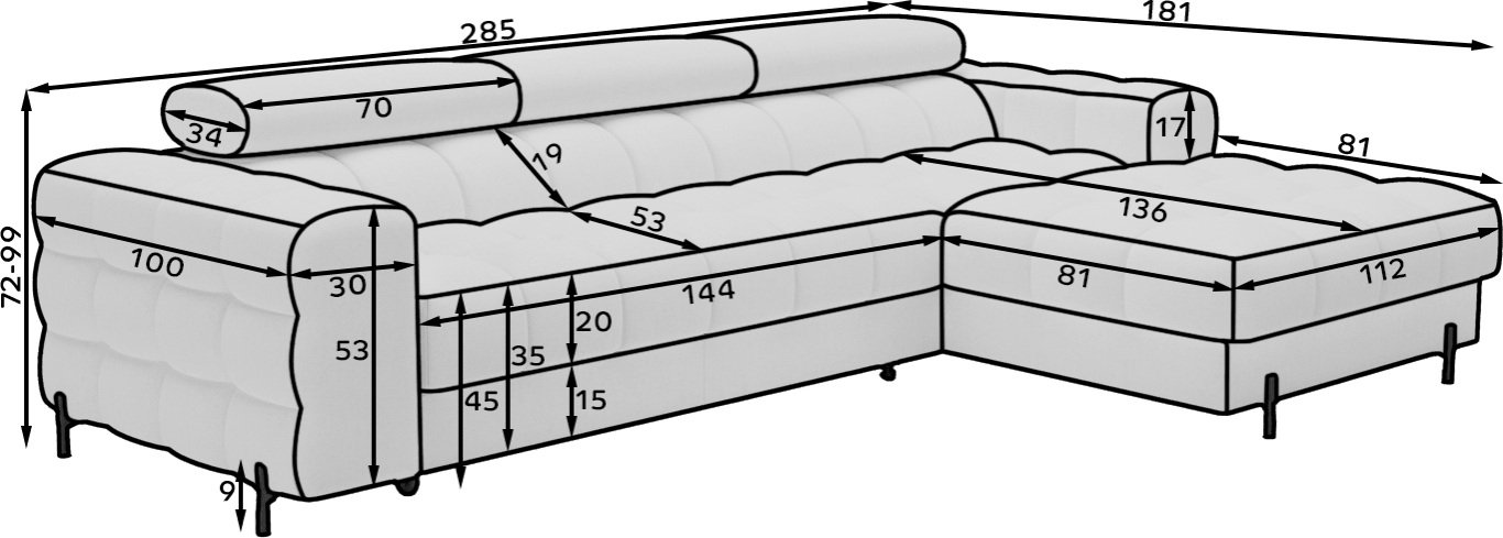 U dnevnoj sobi udobnost je uvijek na prvom mjestu, ali zašto je ne biste spojili i s bezvremenskom elegancijom i praktičnošću? Upravo to nudi kutna garnitura Felro, koja sa svojim promišljenim dizajnom i kvalitetnim materijalima predstavlja savršenu ravnotežu između funkcionalnosti i modernog dizajna. Svojim dimenzijama 285x181x93 cm nudi dovoljno prostora za cijelu obitelj, a zahvaljujući svom obliku optimalno iskorištava prostor u svakom interijeru.