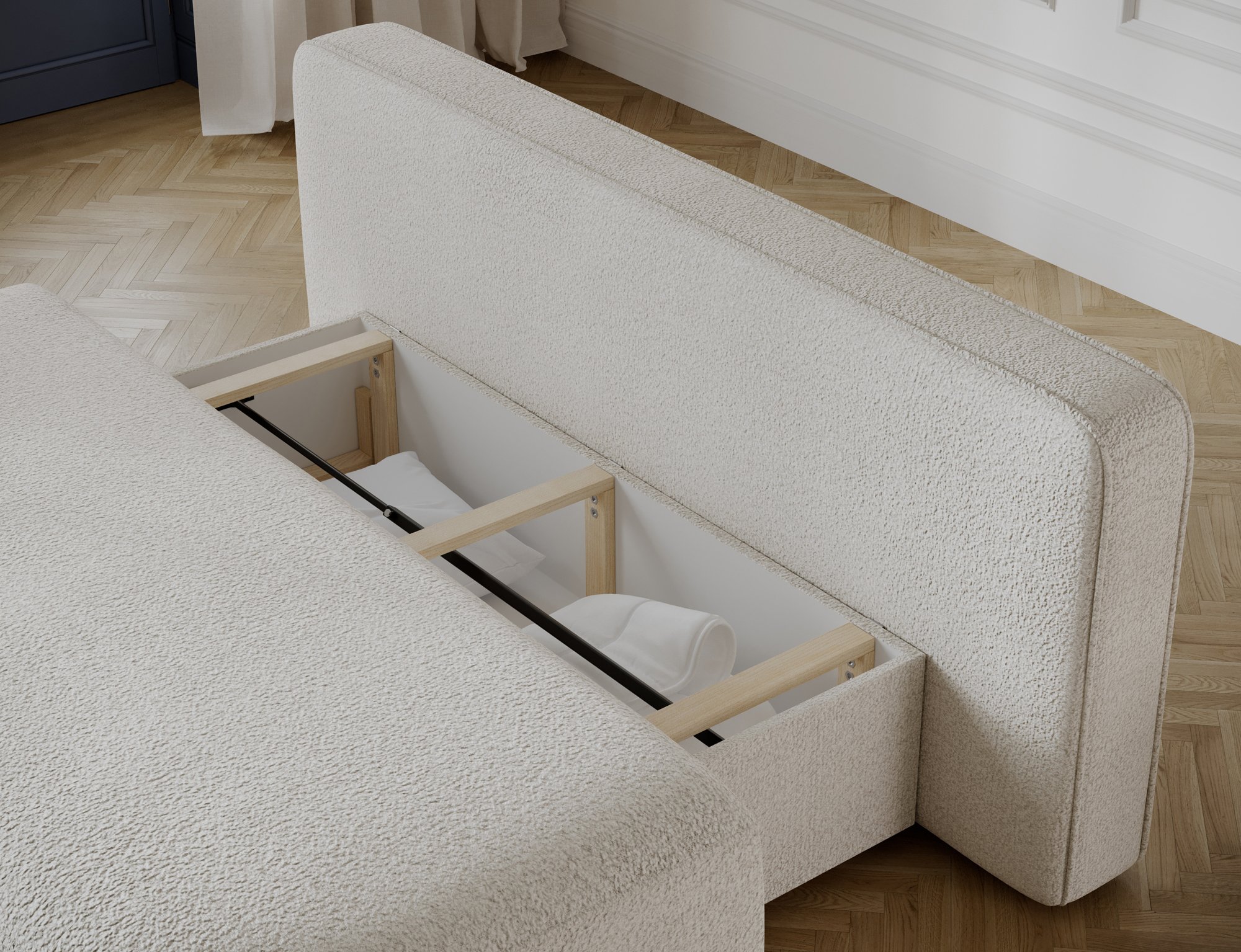 Ispod sjedala nalazi se ladica za posteljinu, idealna za spremanje deka, jastuka ili dodatnih navlaka. Ovaj detalj povećava iskoristivost dvosjeda jer pomaže u održavanju reda u dnevnom prostoru. Poklopac ladice lako se podiže i omogućuje brz pristup sadržaju. Takvo rješenje posebno je praktično u manjim stanovima ili garsonijerama, gdje je svaki centimetar prostora dragocjen.