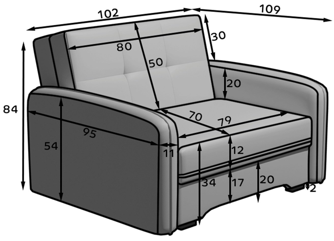 Ove mjere omogućuju udobno sjedenje danju i kvalitetan odmor noću. Zbog kompaktnih proporcija kauč se lako smješta i u manje prostore, gdje je svaki centimetar dragocjen. Iako model nema ladicu za posteljinu, nudi dovoljno prostora za udobno sjedenje i spavanje bez kompromisa u estetici.
