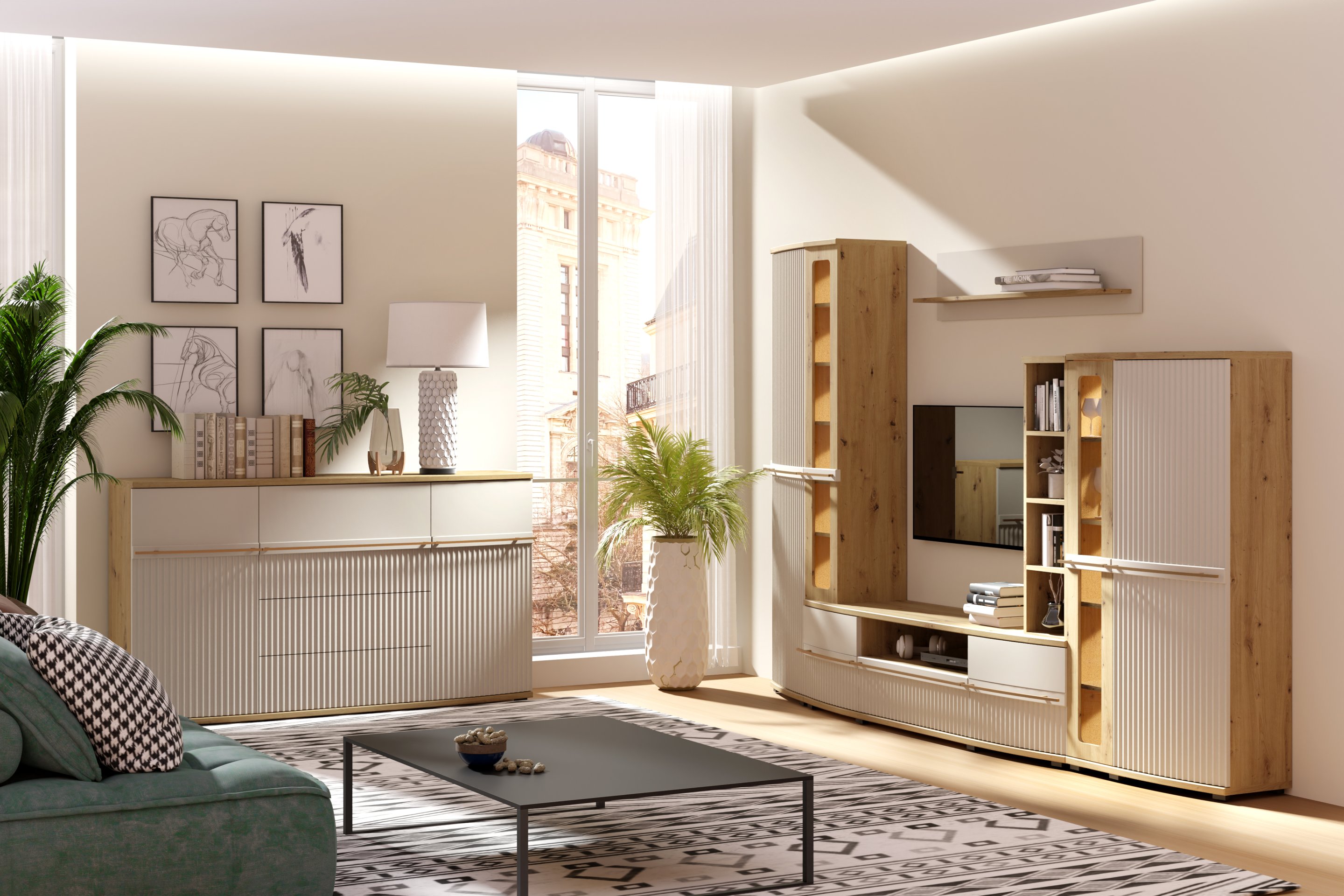Kolekcija Candy za dnevni boravak s LED rasvjetom je jedinstven komad namještaja za svaki dnevni boravak. Dostupna je u dvije boje - svijetloj i tamnoj varijanti.