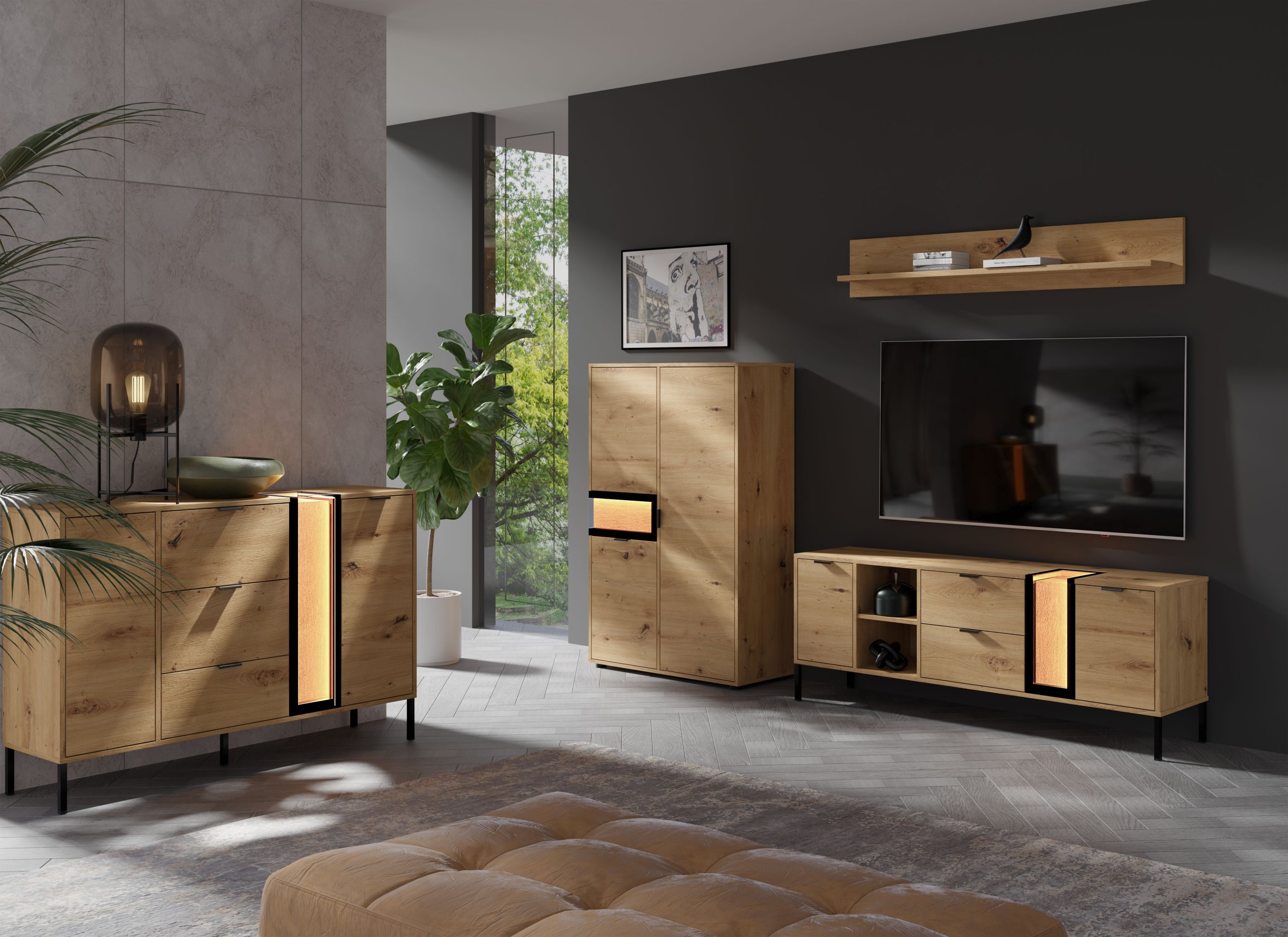 Vitrina je izrađena od visokokvalitetnog prirodnog drva, što osigurava dugotrajnu postojanost i čvrstoću. Boja artisan hrast unosi toplinu i prirodnu ljepotu u svaki prostor, a ujedno se harmonično uklapa u mnoge stilove interijera, od tradicionalnog do modernog. Staklene površine omogućuju da vaši dekorativni predmeti zasjaje u punoj ljepoti, dok rasvjeta, uključena u cijenu, naglašava detalje i stvara ugodnu atmosferu.