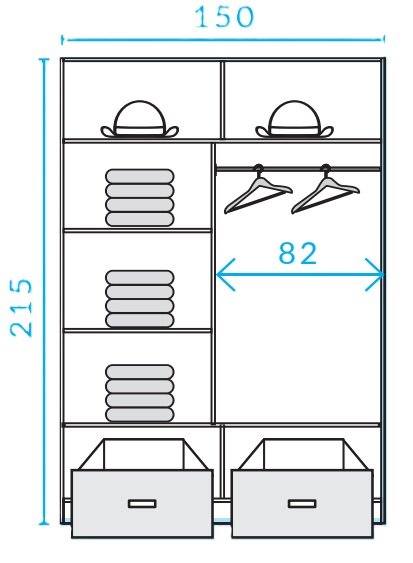 Elegantno i praktično rješenje za svaki dom, gdje je red na prvom mjestu, skriva se u garderobnom ormaru s kliznim vratima koji spaja moderan dizajn i funkcionalnost u jednom komadu namještaja. Svojim dimenzijama 150x60x215 cm nudi obilje prostora za pohranu odjeće, obuće i dodataka, a istovremeno se svojom jednostavnom i čistom formom savršeno uklapa u različite stilove unutarnjeg uređenja. Bijela boja dodaje svježinu i osjećaj prostranosti, stoga će ormar biti pravi izbor i za manja stanovanja i za veće spavaće sobe.