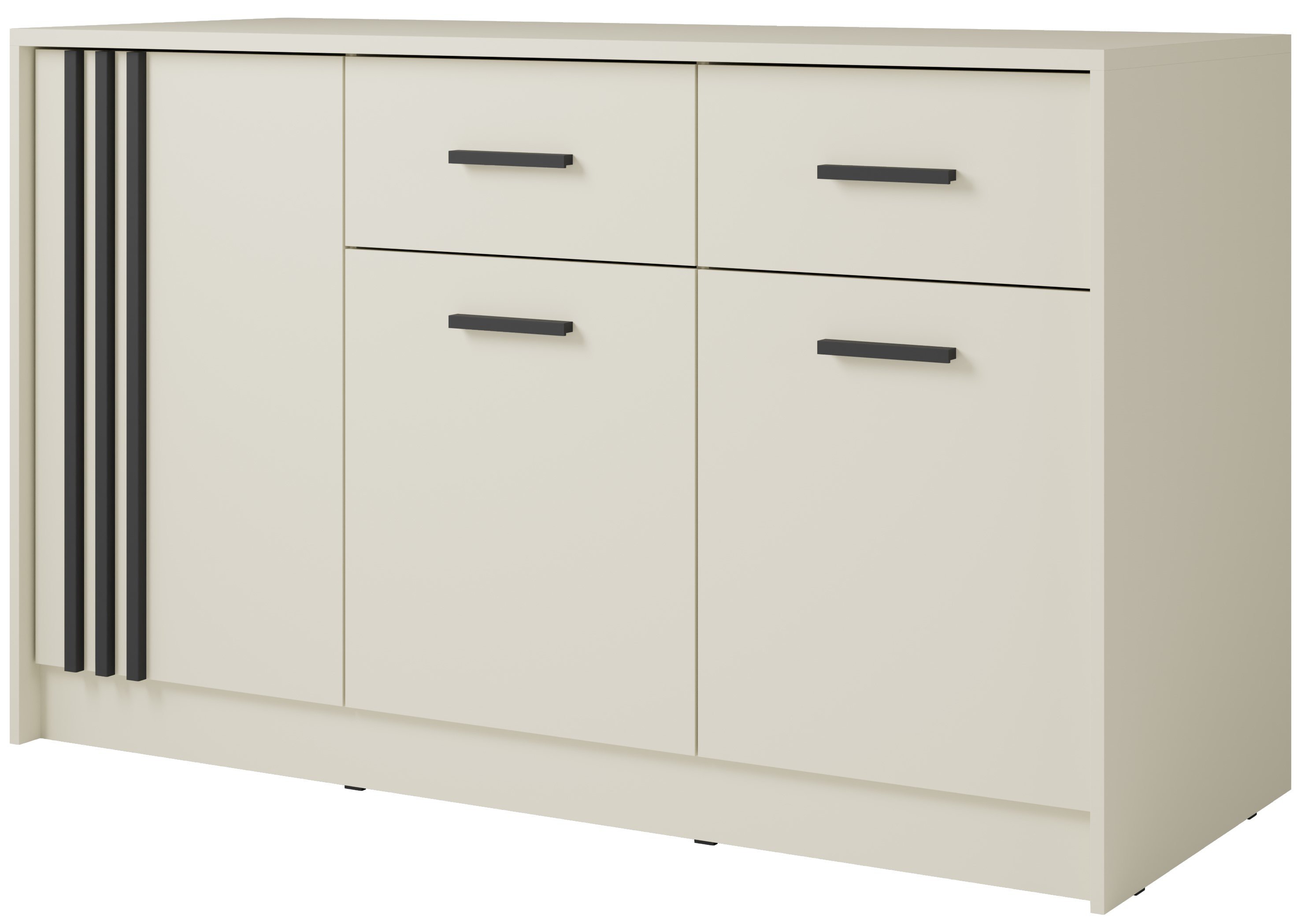 Elegantna komoda Canada CD-25 proizvođača Fadome spaja moderan dizajn, funkcionalnost i kvalitetnu europsku izradu. Svojom kombinacijom boja u nijansi kašmir te kontrastnim crnim ručkama unosi u prostor profinjen i istovremeno topao izgled, koji se odlično uklapa u različite unutarnje stilove. Komoda je izrađena od laminirane ploče i MDF materijala, što osigurava čvrstoću, stabilnost i jednostavno održavanje. Zahvaljujući promišljenom dizajnu i dimenzijama 150x42x94 cm nudi dovoljno prostora za pohranu, a da pritom ne zauzima previše mjesta u sobi.