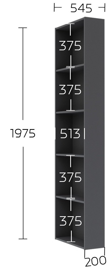 Uredite svoj dom sa suvremenom elegancijom koju donosi ovaj visok i uski regal u grafitno sivoj boji. Svojim minimalističkim, a istovremeno sofisticiranim izgledom, savršen je izbor za sve koji cijene funkcionalnost, kvalitetu i bezvremensku estetiku. Regal je izrađen od izdržljive laminirane ploče debljine 16 mm, što osigurava dug životni vijek i otpornost na svakodnevnu upotrebu. Zbog svoje visine od 198 cm i kompaktne širine od 54,5 cm nudi obilje prostora za pohranu, a zauzima vrlo malo mjesta u prostoru.