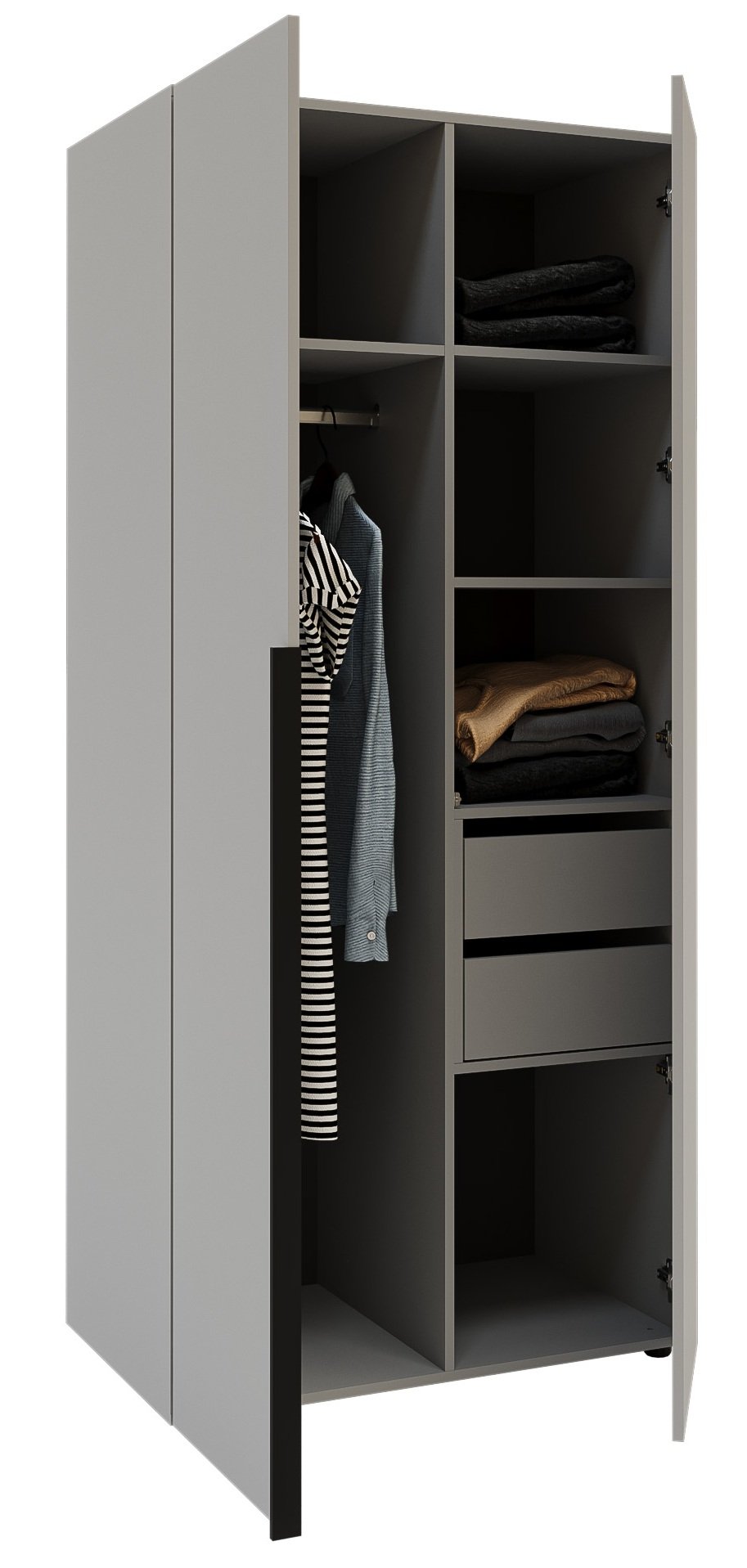 Set ladica Dr 2 dizajniran je posebno za ormare za odjeću iz kolekcije Solo, što znači savršeno podudaranje u dimenzijama i dizajnu. Ugradnja je jednostavna, a rezultat je uredna unutrašnjost ormara u kojoj sve ima svoje mjesto. To je idealan izbor za sve koji cijene red i funkcionalnost bez kompromisa u estetici.