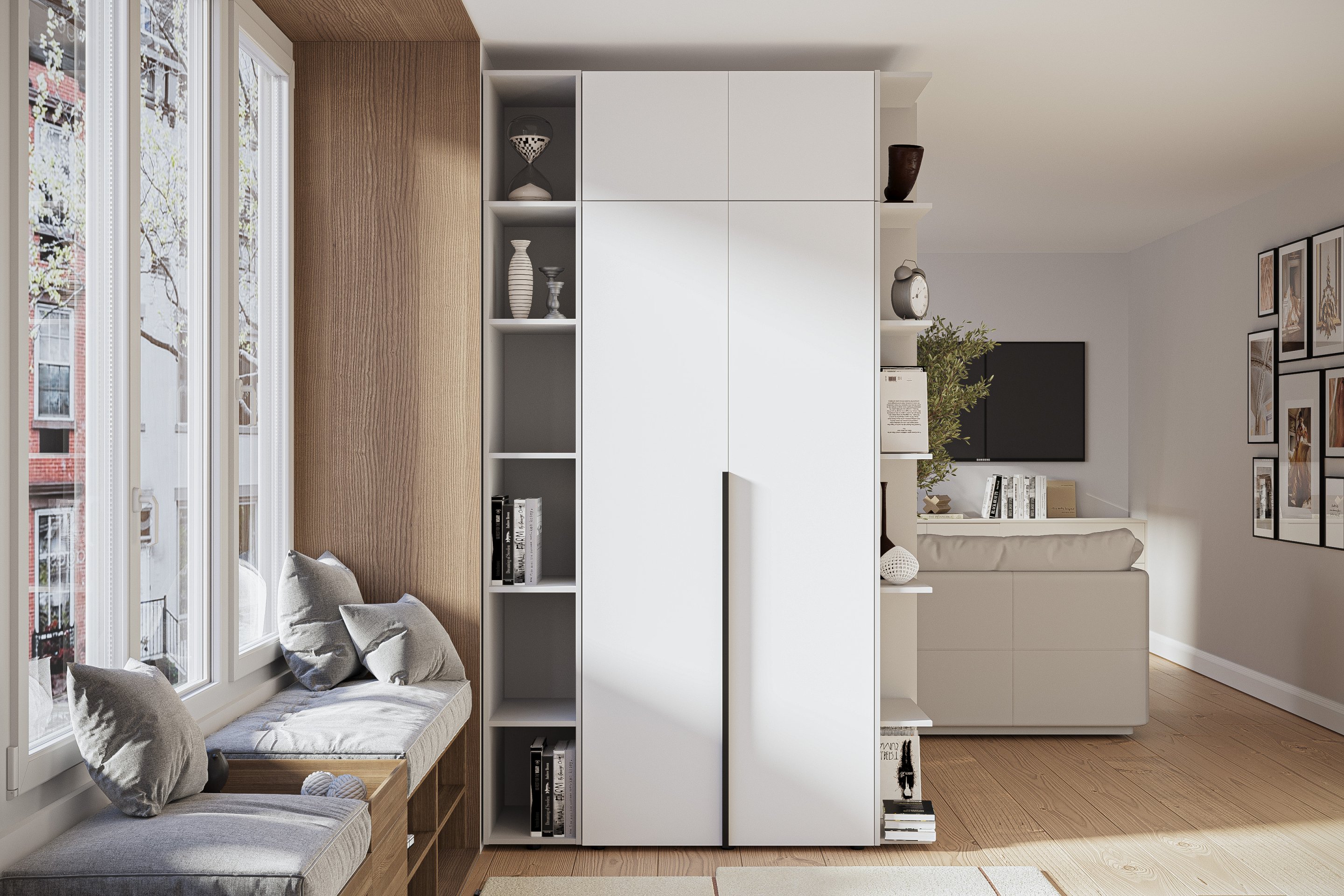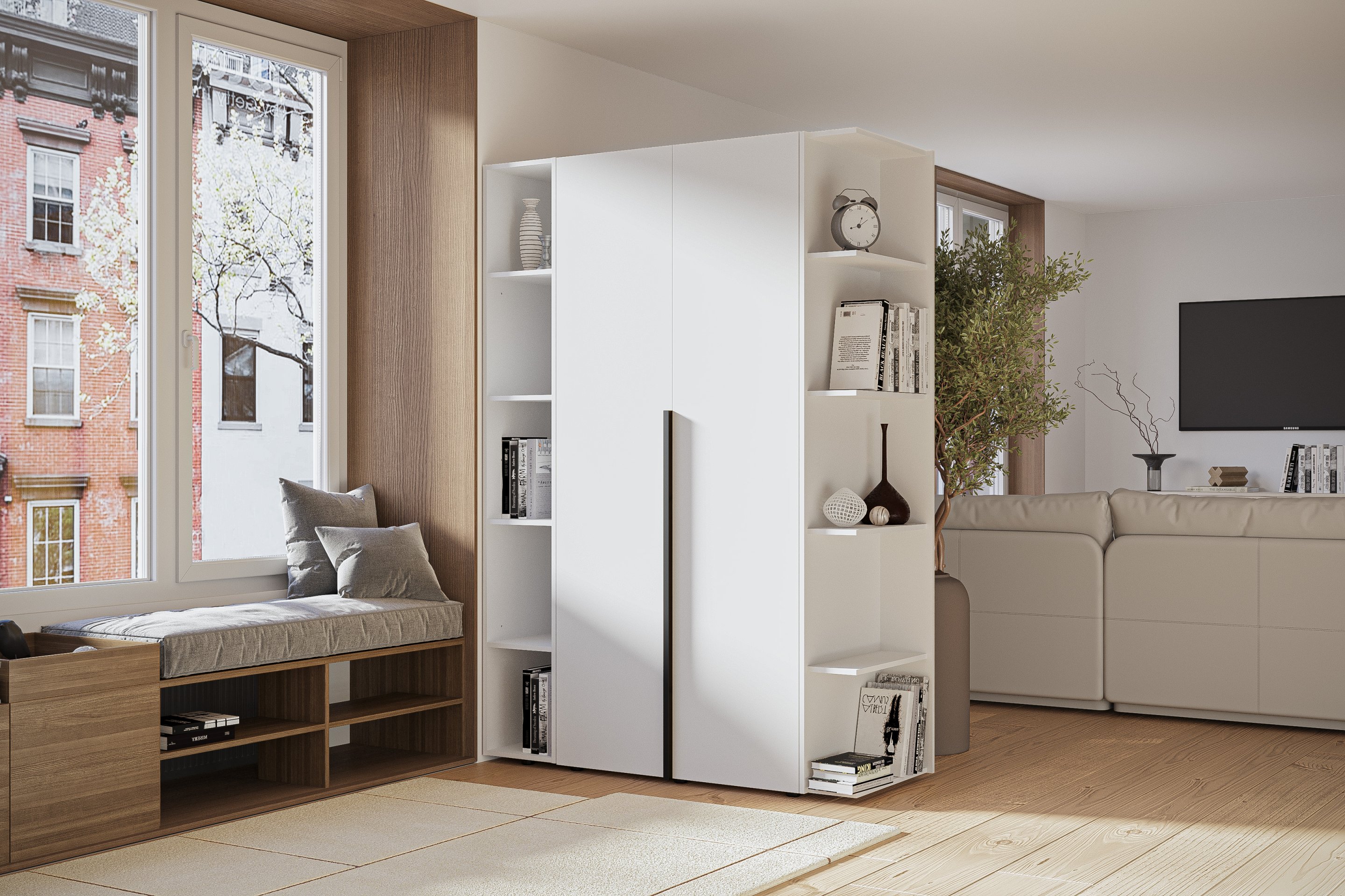 Boja nimfea alba nježna je, svijetla i izuzetno svestrana. Može se kombinirati i s modernim i s klasičnim komadima namještaja. Glatke linije i pažljivo obrađeni rubovi čine regal estetski dovršenim, a istovremeno praktičnim komadom namještaja koji nikada neće izaći iz mode. Dizajniran je tako da prostor vizualno rastereti i daje mu uredan, miran izgled.
