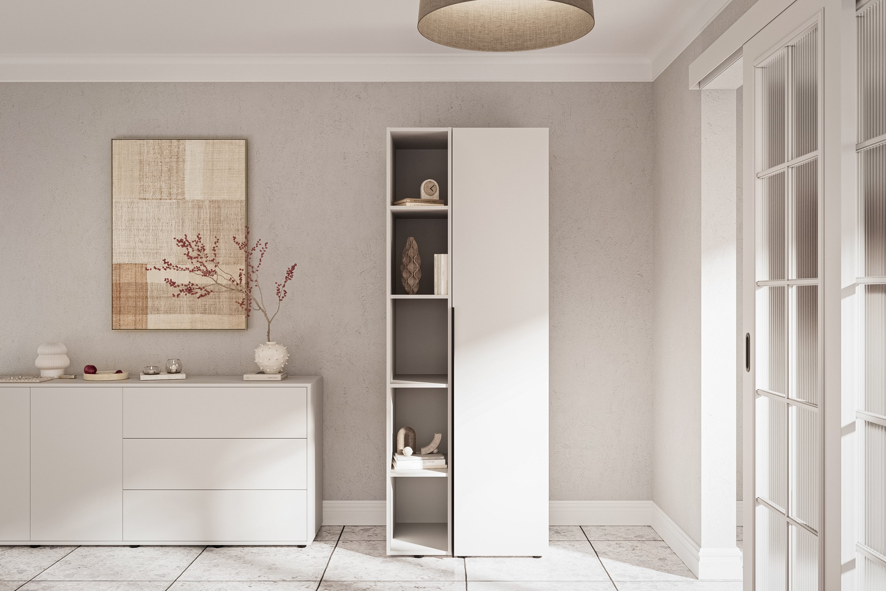 Ako želite namještaj koji spaja estetiku, kvalitetu i uporabnost, tada je ovaj regal izvrstan izbor. Njegov jednostavan, a elegantan izgled omogućuje da se uklopi u bilo koji stil unutarnjeg uređenja i postane središnji element prostora. Zbog svoje visine i uskog oblika savršen je za stvaranje vertikalnog naglaska koji optički povećava prostor i dodaje osjećaj prozračnosti.