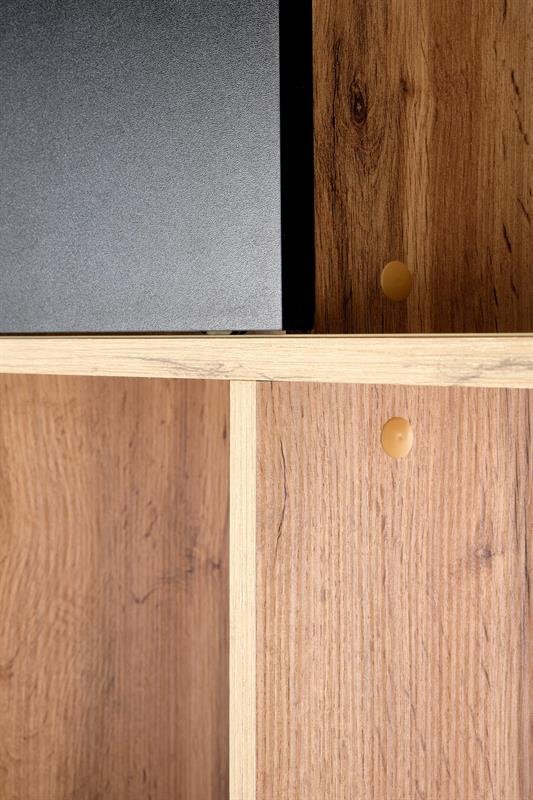 Regal REG23 predstavlja praktičan i moderan prostor za odlaganje knjiga i drugih predmeta u dnevnom boravku ili spavaćoj sobi. Zbog klasičnog dizajna s daškom modernosti iznimno je praktično i funkcionalno rješenje za interijer jer sadrži veliki broj polica za odlaganje sitnica i stvari koje želimo uvijek imati pri ruci. Regal REG22 izrađen je od visokokvalitetne laminirane ploče za namještaj s furnirom od zlatne hrastovine i bezvremenskom bijelom mat završnom obradom. Regal REG22 može se uspješno koristiti kao zid koji odvaja prostor od zone spavaće sobe, radnog prostora ili dječjeg kutka.